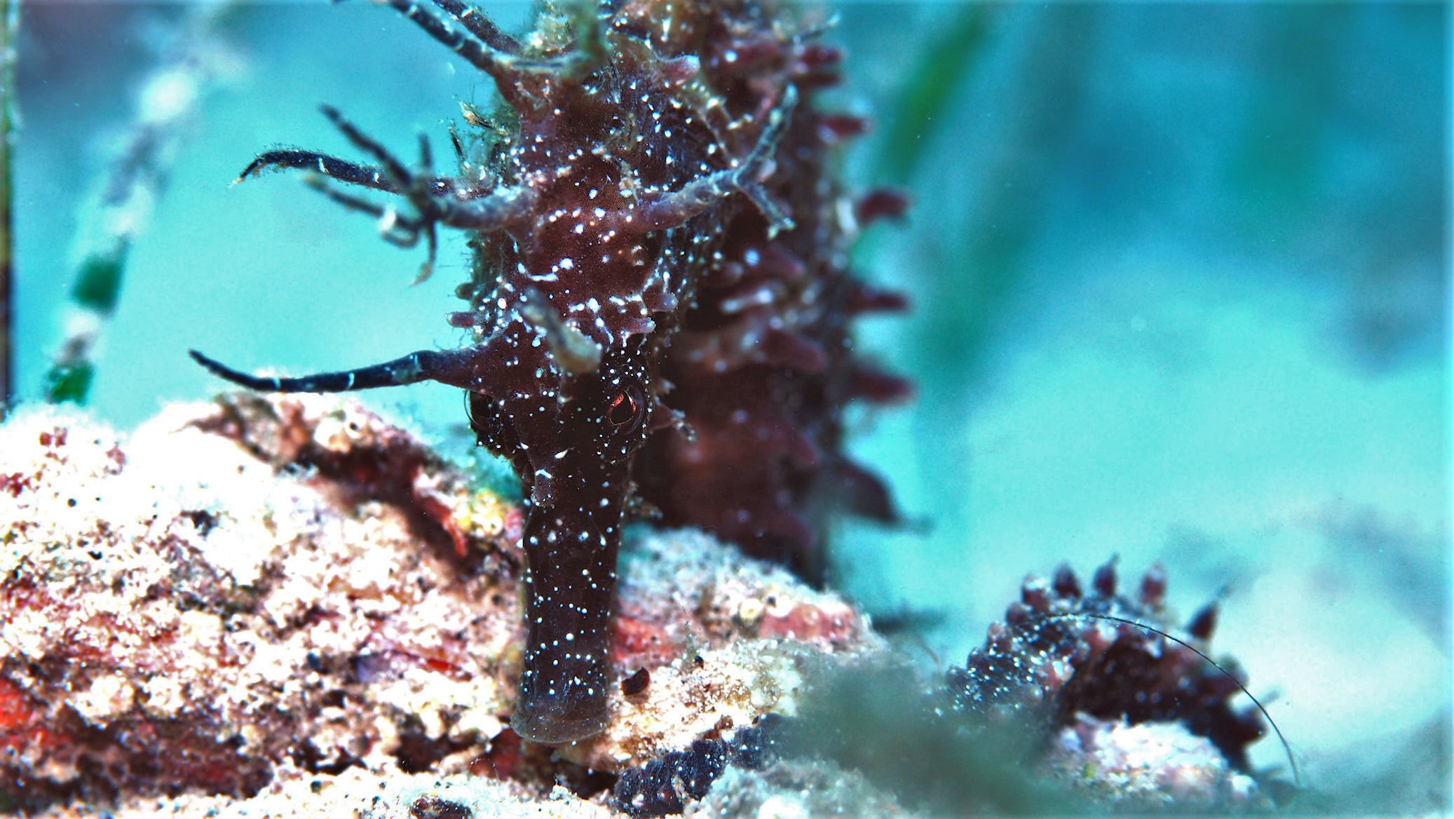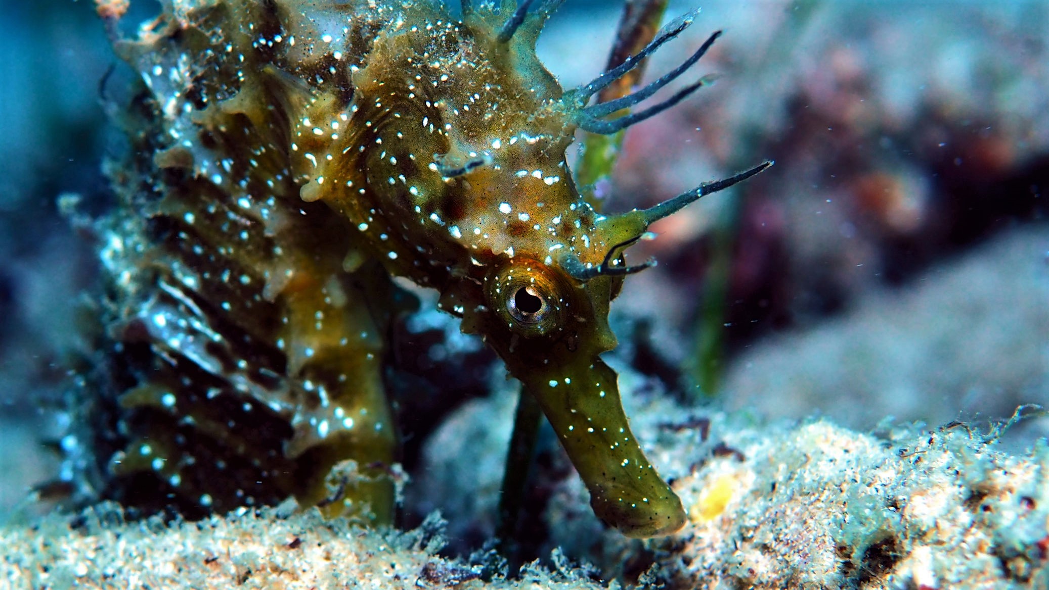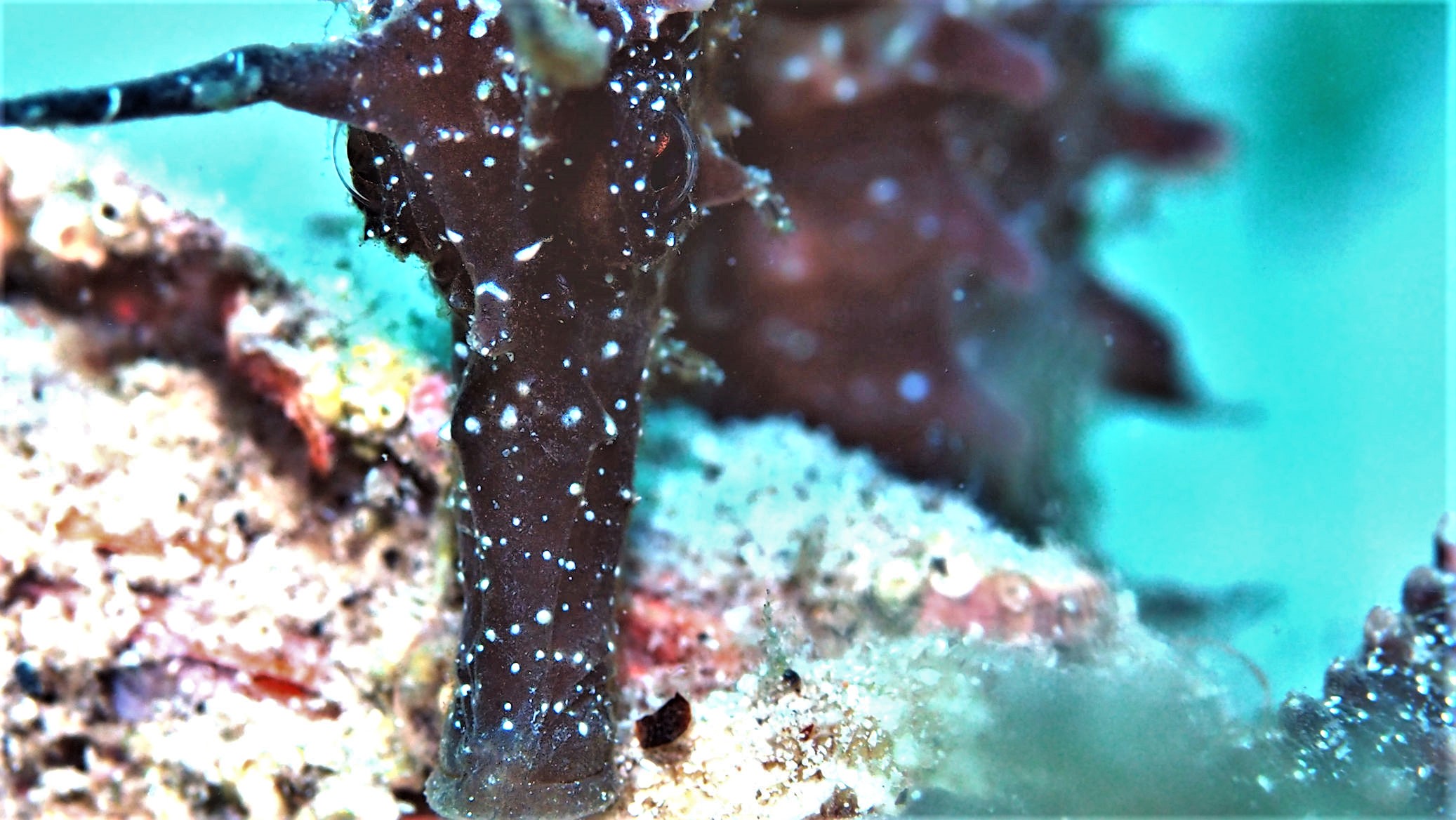 Etwas Pause, ein paar Fotos des Pferdchens sichten und dann geht es nochmals ins Wasser. Und anscheinend hat jemand die „Stalltüre“ offen gelassen. Während unseres Tauchgangs treffen wir gleich auf 4 dieser wunderschönen Tarnkünstler.