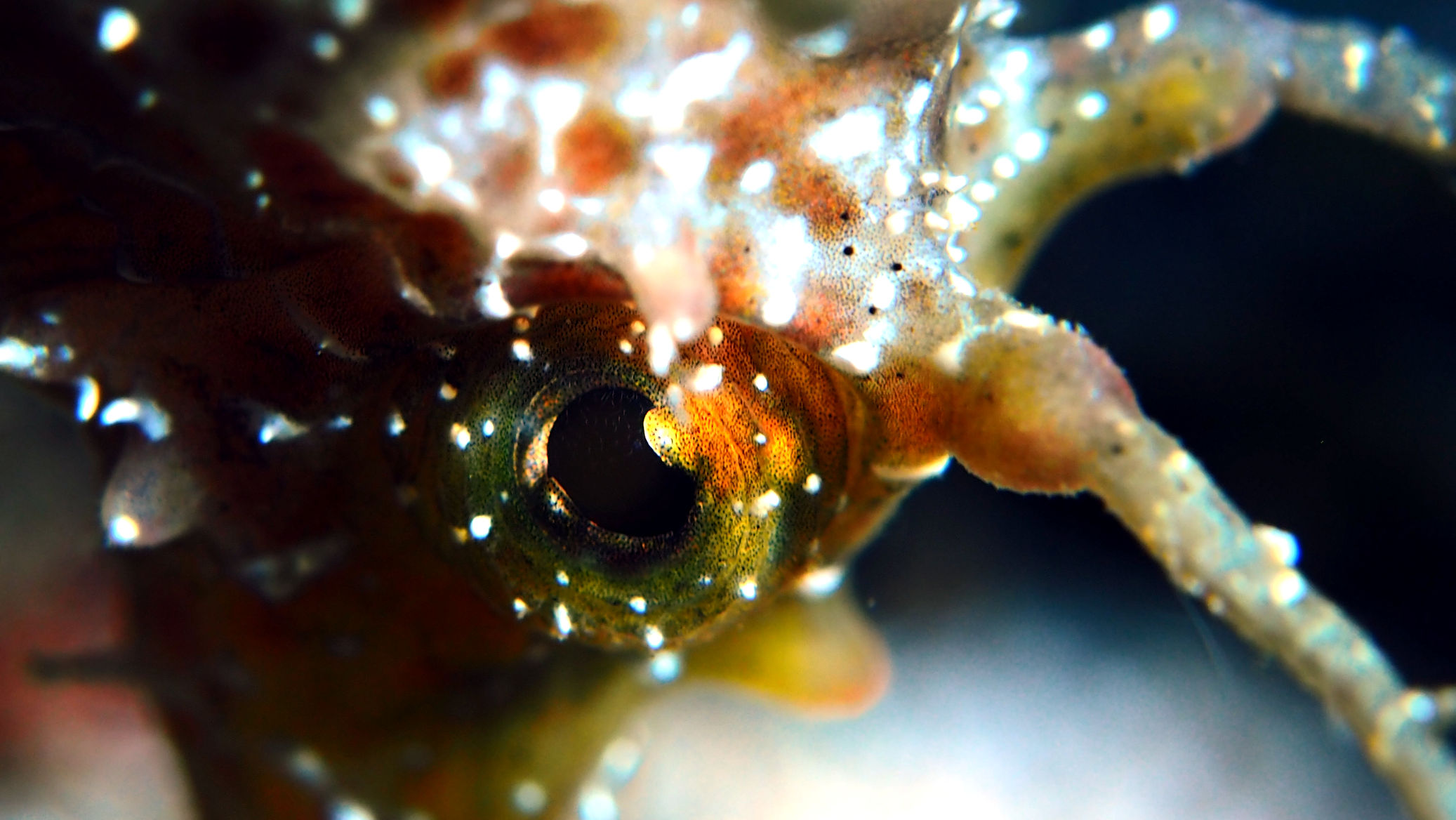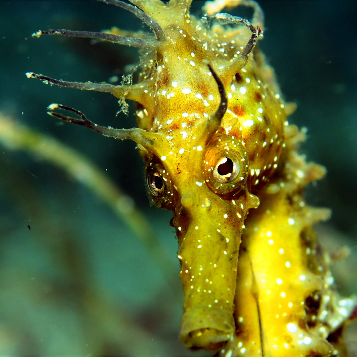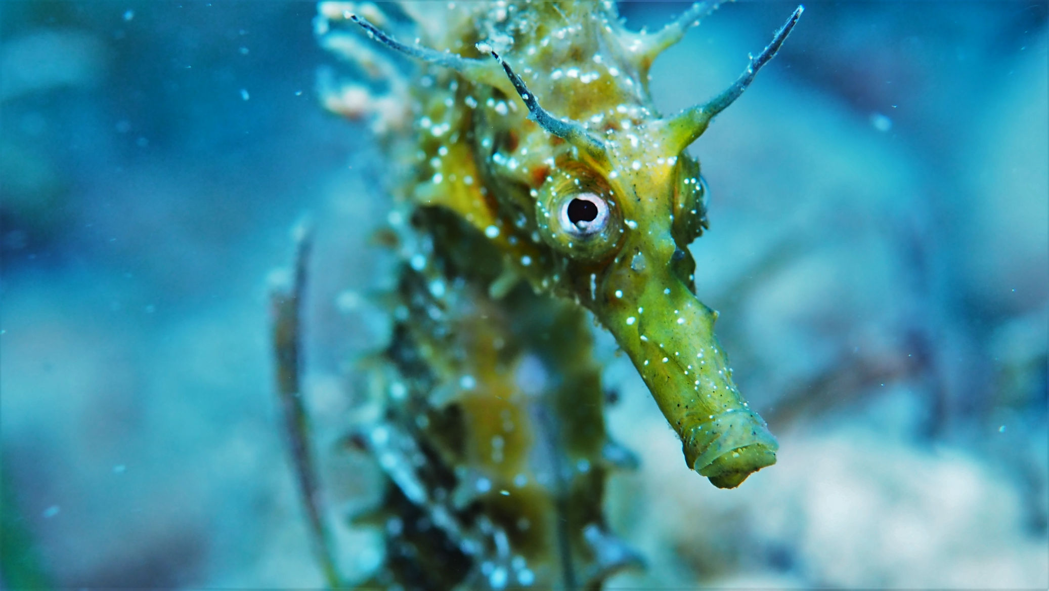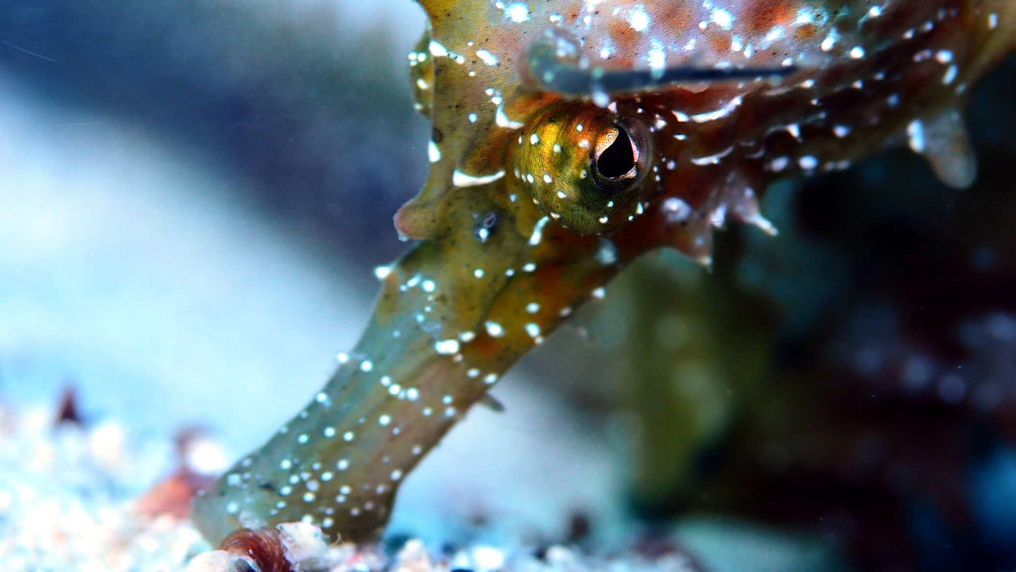Etwas Pause, ein paar Fotos des Pferdchens sichten und dann geht es nochmals ins Wasser. Und anscheinend hat jemand die „Stalltüre“ offen gelassen. Während unseres Tauchgangs treffen wir gleich auf 4 dieser wunderschönen Tarnkünstler.