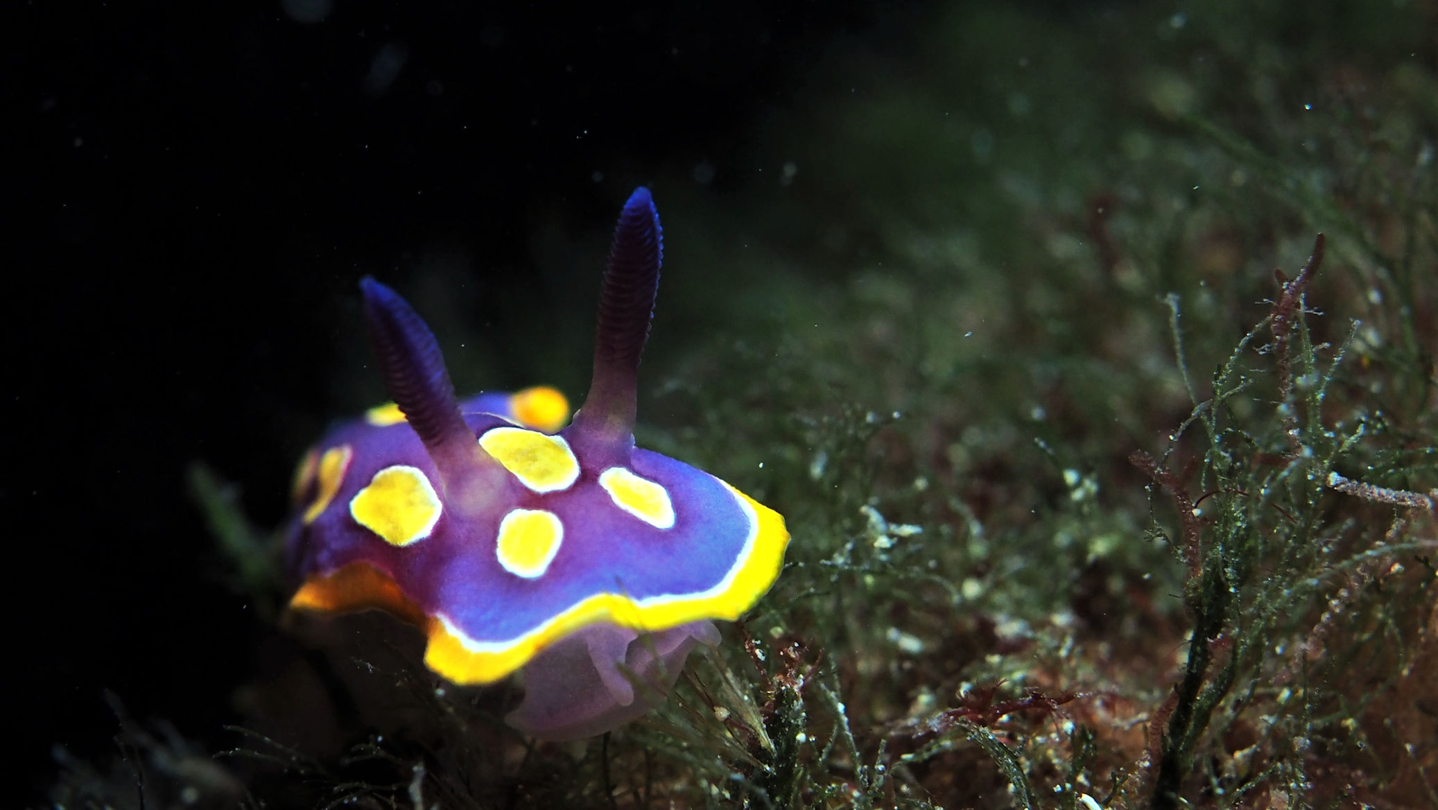 Gleich am Beginn der Wand findet man 2 auffallend große Schraubensalbellen. Von hier aus ist man im Prinzip direkt am Tauchplatz, der die ein oder andere Schönheit zu bieten hat. Besonders erwähnenswert ist die Begegnung mit einer gepunkteten Prachtsternschnecke, einer Schönheit in Pink und Gelb.