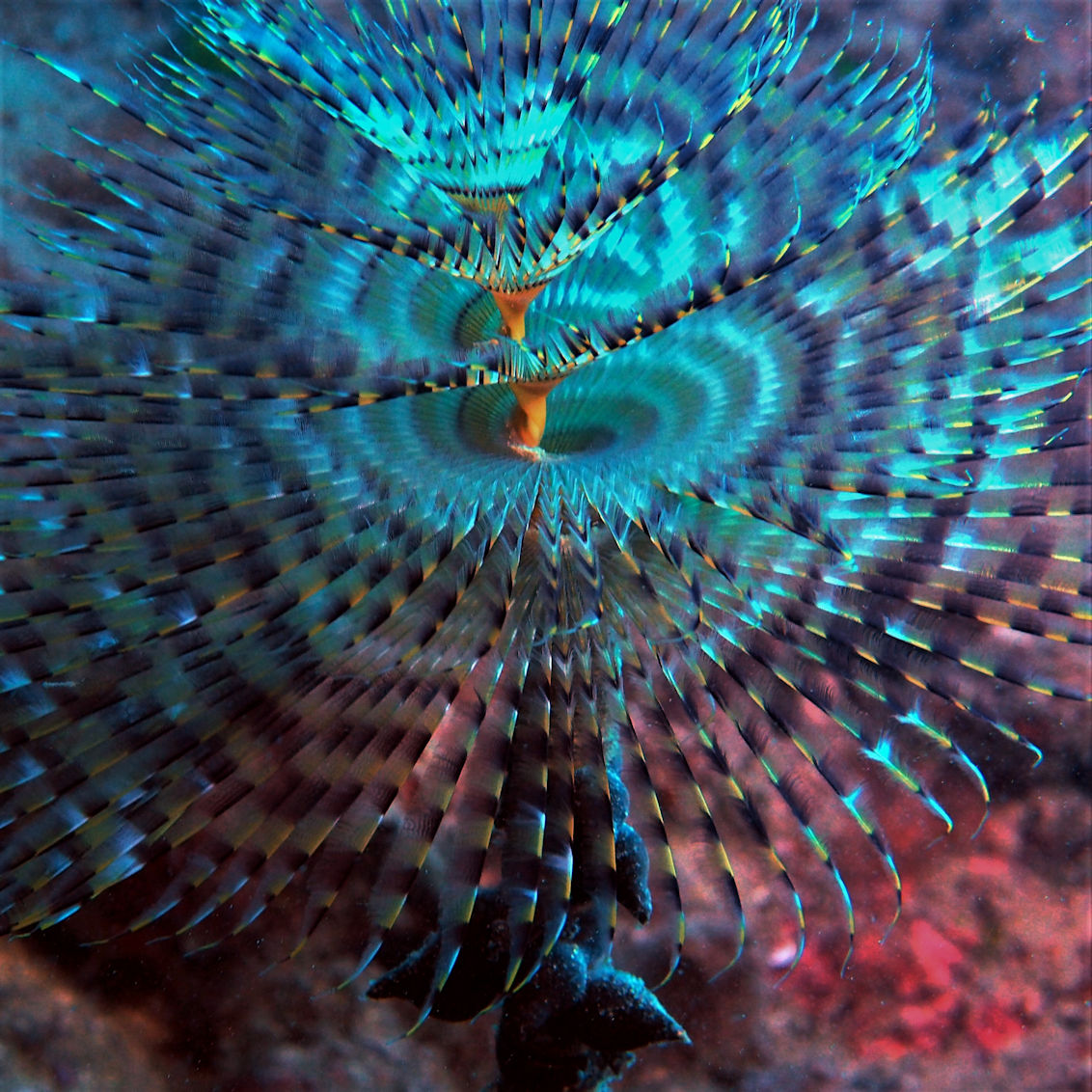 Als wir den Tauchplatz erreichen, ist das Meer hier am Kanal glatt wie ein Spiegel. Schnell sind wir im Wasser und es folgt erneut eine wundervolle Exkursion an den Schraubensalbellen entlang zu der wundervollen Steilwand. Hier entdecken wir einen kleinen Bärenkrebs, Fadenschnecken, Drachenköpfe und viele, schöne andere Dinge.