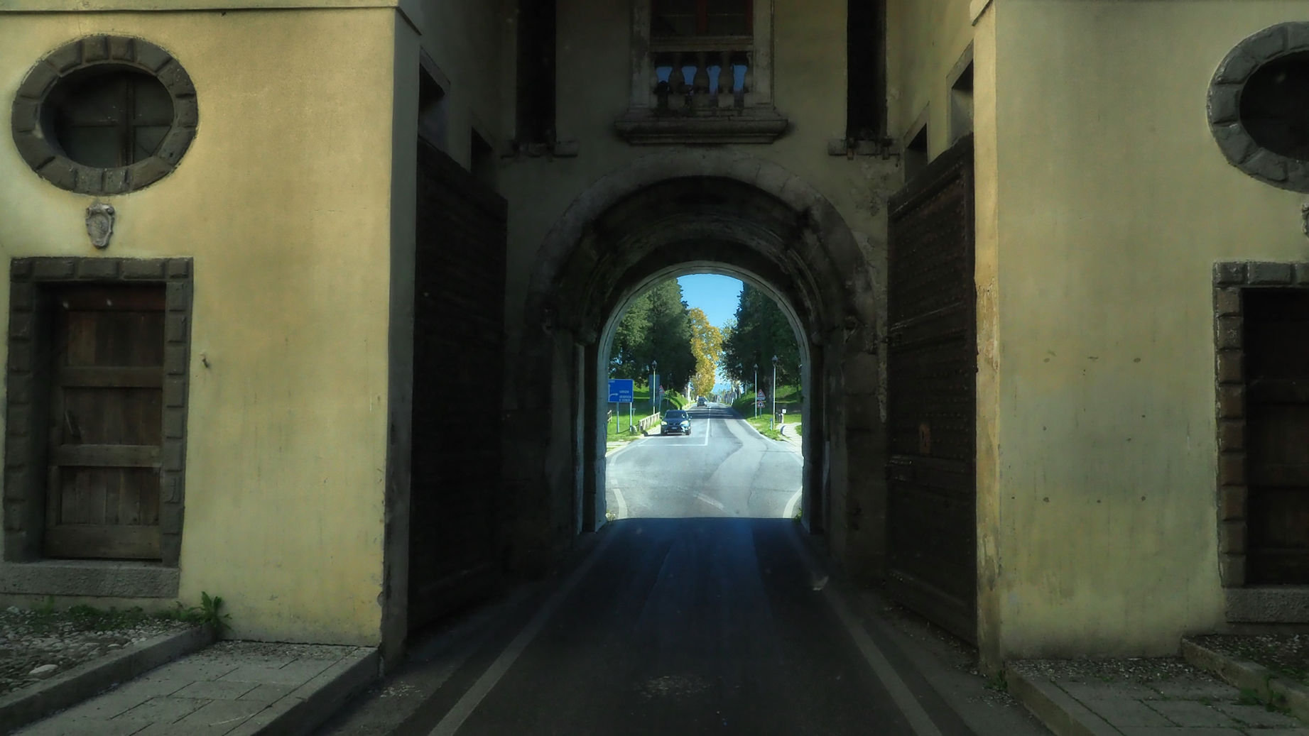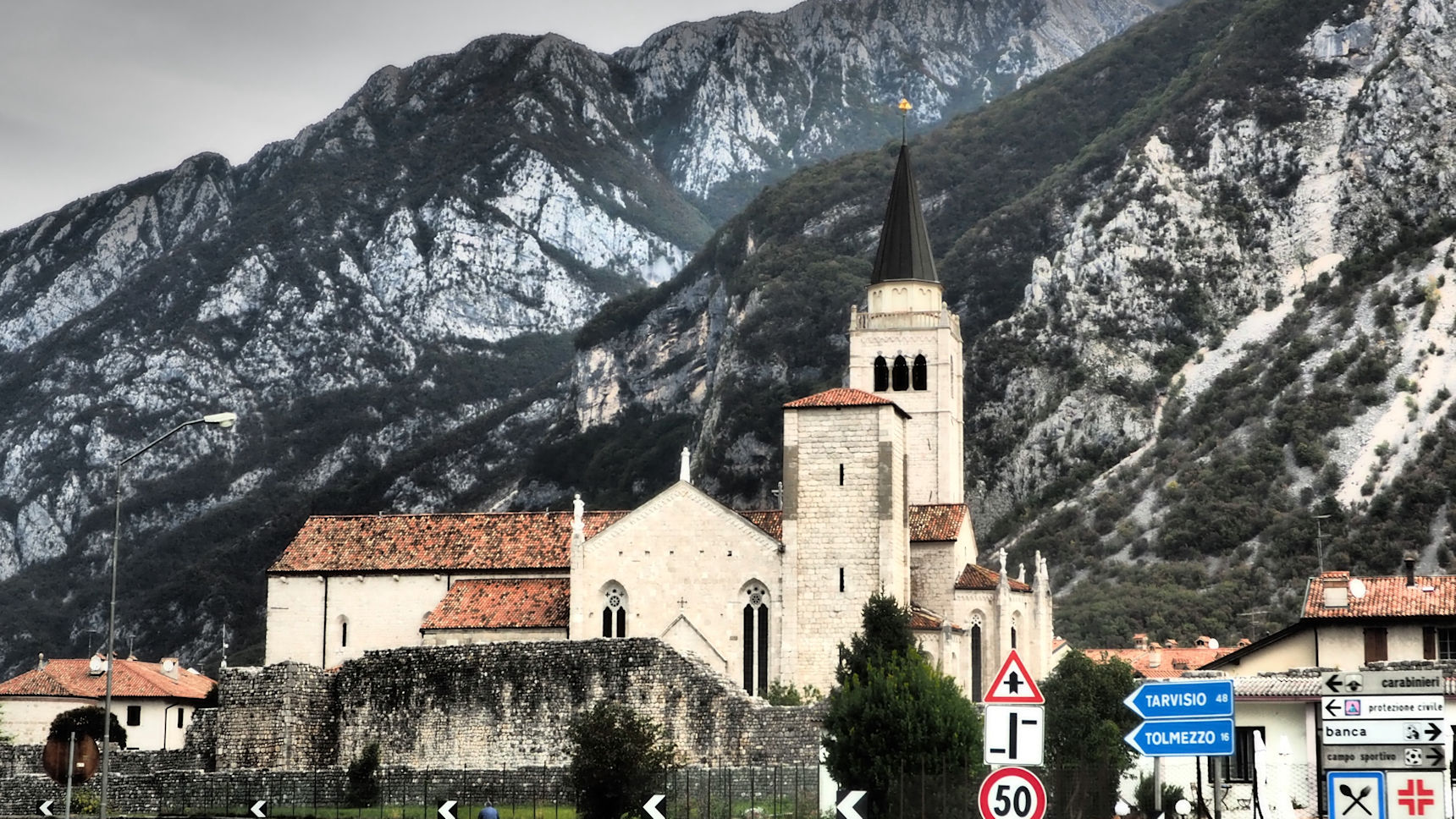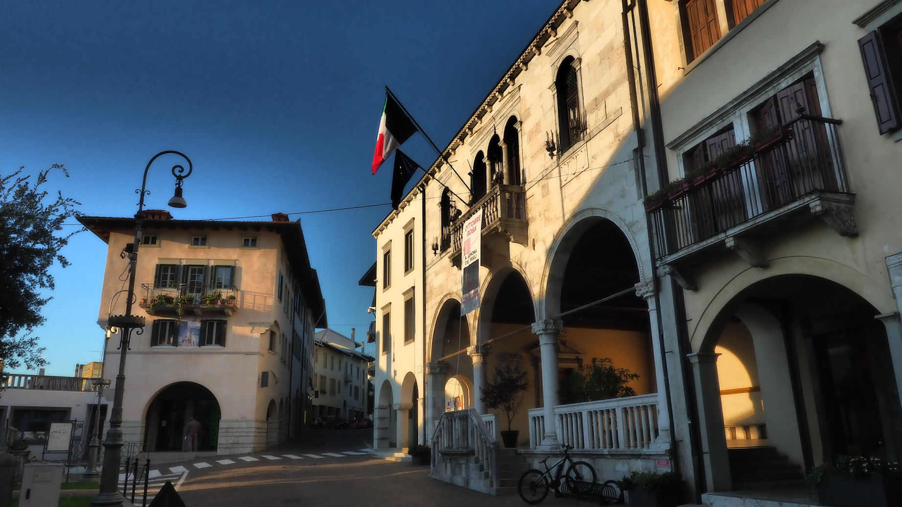 Nach einem kurzen Drohnenflug geht es um 15 Uhr weiter in Richtung Gemona. In dieser schönen, am Berg gelegenen Stadt gibt es einen zentrumsnahen Stellplatz. Neben einer Burg gibt es einen wundervollen Dom zu besichtigen und das Stadtbild wird durch viele Portici geprägt (überdachte Gewege ähnlich wie in Bologna).