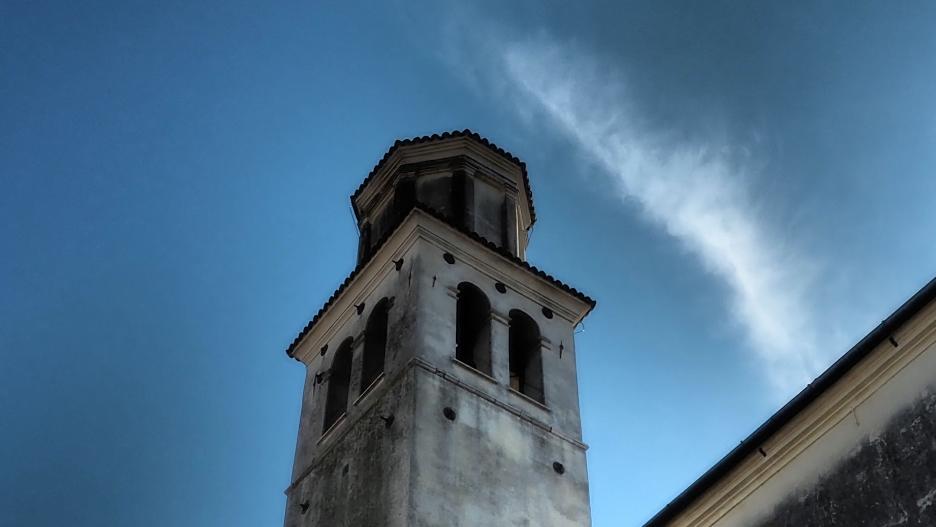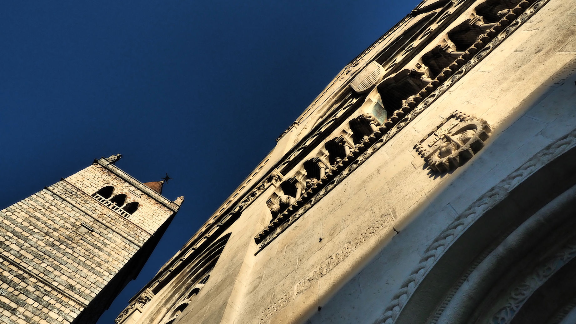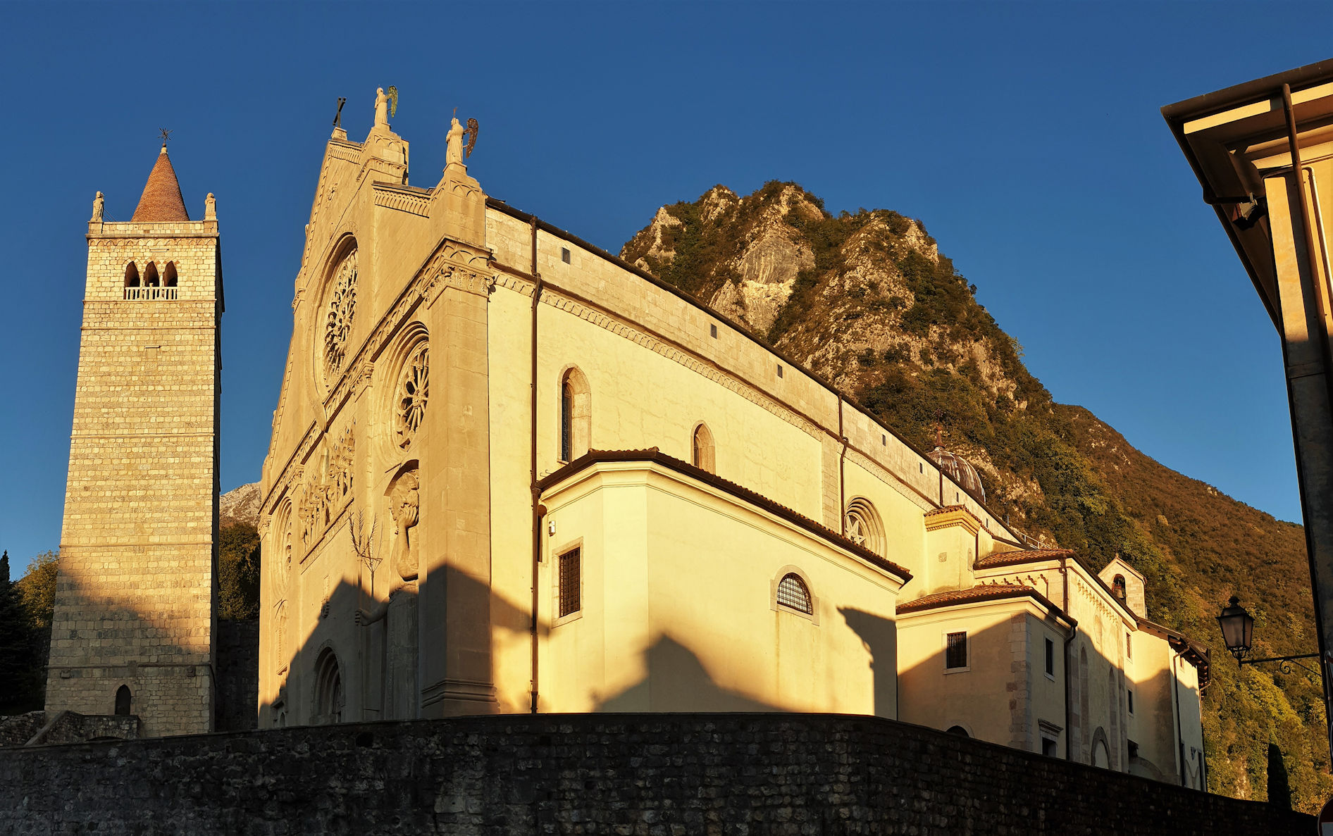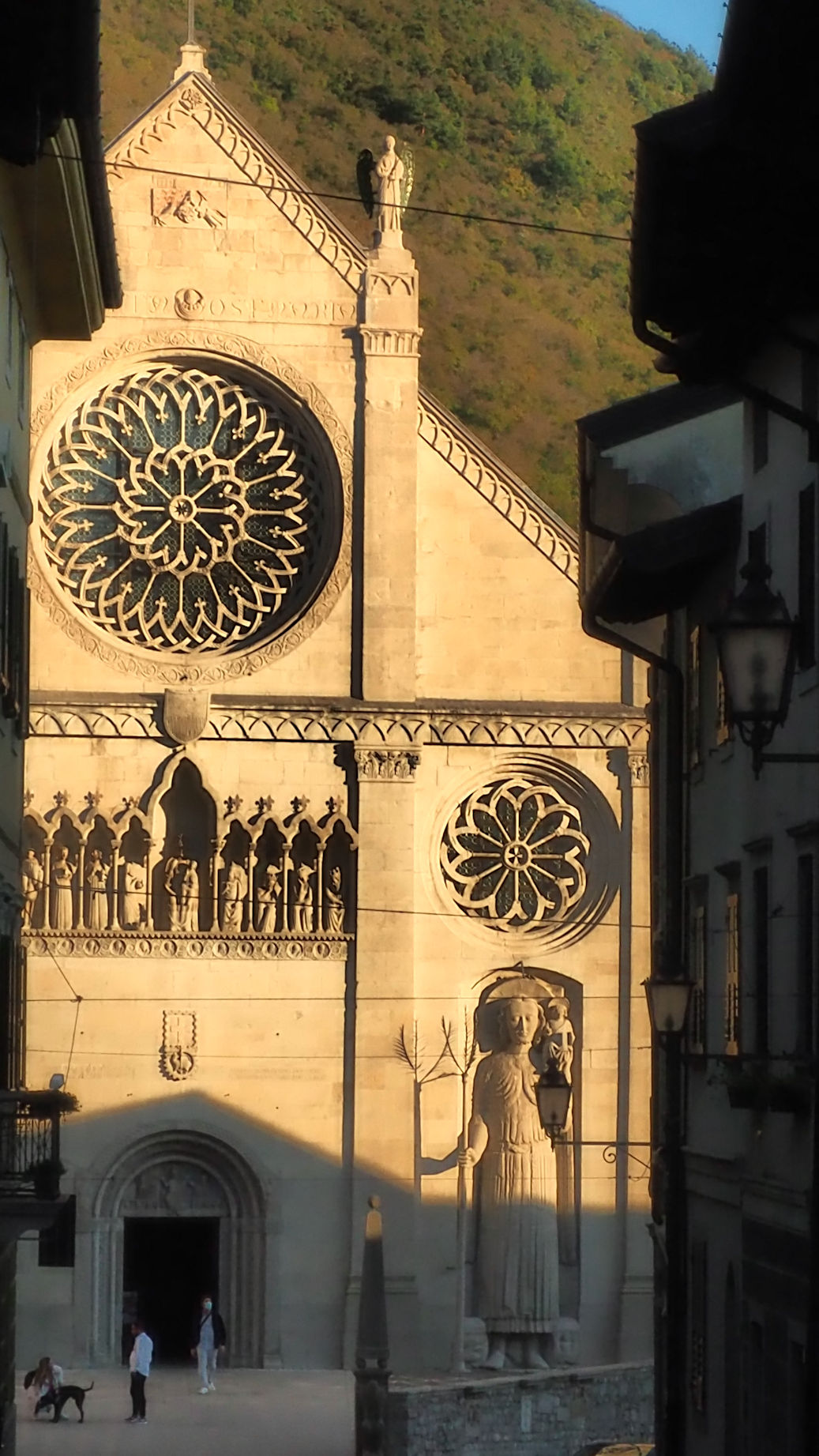 Nach einem kurzen Drohnenflug geht es um 15 Uhr weiter in Richtung Gemona. In dieser schönen, am Berg gelegenen Stadt gibt es einen zentrumsnahen Stellplatz. Neben einer Burg gibt es einen wundervollen Dom zu besichtigen und das Stadtbild wird durch viele Portici geprägt (überdachte Gewege ähnlich wie in Bologna).