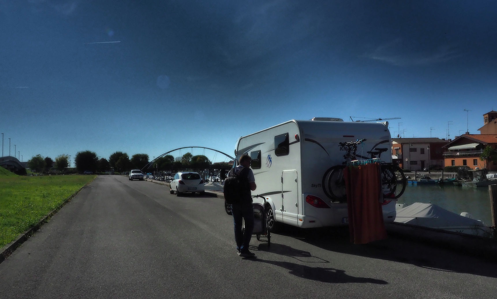 Leider hat sich hier eine kleine Gruppe Österreichischer Mobilisten regelrecht an alle dort stehenden Wohnmobile „angekuschelt“, also total eng neben die bereits geparkten Womos gequetscht.