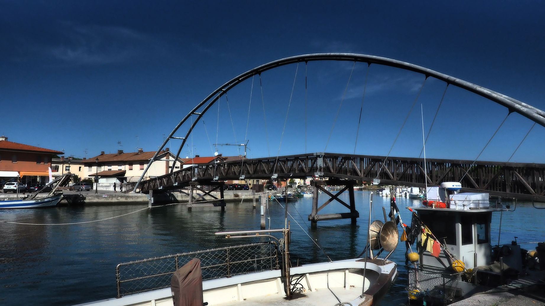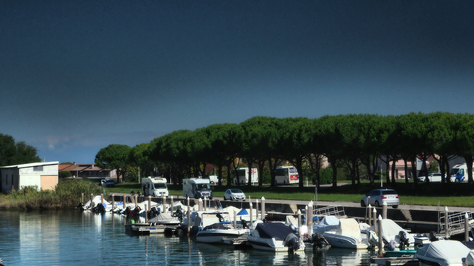 So landen wir gegen Mittag in Marano Lagunare, einem kleinen Lagunenstädtchen mit einer Piazza, die von einem stattlichen Turm beherrscht wird. Unser Womoparkplatz am Wasser ist toll und unsere Idee ist es, hier noch einmal leckeren Fisch zu essen.