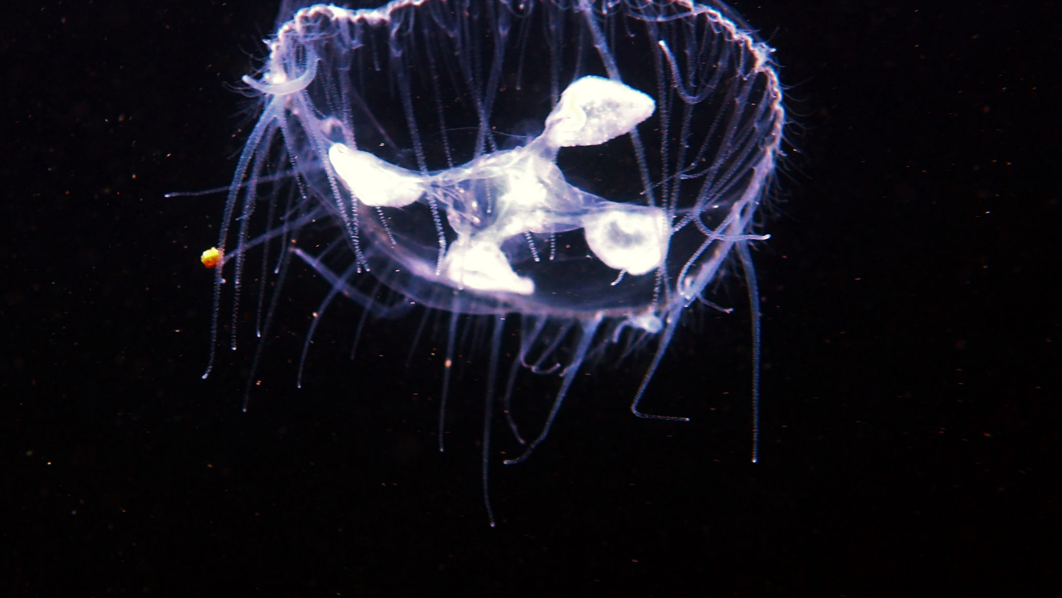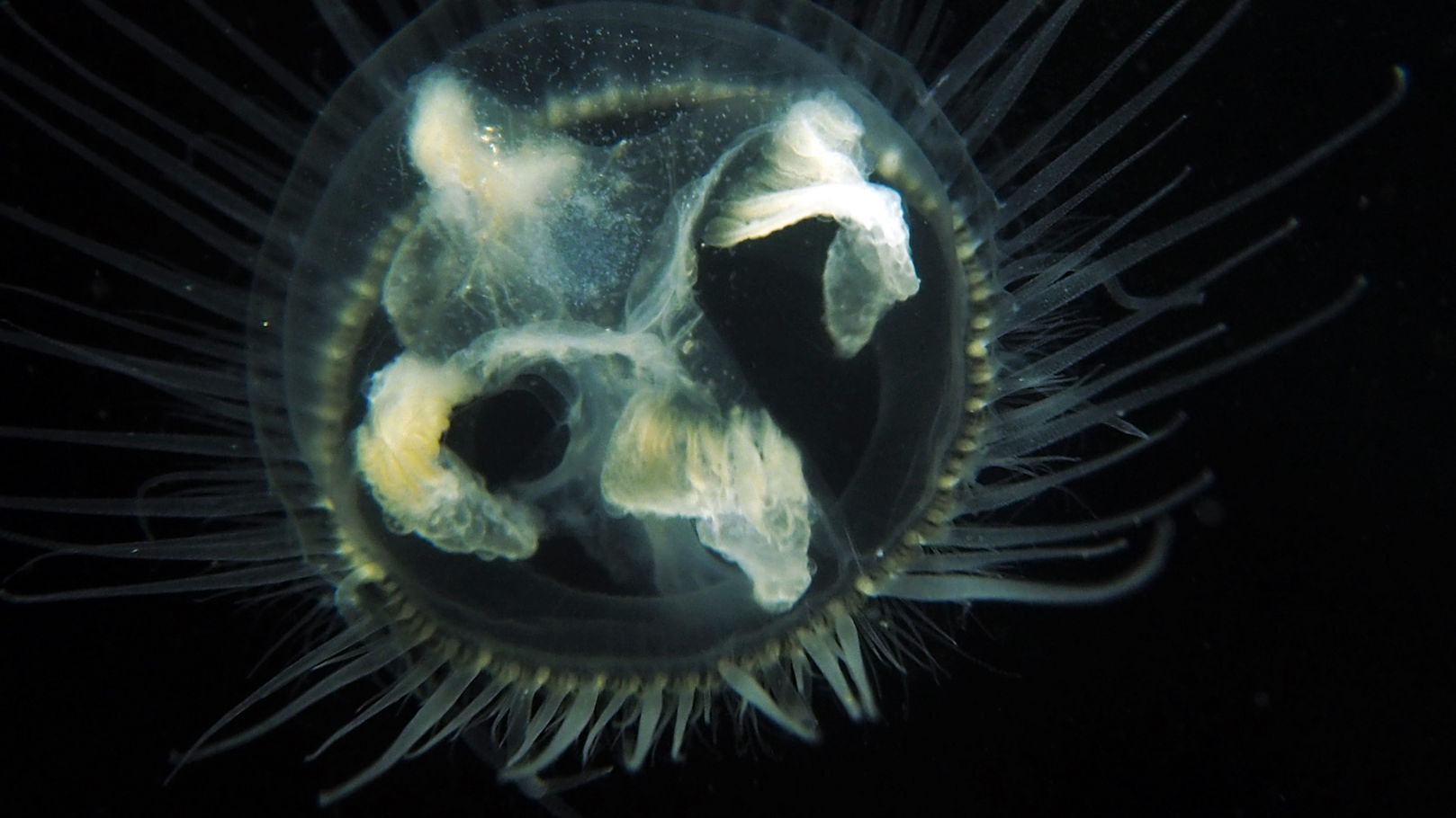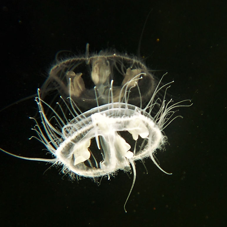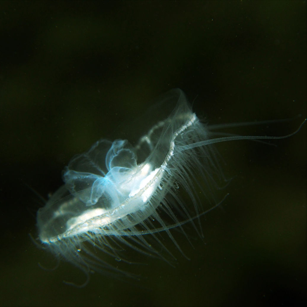 Neben einem Wels, einem Karpfen, Hechten, Fluss- und Sonnenbarsch und einer Karausche begegnet uns trotz der geringen Wassertemperatur und der mäßigen Sichtweite eine der wundervollen Medusen, die wir natürlich versucht haben, besonders in Szene zu setzen.