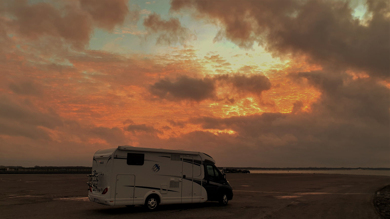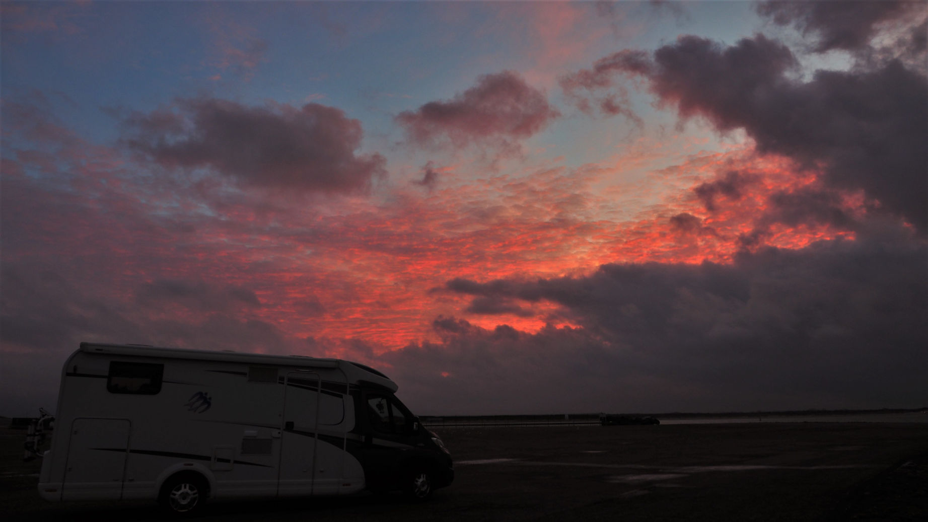 Durchgefroren sitzen wir jetzt bei einem Tee und hoffen, dass der Wind es schafft, die Sonne zum Untergang von den Wolken zu befreien.