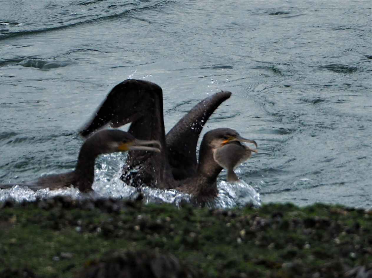 Und heute bei den vielen Besuchern ist auch extra viel los im Wasser. Neben mindestens 9 unterschiedlichen Seehunden haben sich richtig viele Kormorane, Möwen und auch Austernfischer hier an der Schleuse versammelt. So kommt es auch, dass wir uns recht lange hier aufhalten. Mit einigen wundervollen Aufnahmen belohnt und zufrieden fahren wir den Niewe Kerkweg in Den Osse an. Dort am Einstieg zum gleichnamigen Tauchplatz wollen wir gerne mal ins Grevelingen Meer schauen, ob die Sichtweiten wirklich so sind, wie sie im Internet angegeben wurden. Beim Blick ins Wasser wird klar: die dort beschriebenen 10 Meter scheinen wirklich zu stimmen.
