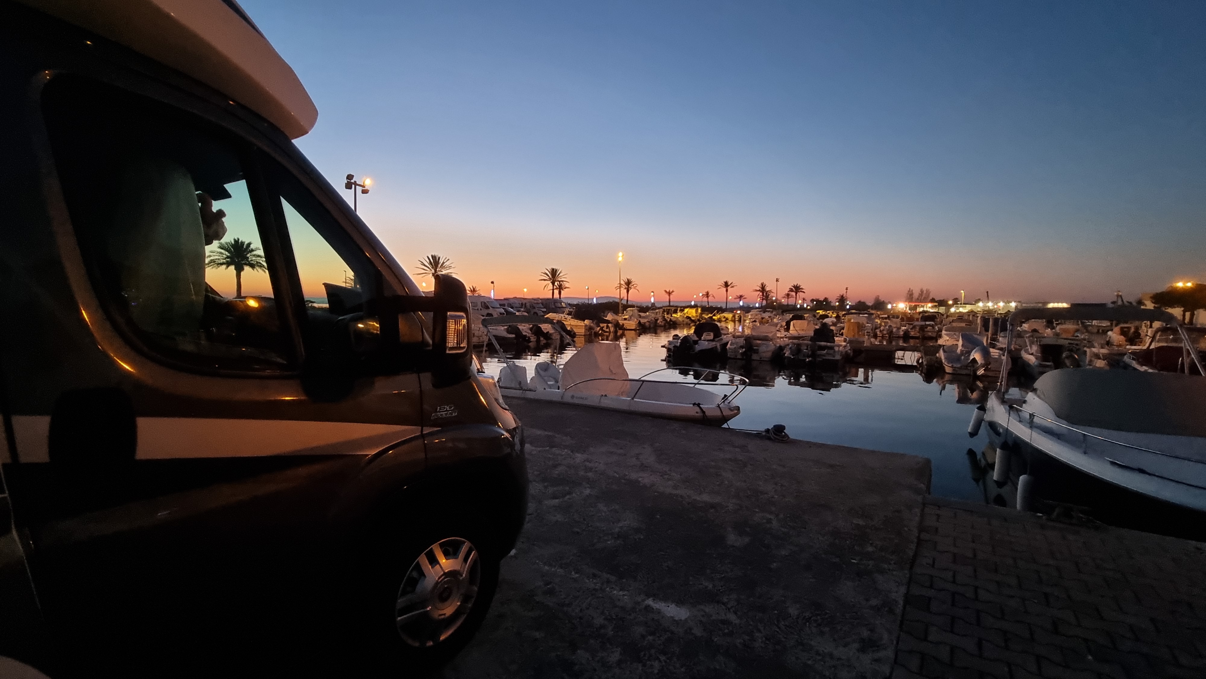 Fast hätten wir es vergessen: das „Flamingoballett“ im Video fand heute direkt am Wohnmobilstellplatz hier in Palavas im Sonnenuntergang statt.