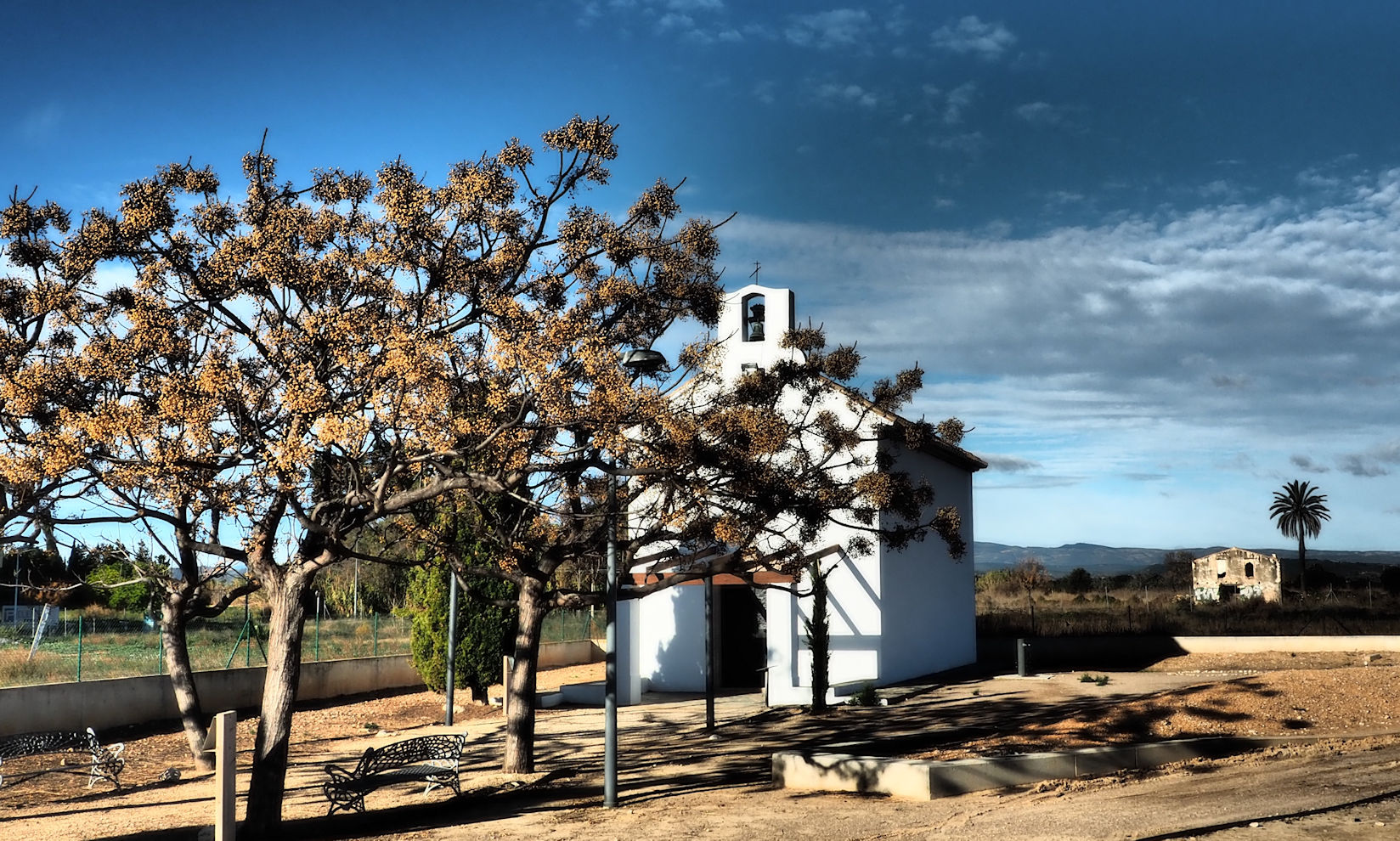 Gegen 9 beginnt die Sonne dann zu scheinen und der erste Kaffee schmeckt wunderbar. Auch unsere Fellnasen genießen den morgendlichen Sonnenschein. Kurz überlegen wir, wohin wir heute fahren könnten und schon sitzen wir in unserem Womo und es geht etwas in Richtung Süden. Unser erstes Ziel heißt Capicorb bzw. die Kapelle San Antonio. Hier waren wir bereits vor 3 Jahren schonmal mit unseren Fahrrädern und die kleine Bar am Straßenrand hatte uns damals sehr gut gefallen. Ebenfalls der auf uns eher nordafrikanisch wirkende Strand.