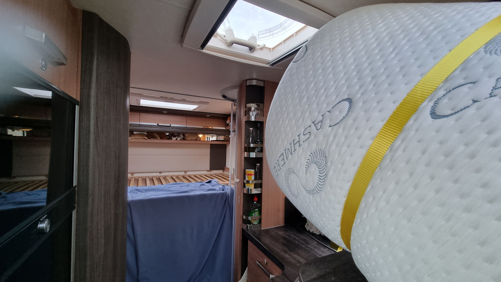 Es ist nicht dass, was Ihr Euch wahrscheinlich unter einem Womowellnesstag vorstellt. Es hat mehr etwas mit der Pflege/Reparatur unseres Womos zu tun. Den Steinschlag, der bei der Einfahrt in Katalonien unsere Frontscheibe beschädigt hat, werden wir erst zuhause reparieren lassen. Aber die Birne unseres linken Frontscheinwerfers ist kaputt- selbst ein Teelicht leuchtet heller – und die Unterkonstruktion unseres Bettes hat einen heftigen Defekt, der Ulli schon seit Tagen nachts wunderbare Rückenschmerzen beschert.