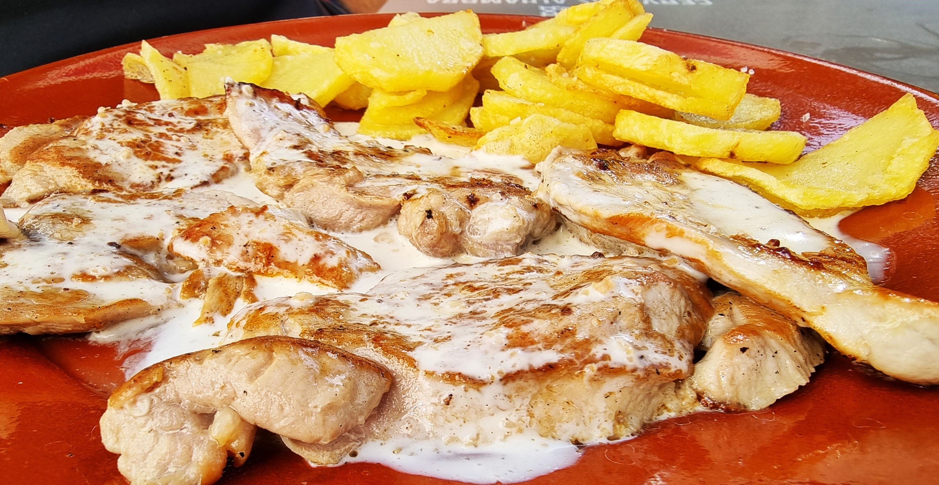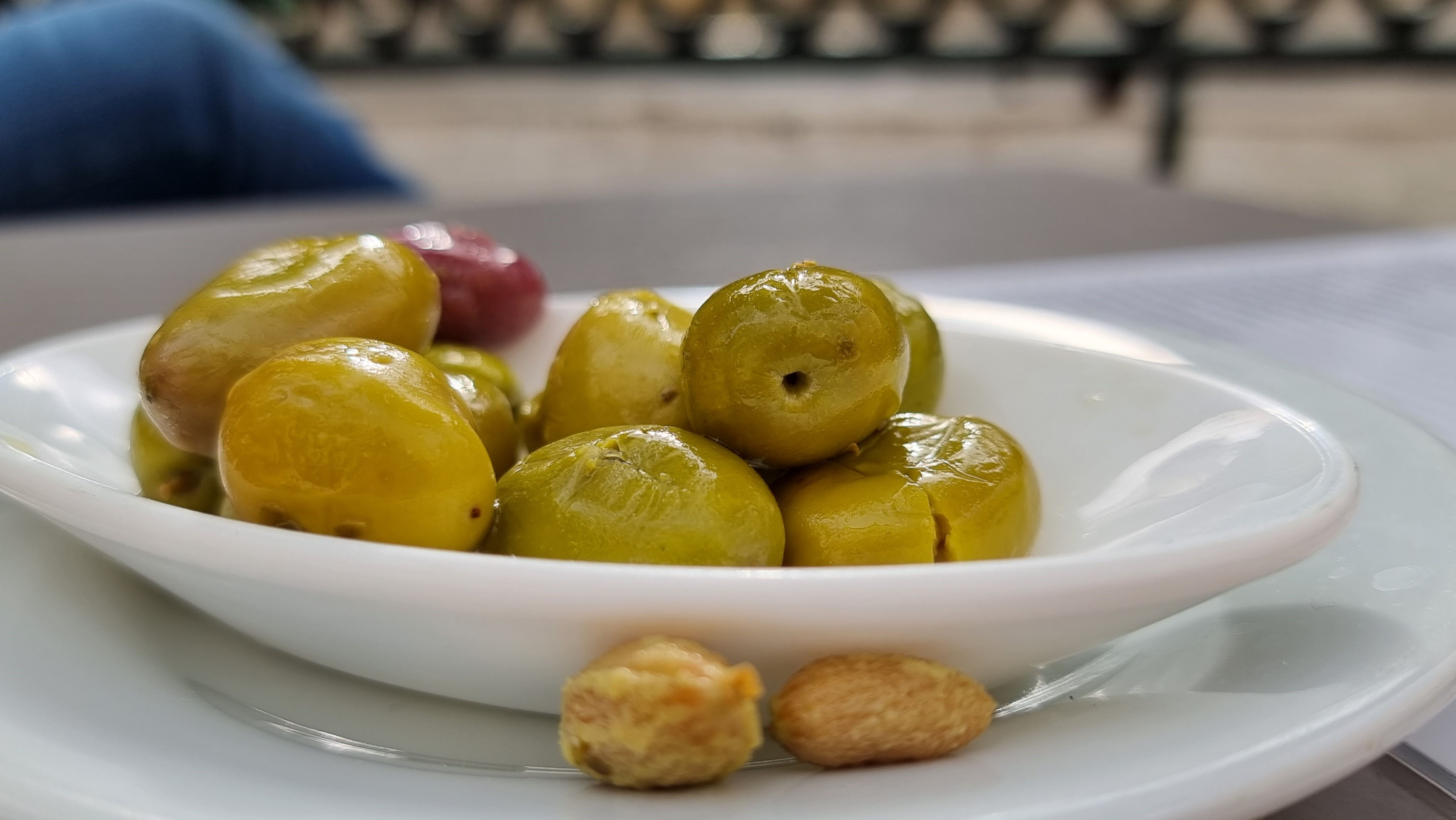 Wir werden fündig an der toll begrünten und blühenden Plaza Candelaria. Und hier gibt es eine ganz typische Tapasbar die jetzt ab 13 Uhr bereits geöffnet hat, die kleine Bar Zapata. Ein Tisch ganz allein am Grün der Plaza und ein kleiner Test der angebotenen Gerichte, so z. B der tolle Jamon oder die Schweinelende in Mandelsauce, die ein wenig an Satéspieße in Erdnusssauce erinnert…schon so ein bisschen zum Niederknien. Hin und wieder lugt die Sonne auf unseren Platz und dann ist es wunderbar warm…