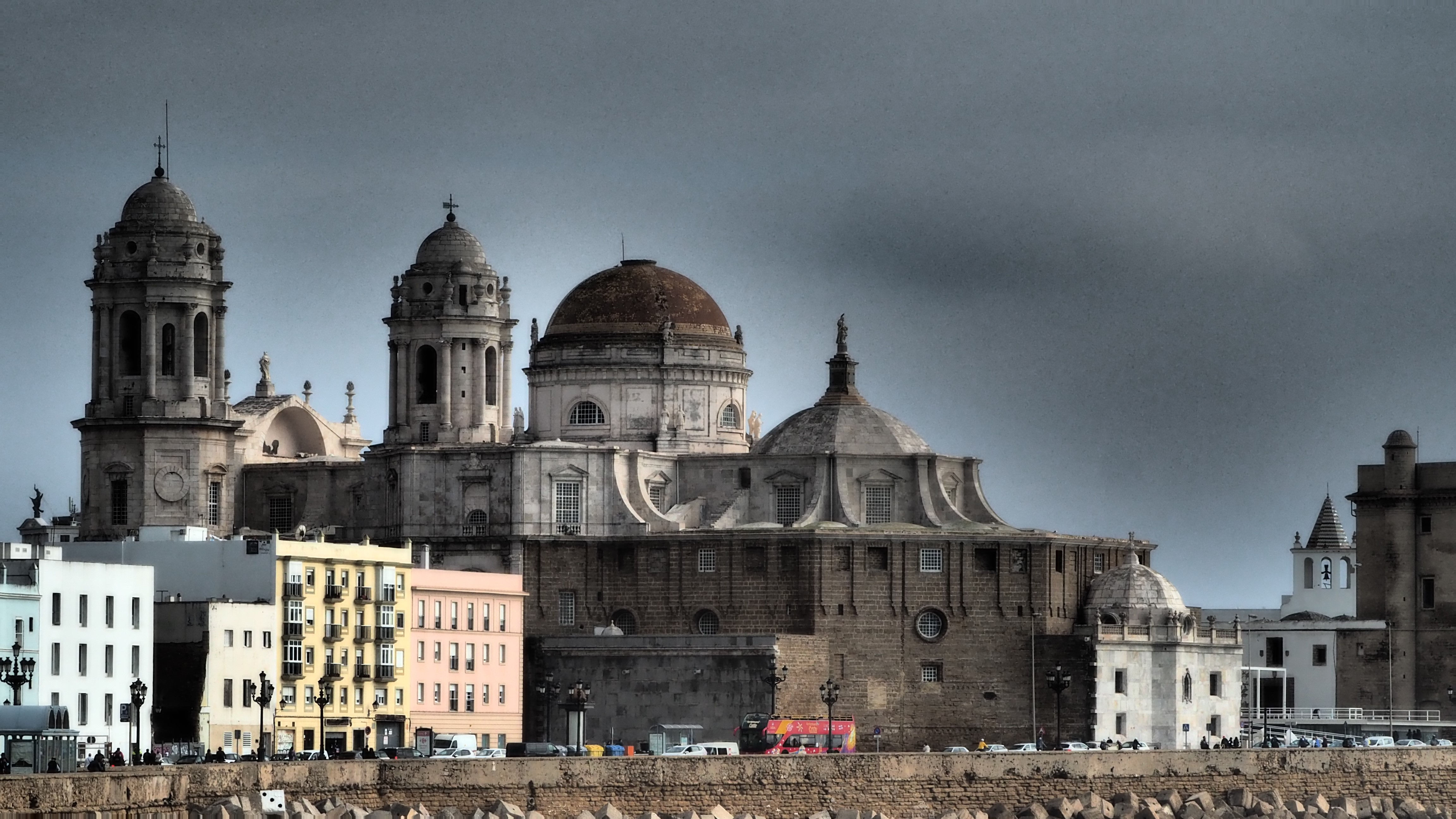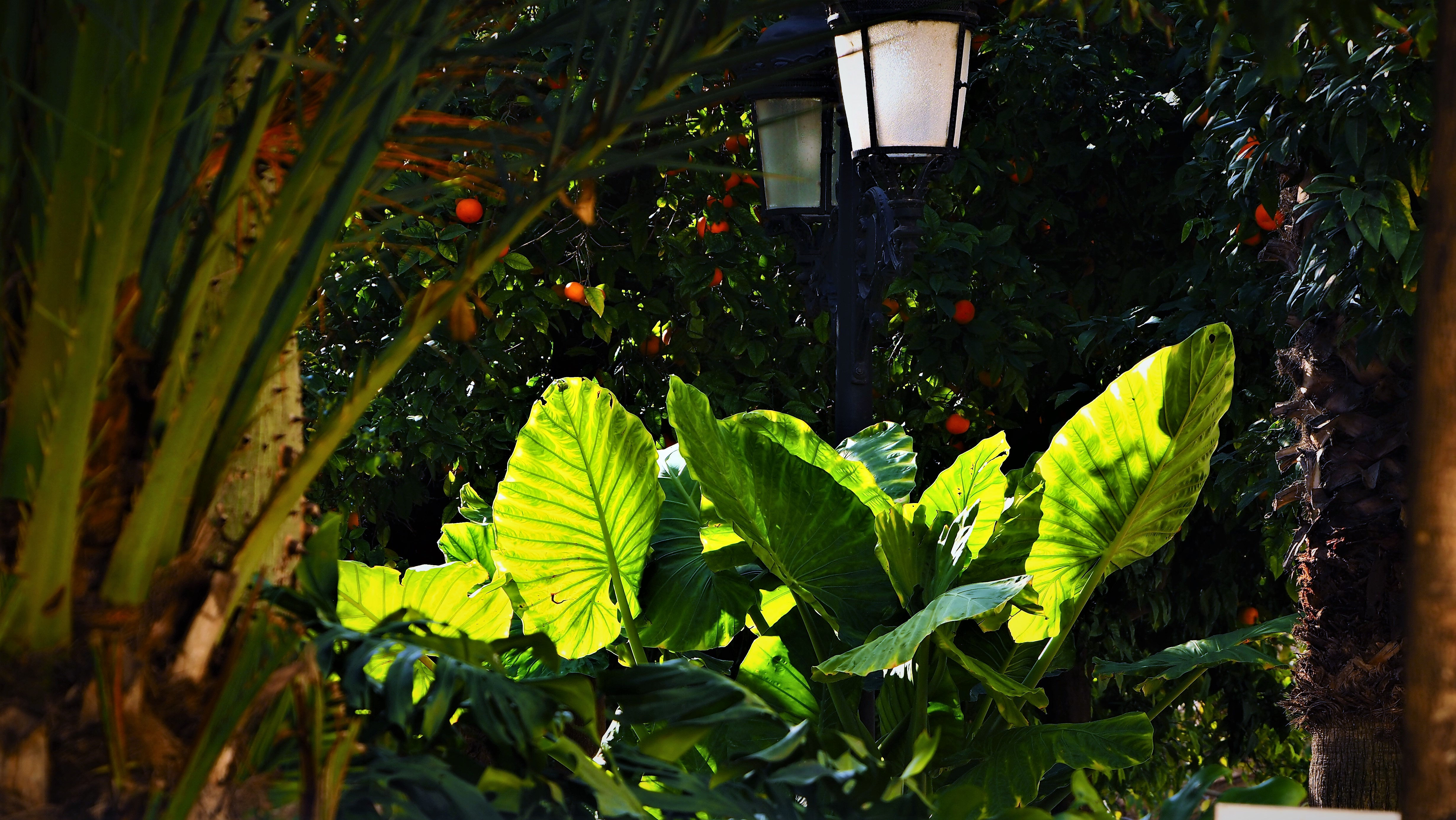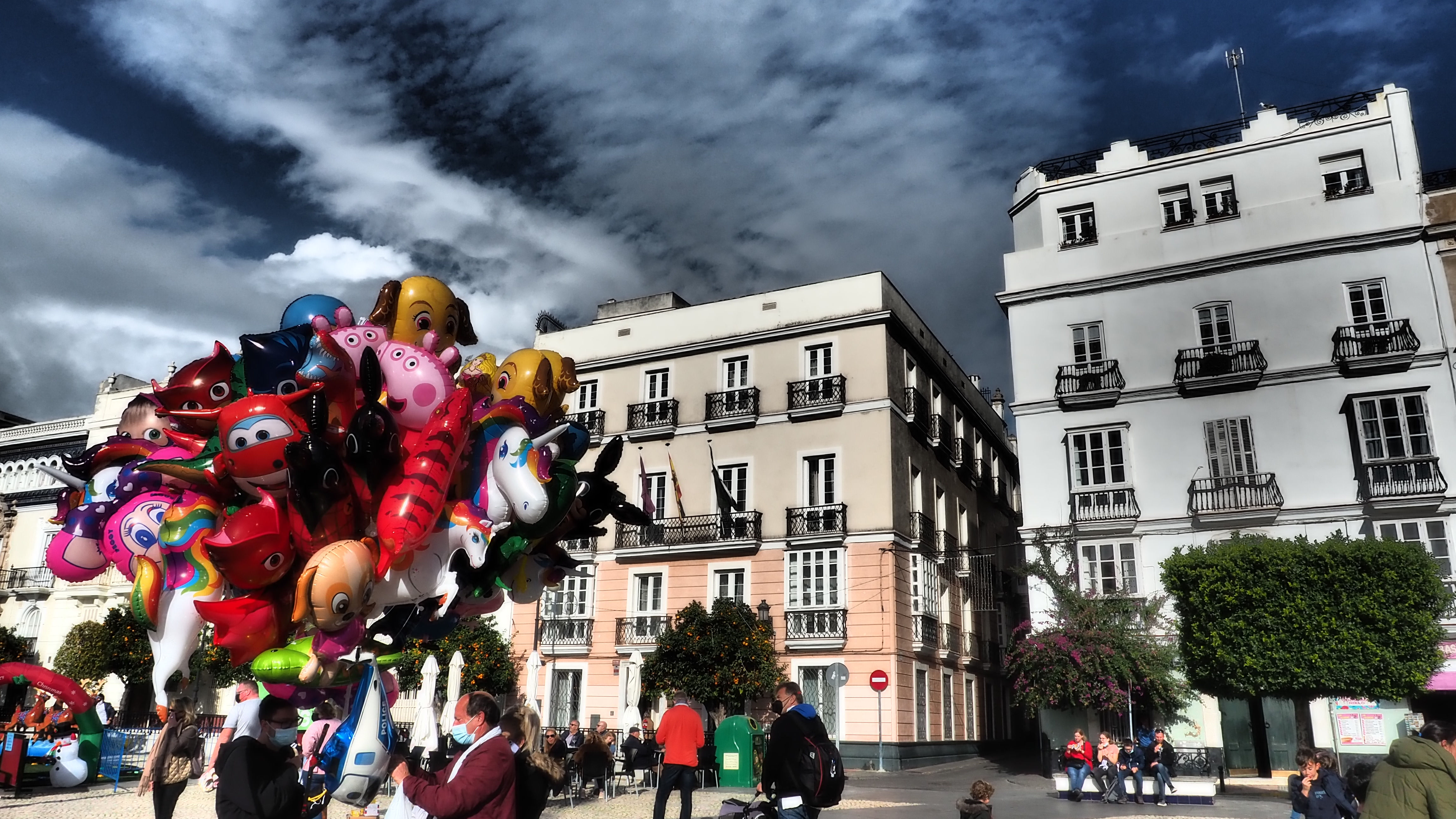 Schließlich ziehen sie aber auf, obwohl sie laut Wetterbericht vorbei ziehen sollten: Regenwolken. So setzen wir unsere Tour über die Parroquia die San Antonio und das Gran Teatro Fallo zum Parque Genovés fort. Wir passieren den Weihnachtsmarkt für Kinder, spannende Hauseingänge und die tollen Pflanzen in dem karibisch anmutenten Park. Wenige Meter vor unserem Womo fallen die ersten Tropfen…