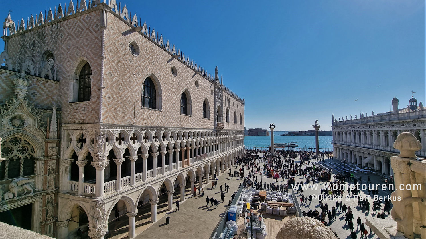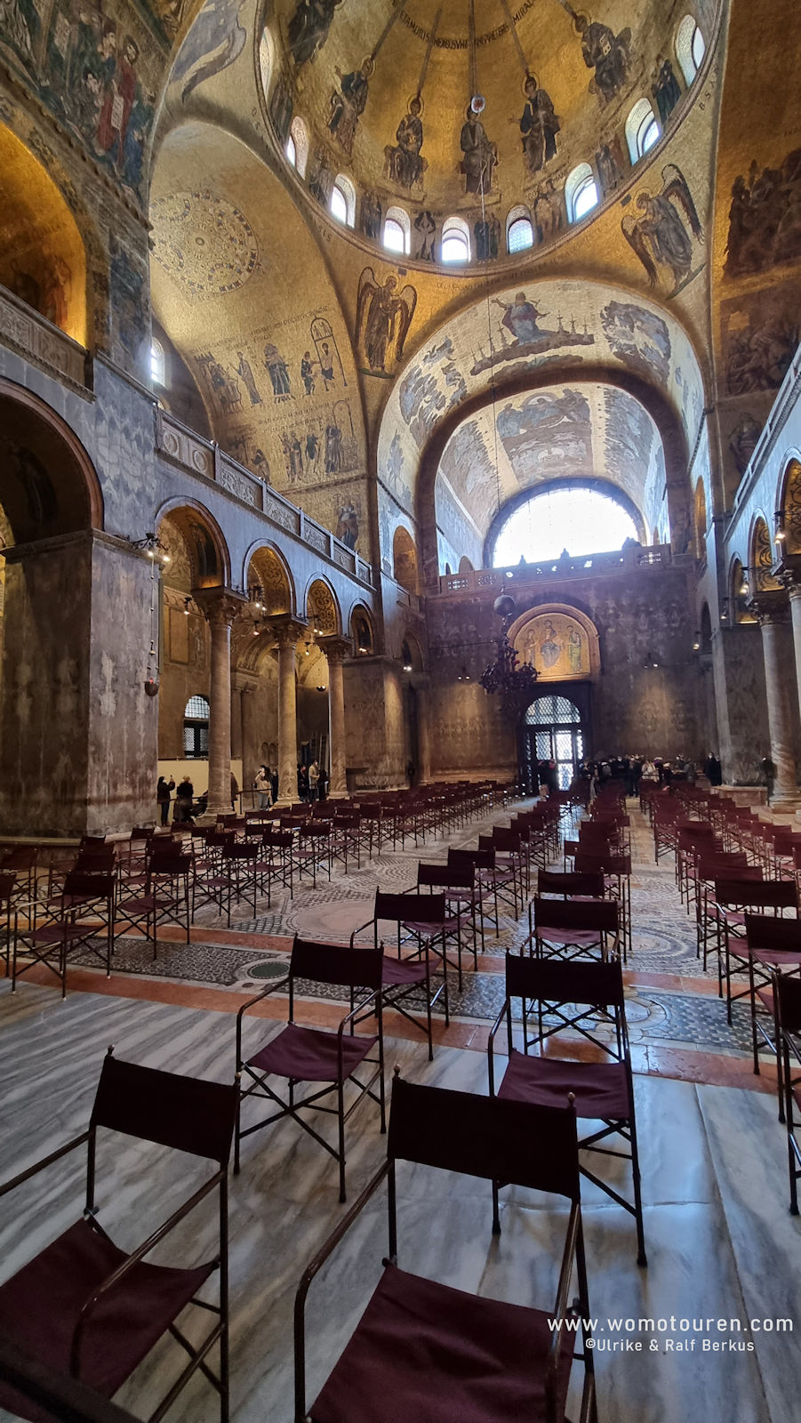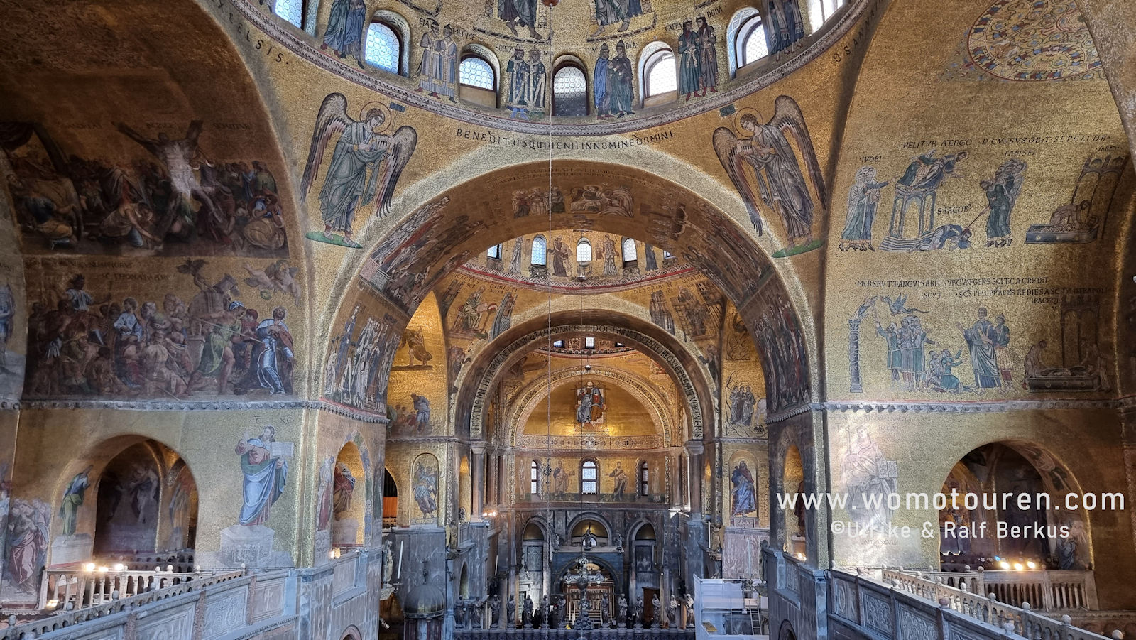 Schon beim Eintreten wird die ganze Schönheit dieses Prachtbaus deutlich. Gold ist die vorherrschende Farbe. Wirklich beeindruckend. Klar ist ein Besuch des Pala d’Oro und des Museums Pflicht, denn wer möchte schon die Highlights dieses Gotteshauses verpassen. Der abschließende Besuch auf der Balustrade ist für Ulli das Highlight des ganzen Besuches, den sie versucht hat, für Euch im Bild festzuhalten.