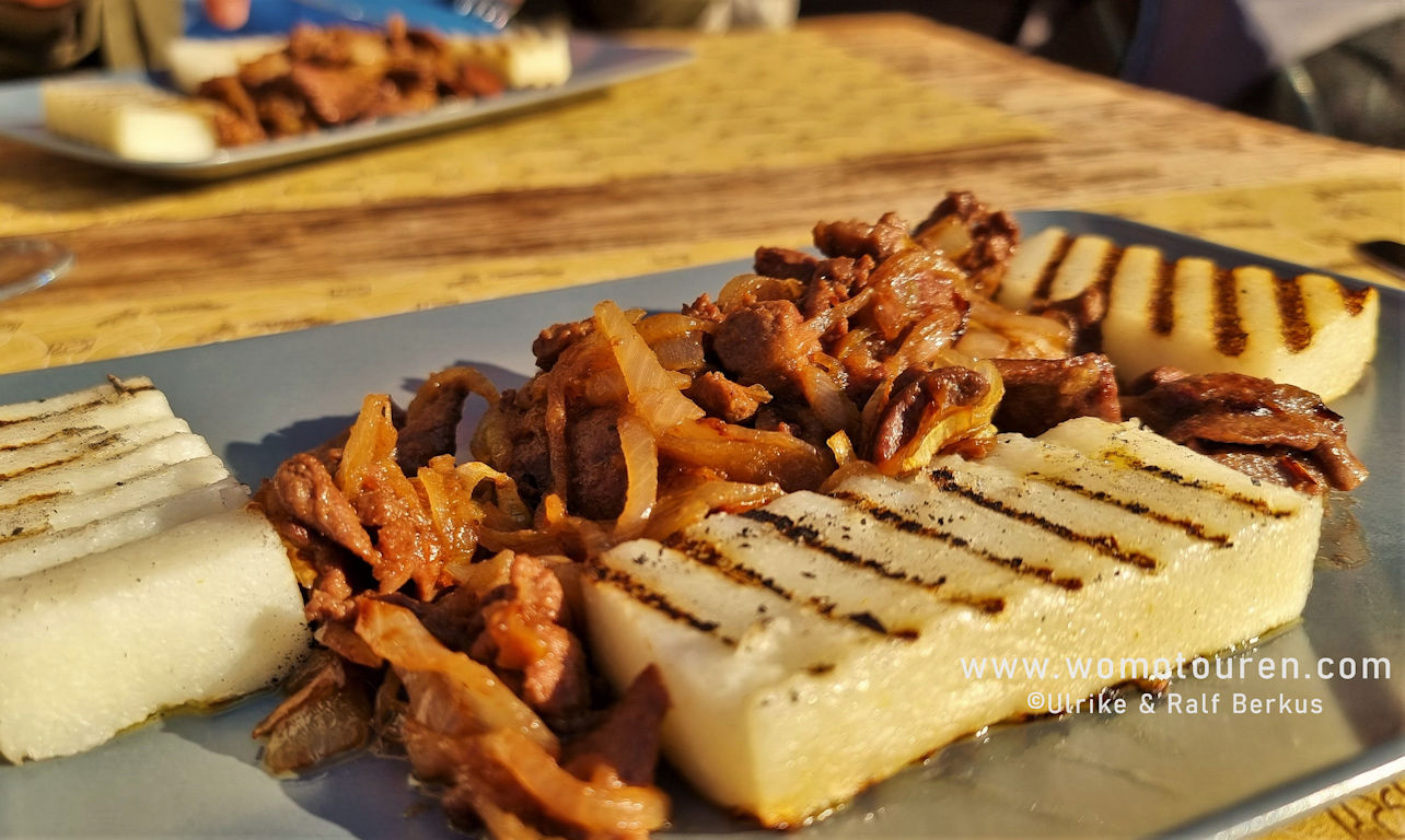 Wir landen in einer kleinen Trattoria in der Mittagsonne und was sollte heute anderes auf dem Speiseplan stehen als Fegato alla Veneziana mit Polenta – das typische Lebergericht aus Venedig. Dazu ein Glas Weißwein. Es ist herrlich…