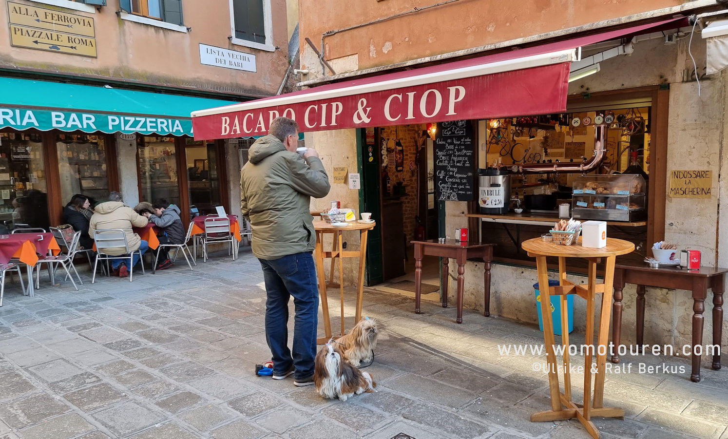Es sind zwei echte Veneziane hier aus Canareggio, die uns viel über die Stadt und die Besonderheiten hier zu leben berichten. Wir haben jede Menge Spaß und diese nette Begegnung ist wieder Mal ein Moment, Danke an unsere Cristina zu sagen. Ohne den tollen Italienischunterricht bei Ihr, wären solche Gespräche nicht möglich, in denen wir dann auch Dinge erfahren, die den meisten Touristen verborgen bleiben.