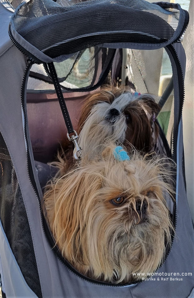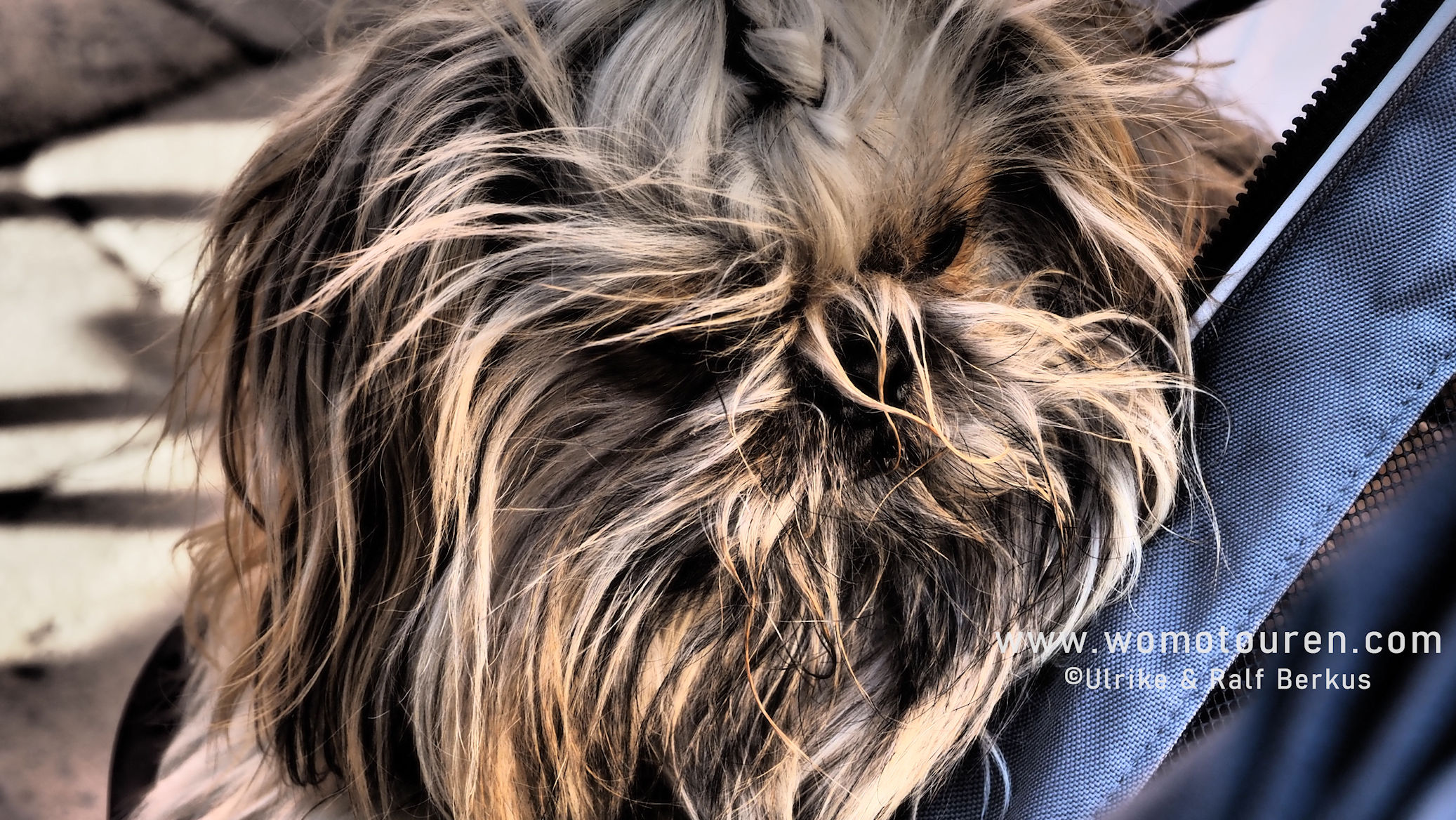 Kurze Zeit später in einer der engen Gassen kommt eine Bedienung, als sie unsere Fellzwerge sieht, aus dem Restaurant geeilt, kniet vor diesen nieder und beginnt mit einem Extremkuschler. Aber das ist noch nicht alles. Wir sind eigentlich schon außer Reichweite dieses Restaurants, als ihre Kollegin rufend herbeirennt, den gleichen Kuschelkniefall vor den Fellnasen vollführt und ein 5 minütiger Fellnasenschmuser folgt. Sehr zur Freude von Allie und Amadeo. Und wir freuen uns natürlich auch…