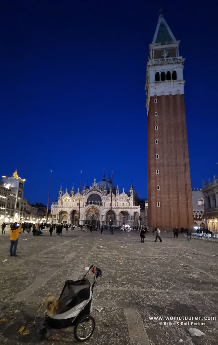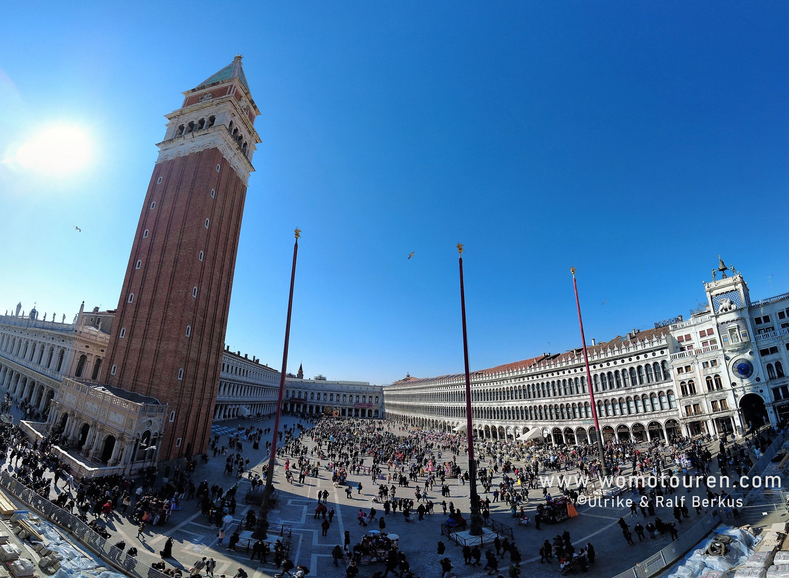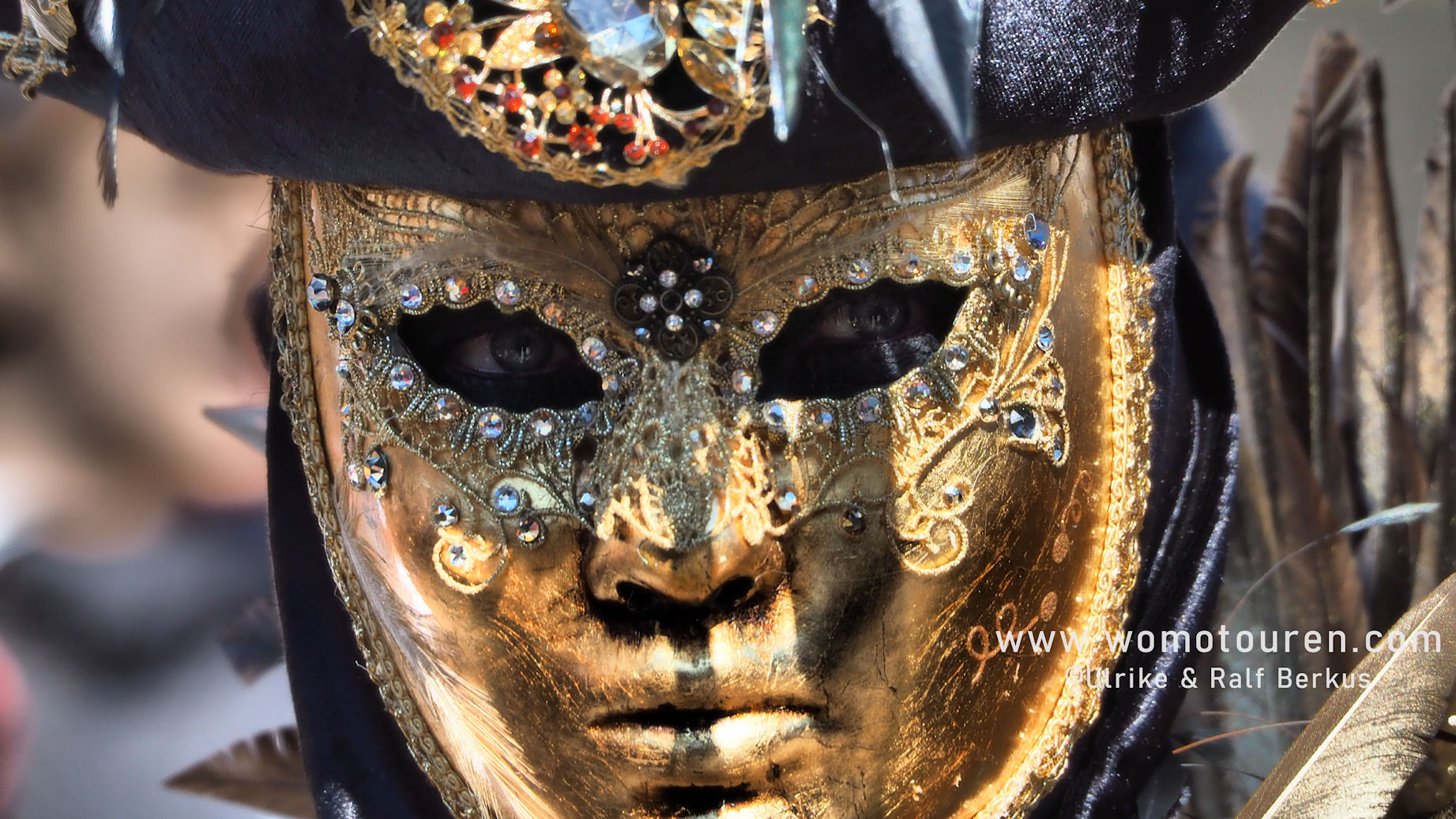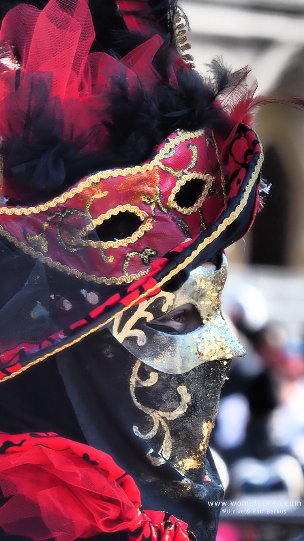 Kurz vor 12 erheben wir uns in Richtung Markusplatz. Ralf verschwindet direkt in der Kathedrale und Ulli fängt erste Masken im Gedränge des Markusplatzes ein.