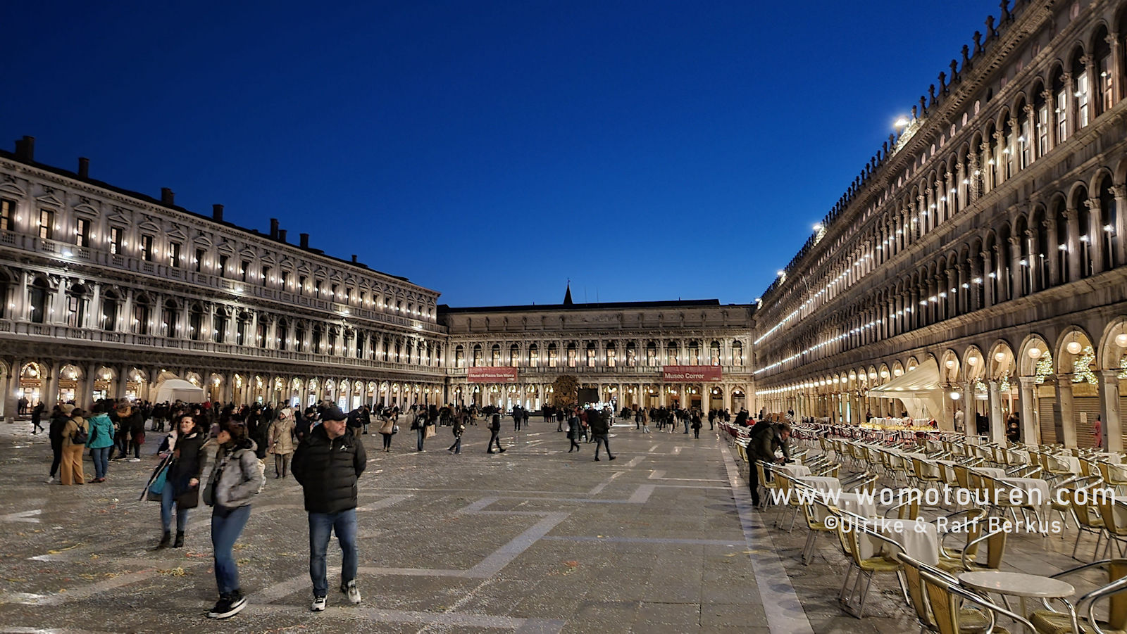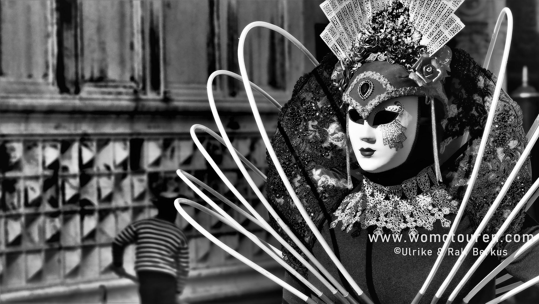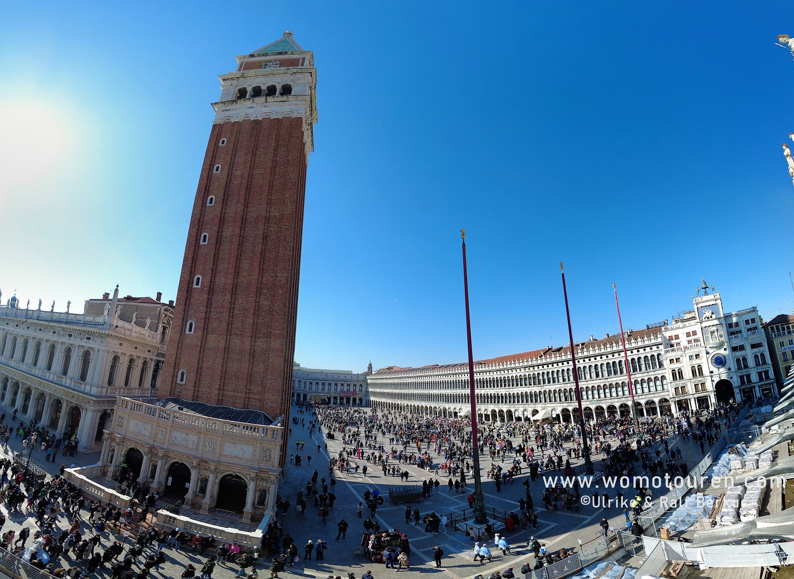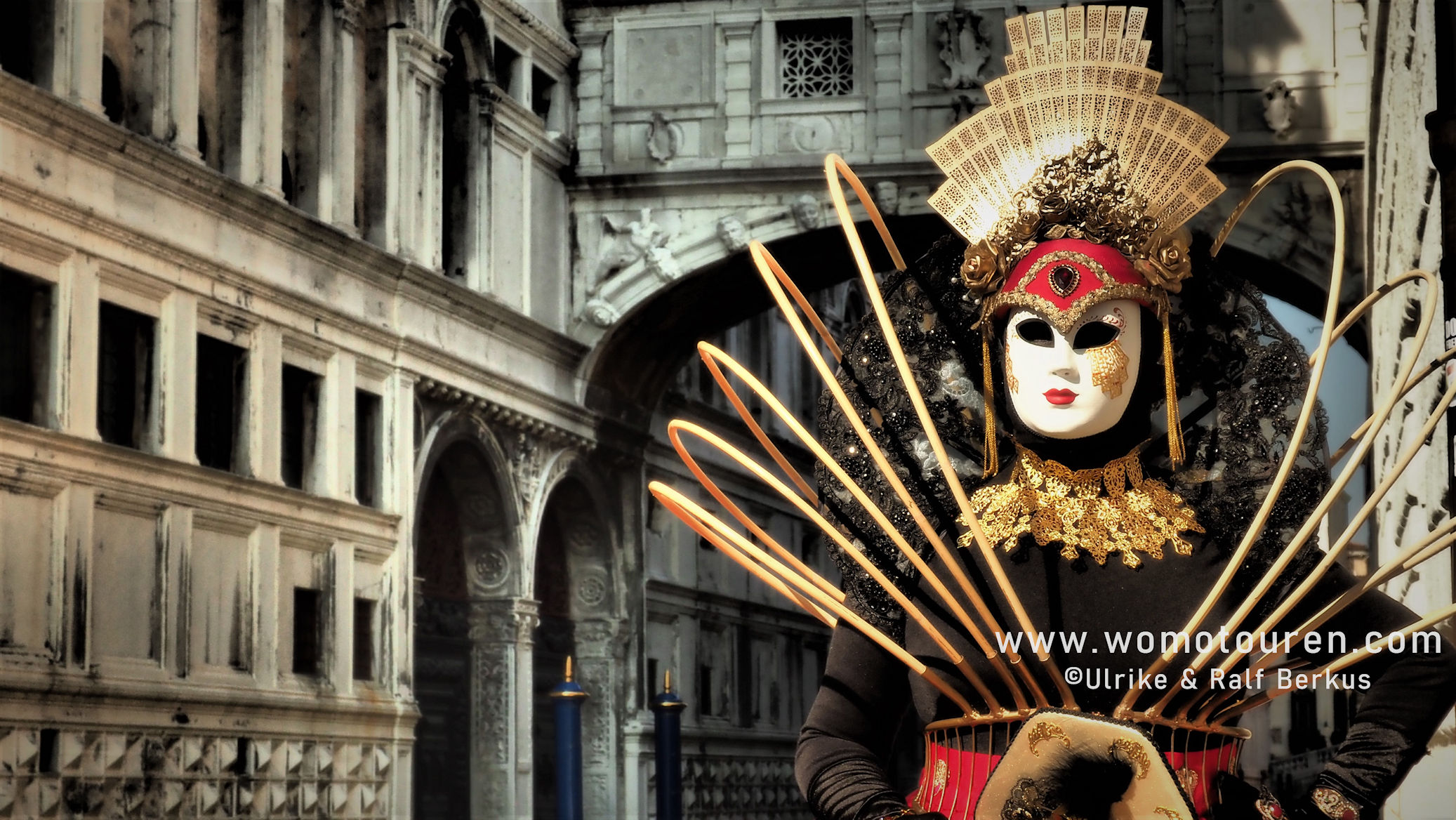 Kurz vor 12 erheben wir uns in Richtung Markusplatz. Ralf verschwindet direkt in der Kathedrale und Ulli fängt erste Masken im Gedränge des Markusplatzes ein.