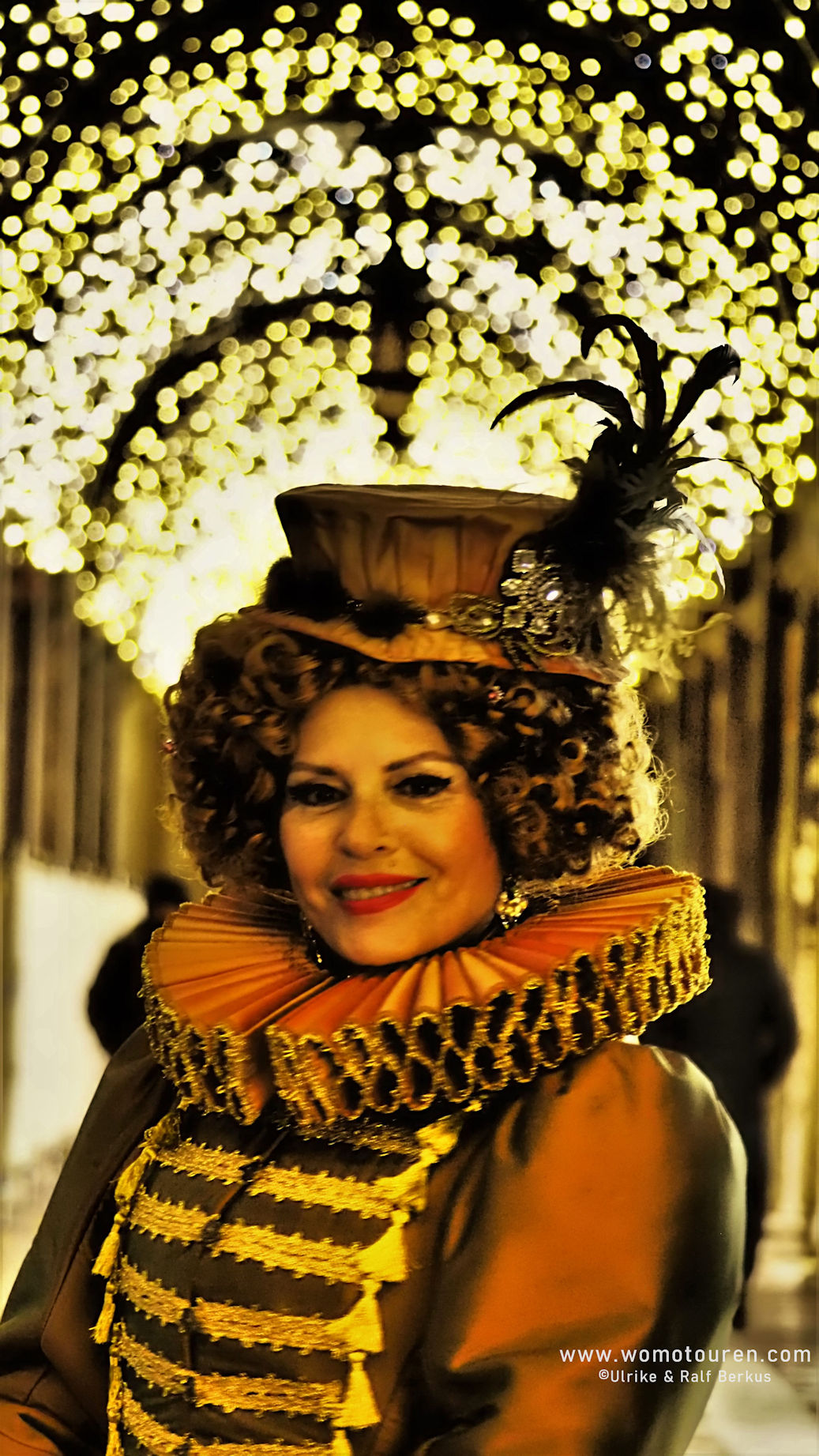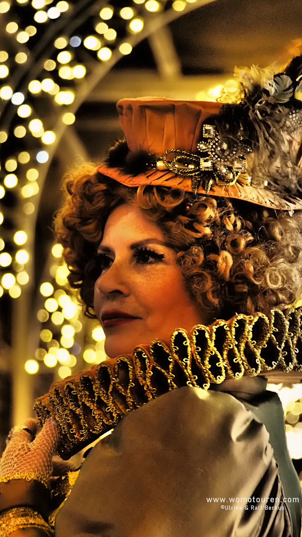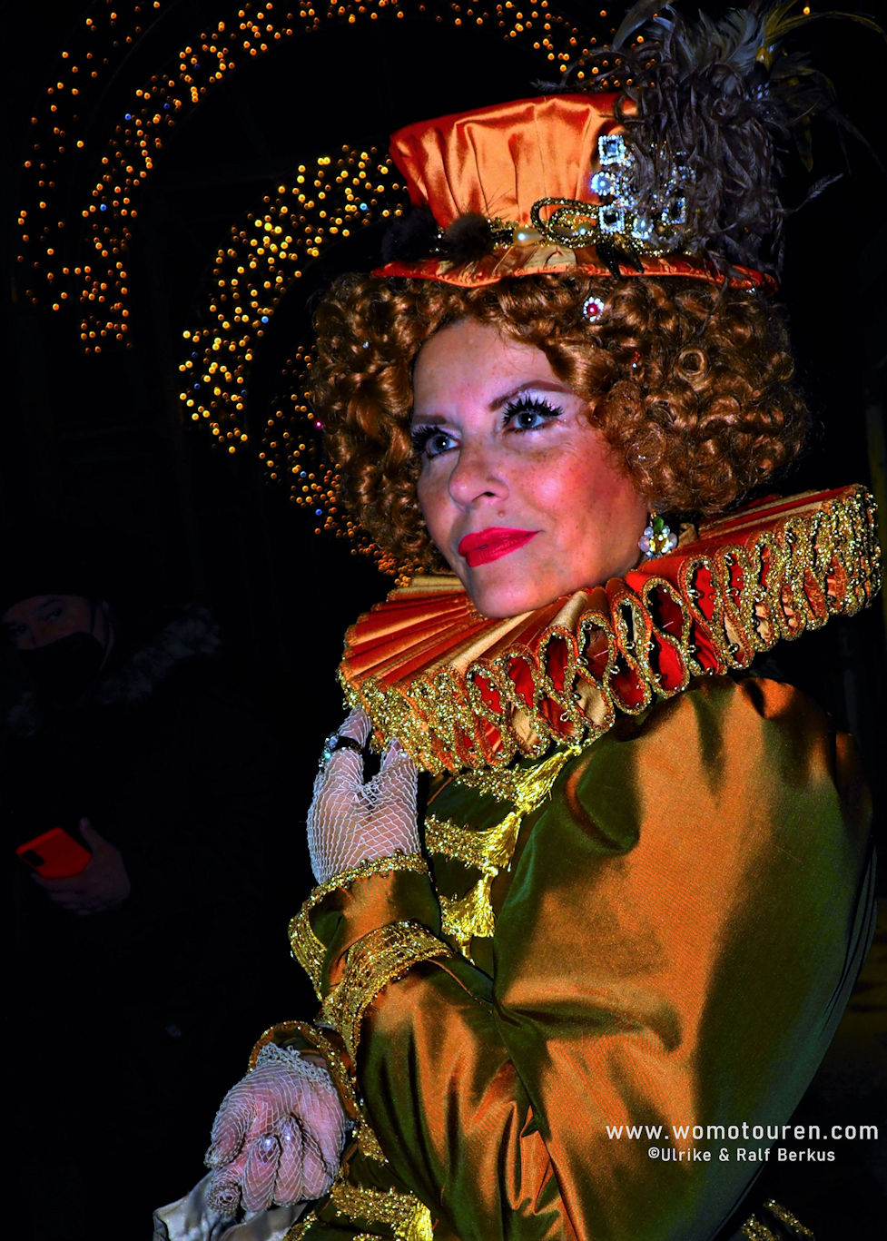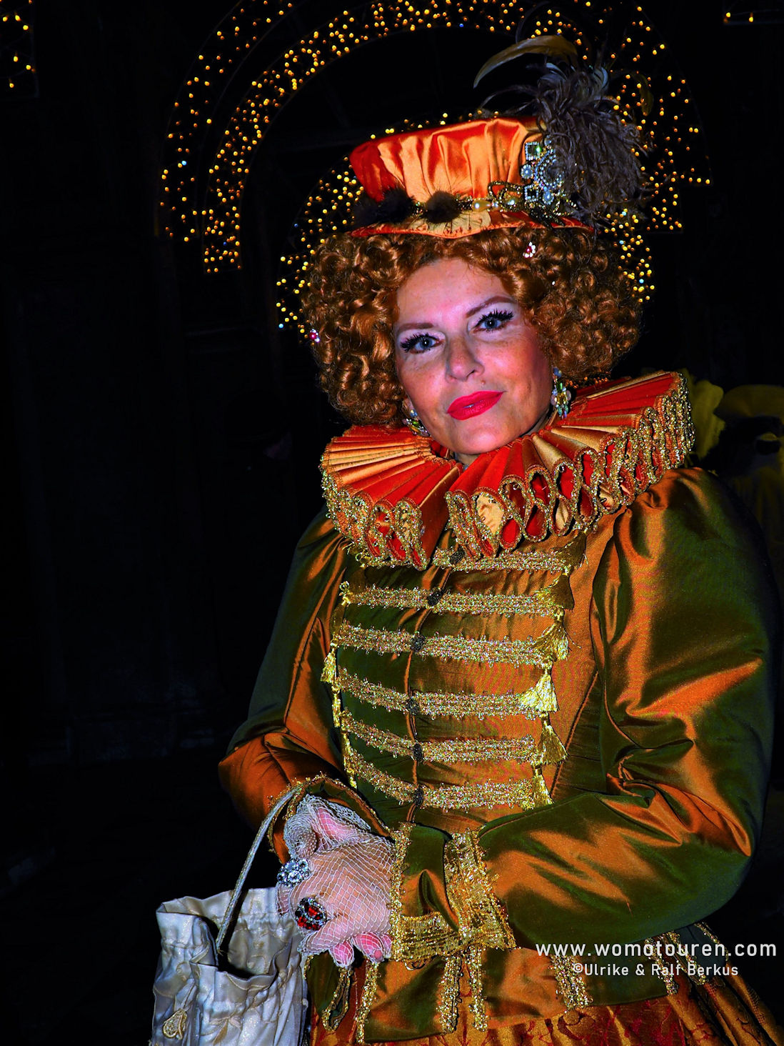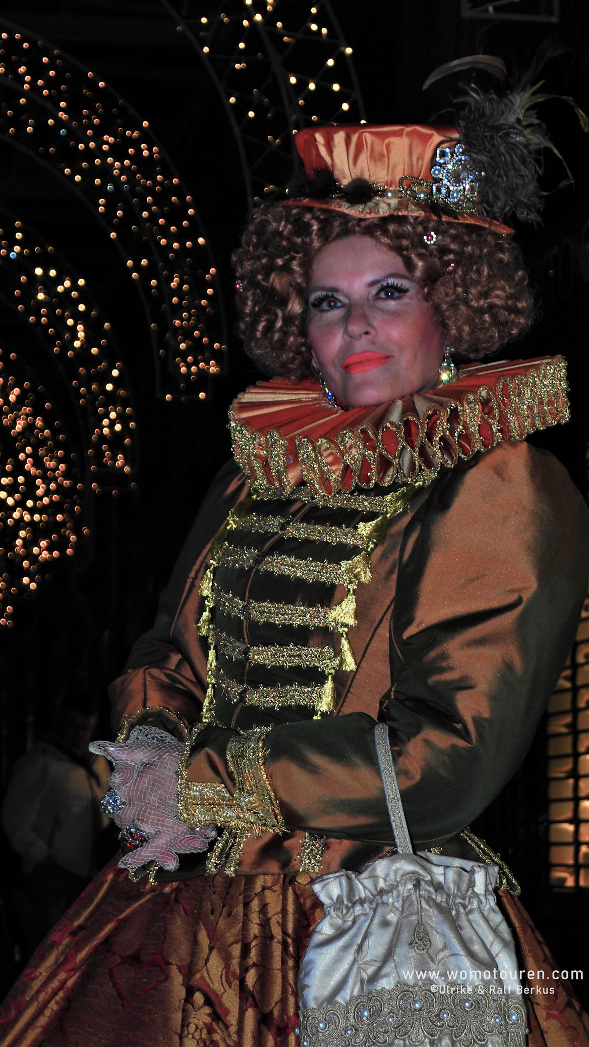 Wie an jedem Abend ist auch heute wieder am Caffè Florian am meisten los. Hier treffen wir auch eine kostümierte Dame aus Deutschland: Isabella.