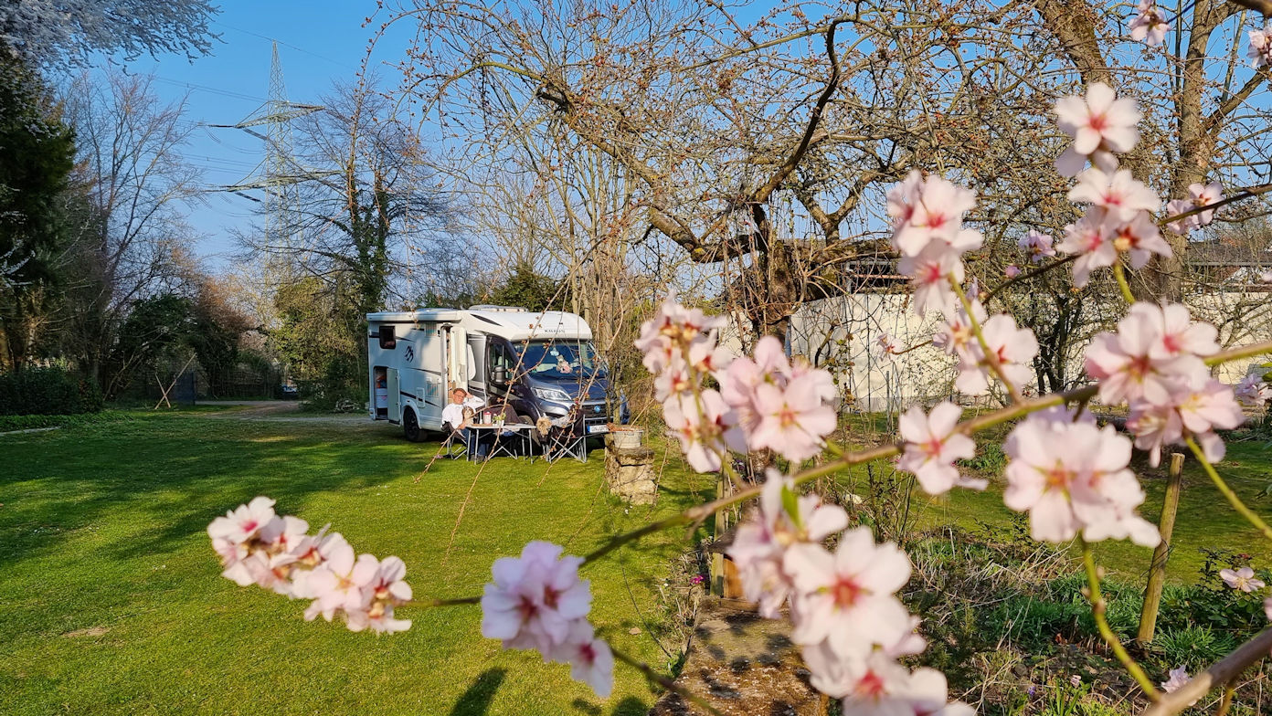 Trotzdem sind wir aber gerade on Tour. Wir hatten wegen des schönen Wetters bereits vor ein paar Tagen einen Aufenthalt in Rheinhessen auf einem Weingut reserviert. Als wir gestern am späten Nachmittag hier ankamen, wurden wir von der Winzerfamilie sehr herzlich begrüßt. Der Stellplatz liegt in einem wunderschönen Garten, die Sonne scheint, das erste Glas Wein schmeckt auch. Also beste Voraussetzungen für etwas Entspannung, um die schönen Dinge sehen und genießen zu können.