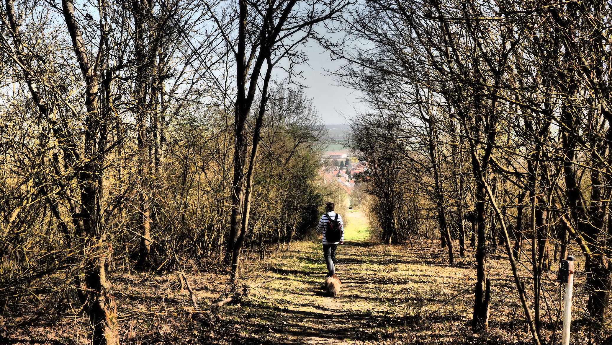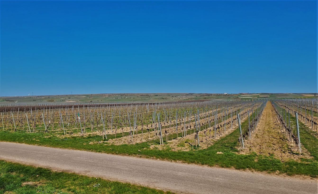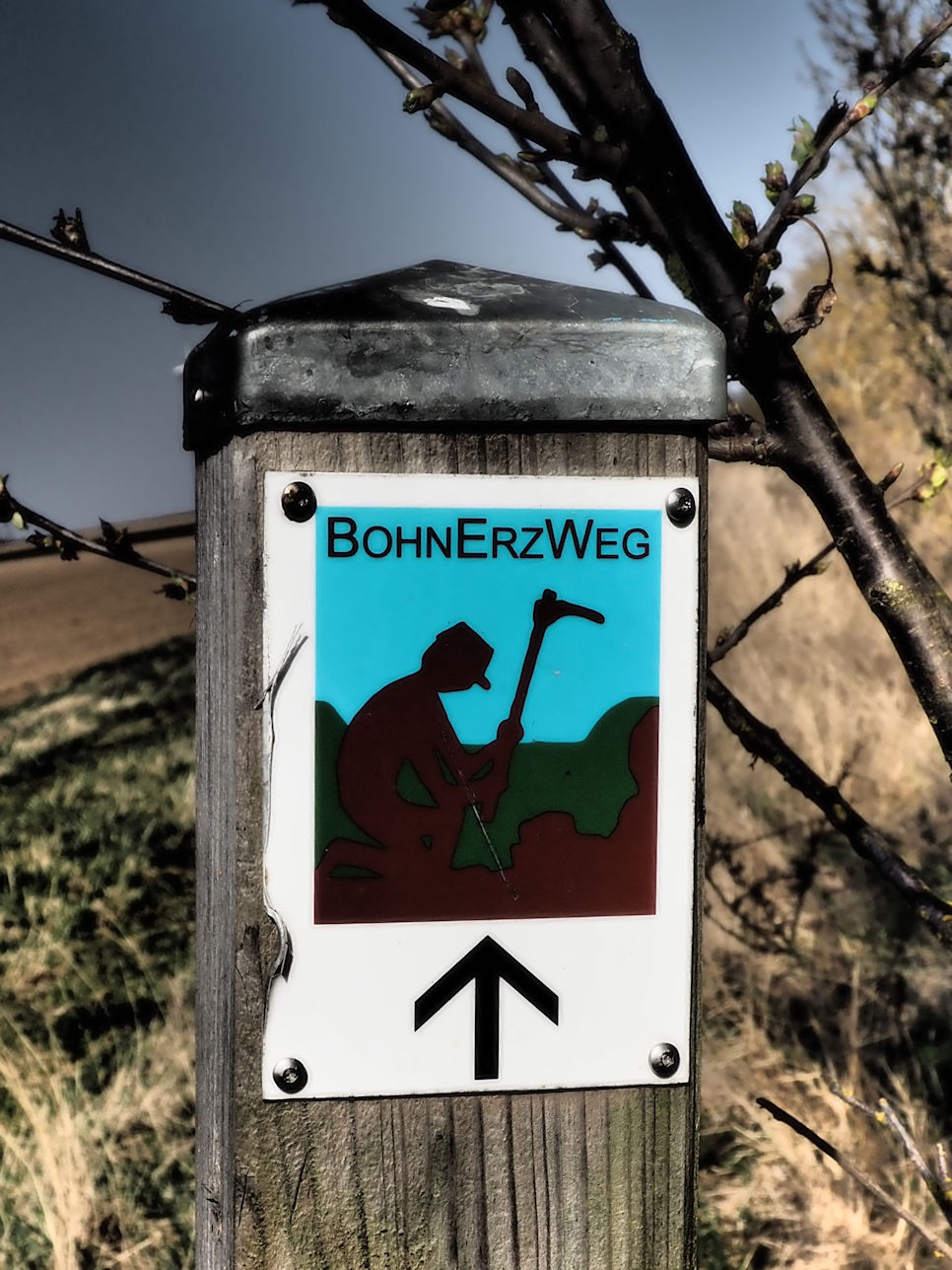 So gegen 11 Uhr verlassen wir Monzernheim und es geht etwas bergauf auf den Bohn-Erz-Weg in Richtung Weinkastell. Die Sonne scheint bereits und die Temperaturen sind für März recht hoch.