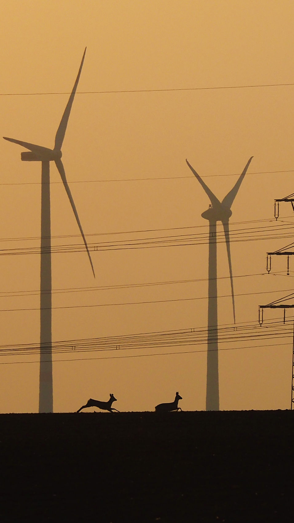 Pünktlich zum Sonnenuntergang ist die Weinprobe beendet und es folgt eine kleine Runde in die nahegelegenen Umgebung mit Ausblicken auf blühende Weinfelder, Rehe vor den bereits erwähnten Windrädern und einer Raubvogelbegegnung.