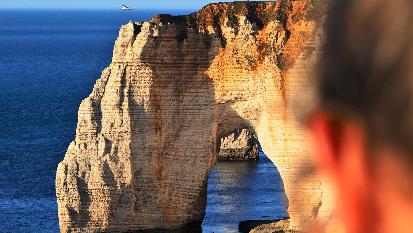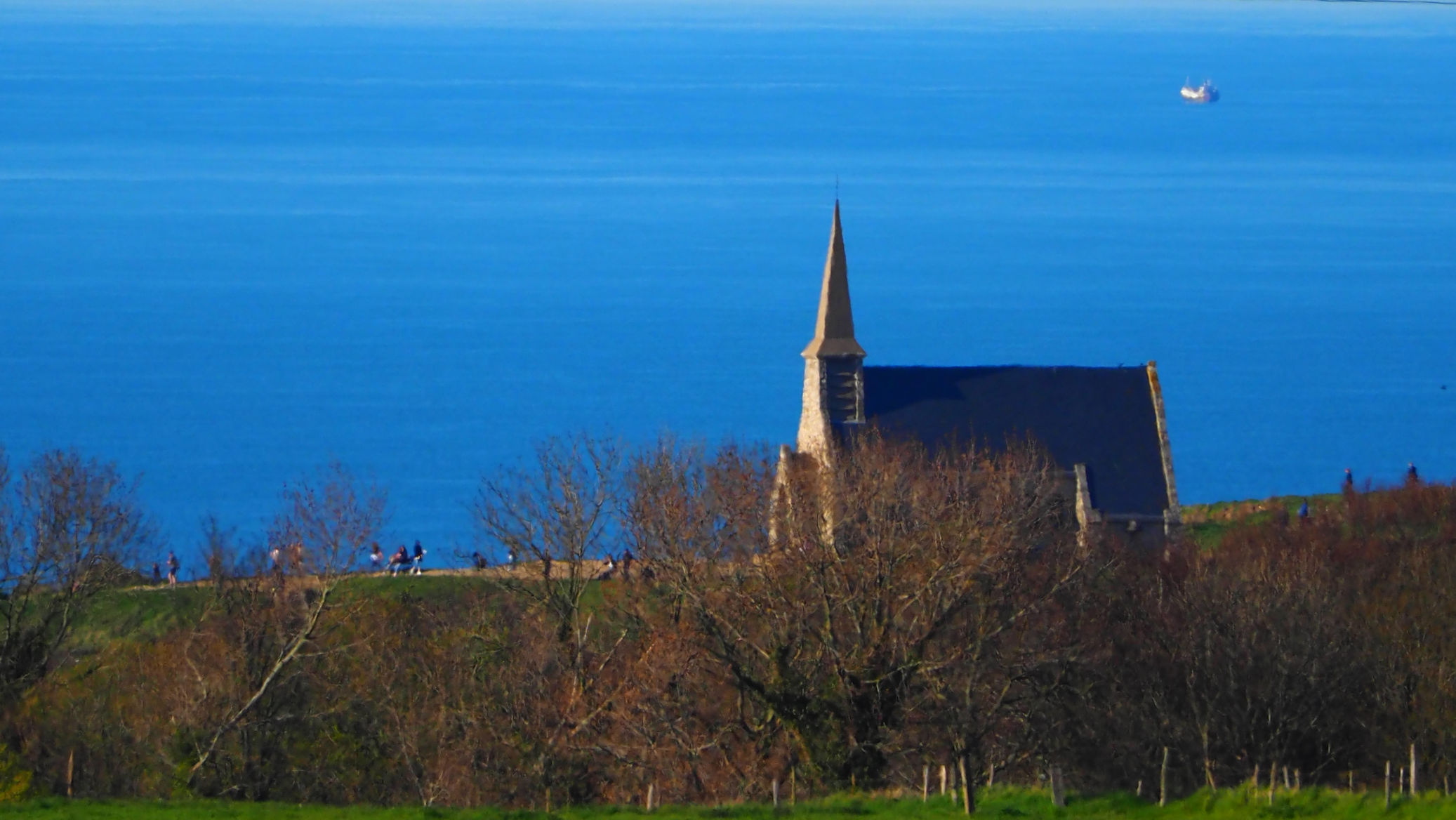 Schon nach wenigen Minuten fällt der Blick auf die bekannte Kapelle oberhalb von Ètretat sowie den Leuchtturm Antifer. Durch die schönen Wege ist die Tour kurzweilig und nach etwa einer Stunde erreichen wir den Eingang zum Naturpark.
