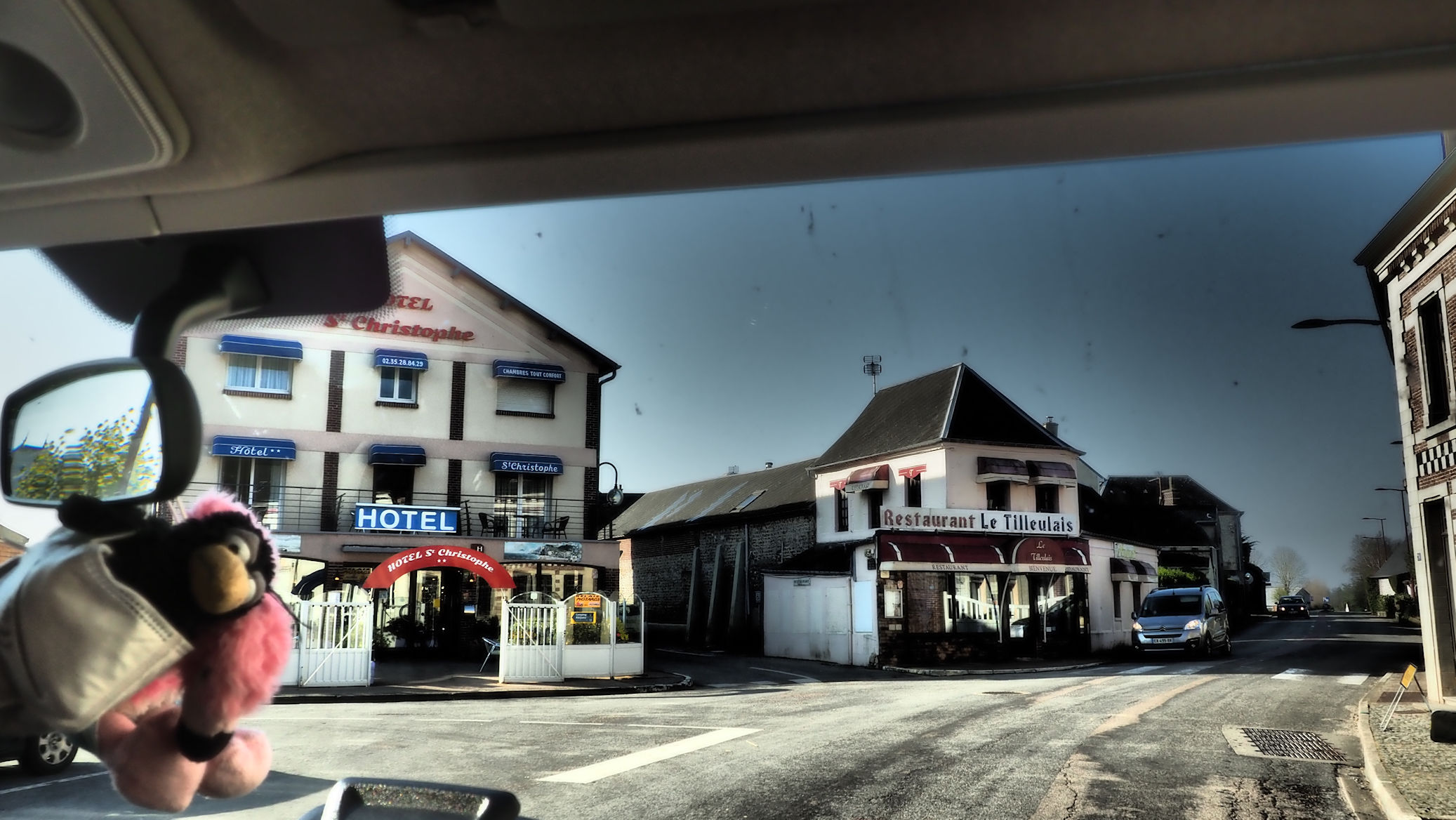 In Cauville sur Mer finden wir einen Parkplatz direkt vor der Patisserie Leroy Benoit. Es folgt ein Frühstück mit leckerem Croissant und duftendem Kaffee. Die Sonne scheint zwar, aber der Himmel ist von einem Nebelschleier getrübt.