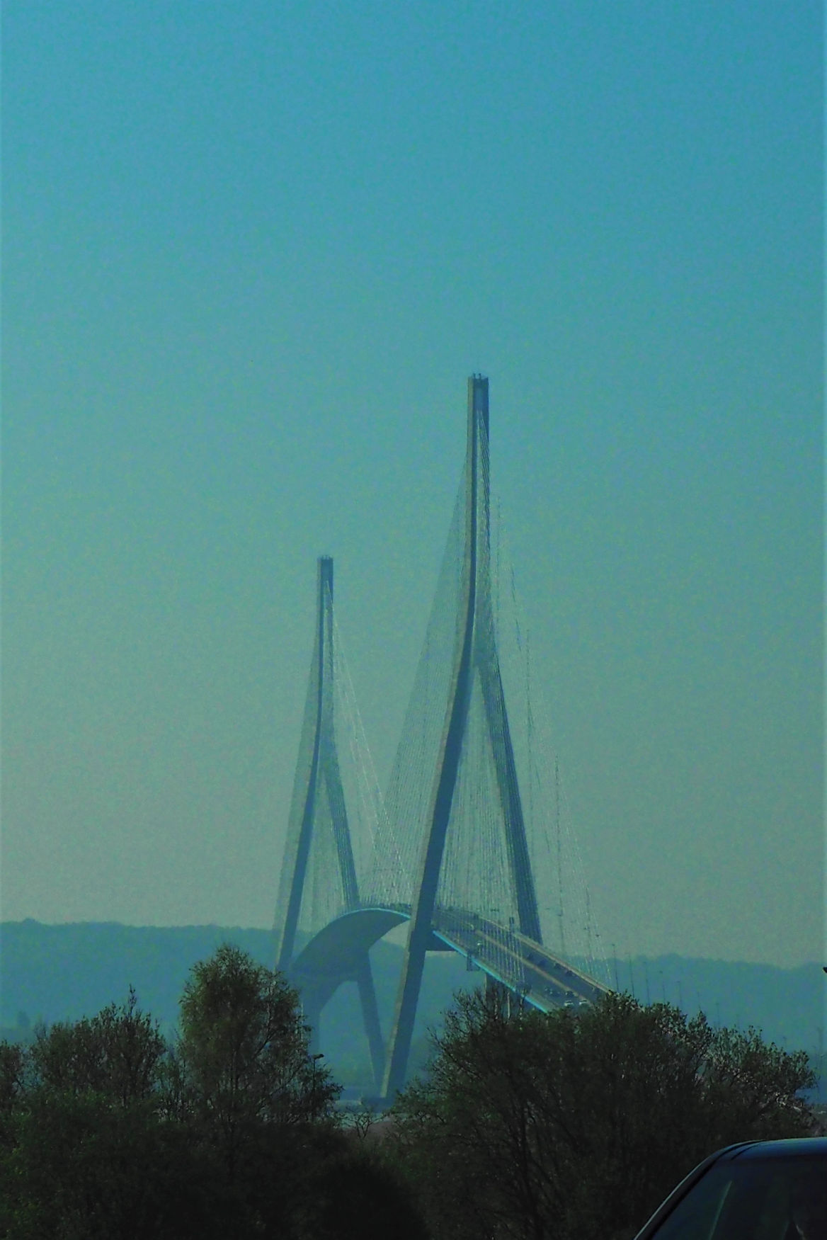 Durch den kleinen Ort „Le Cafe Blanc“- der Ortsname entlockt uns ein breites Lächeln – führt uns unsere Tour weiter über die Pont de Normandie bei Le Havre hinein ins Calvados.