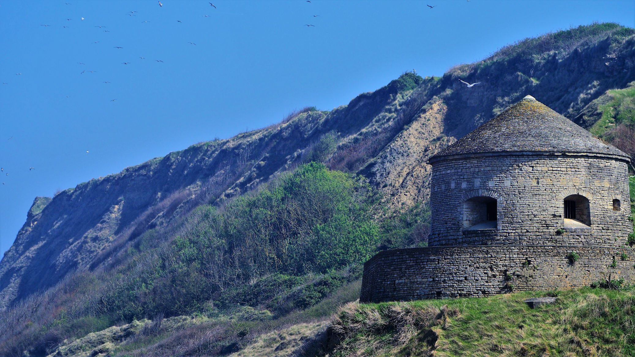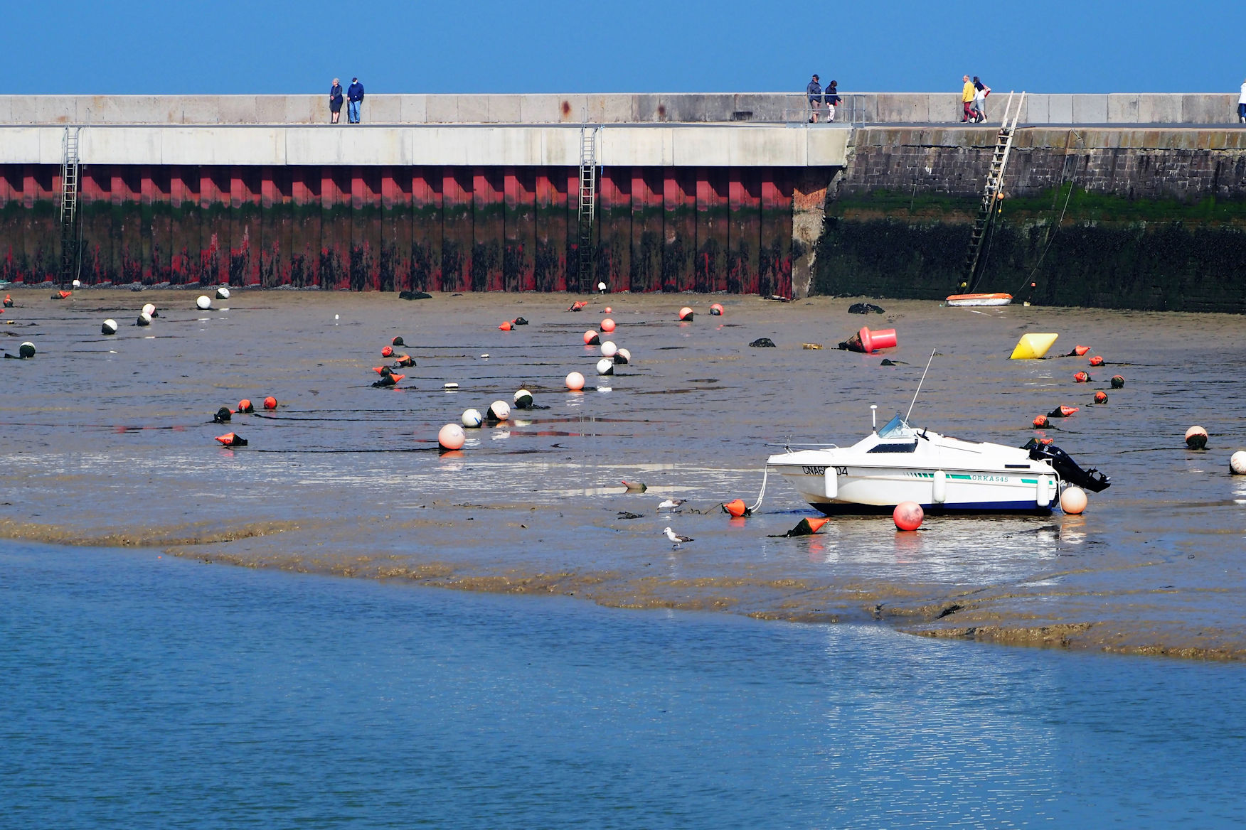 Vorbei an Caen versuchen wir unser Glück, oberhalb von Arromanches-les-Bains einen Stellplatz zu bekommen. Aber es ist Ostern und andere hatten die gleiche Idee. Unten im Ort auf dem Womostellplatz sind zwar noch Plätze frei. Aber die Anzahl der Busse – wir zählen so um die 10 – und der Gedanke an die Menschenströme in der kleinen Hafenstadt, erleichtert uns die Weiterfahrt ins nahe gelegene Port en Bessin. Ob wir dort einen Platz bekommen?