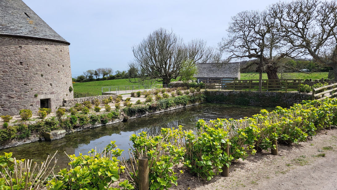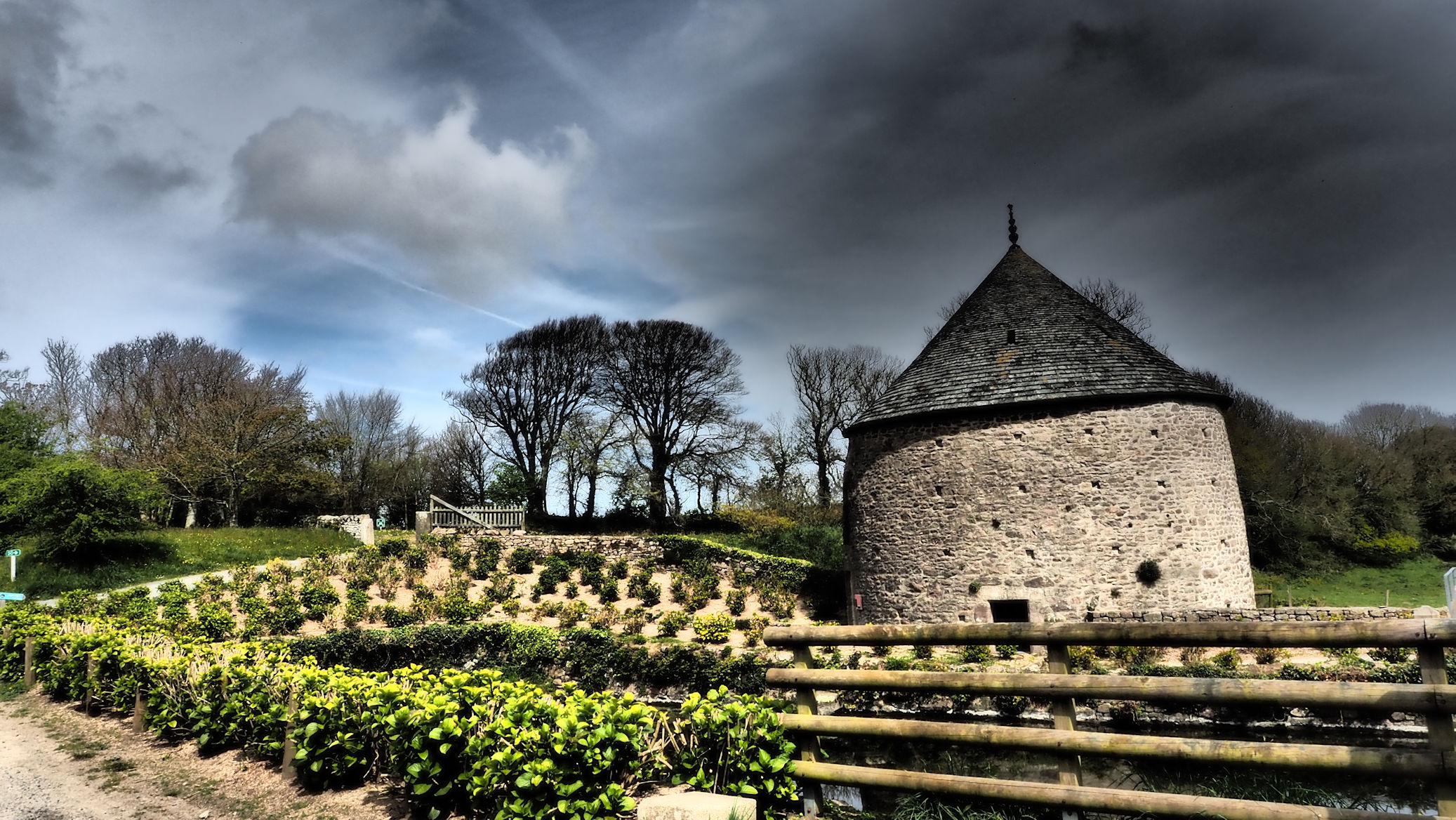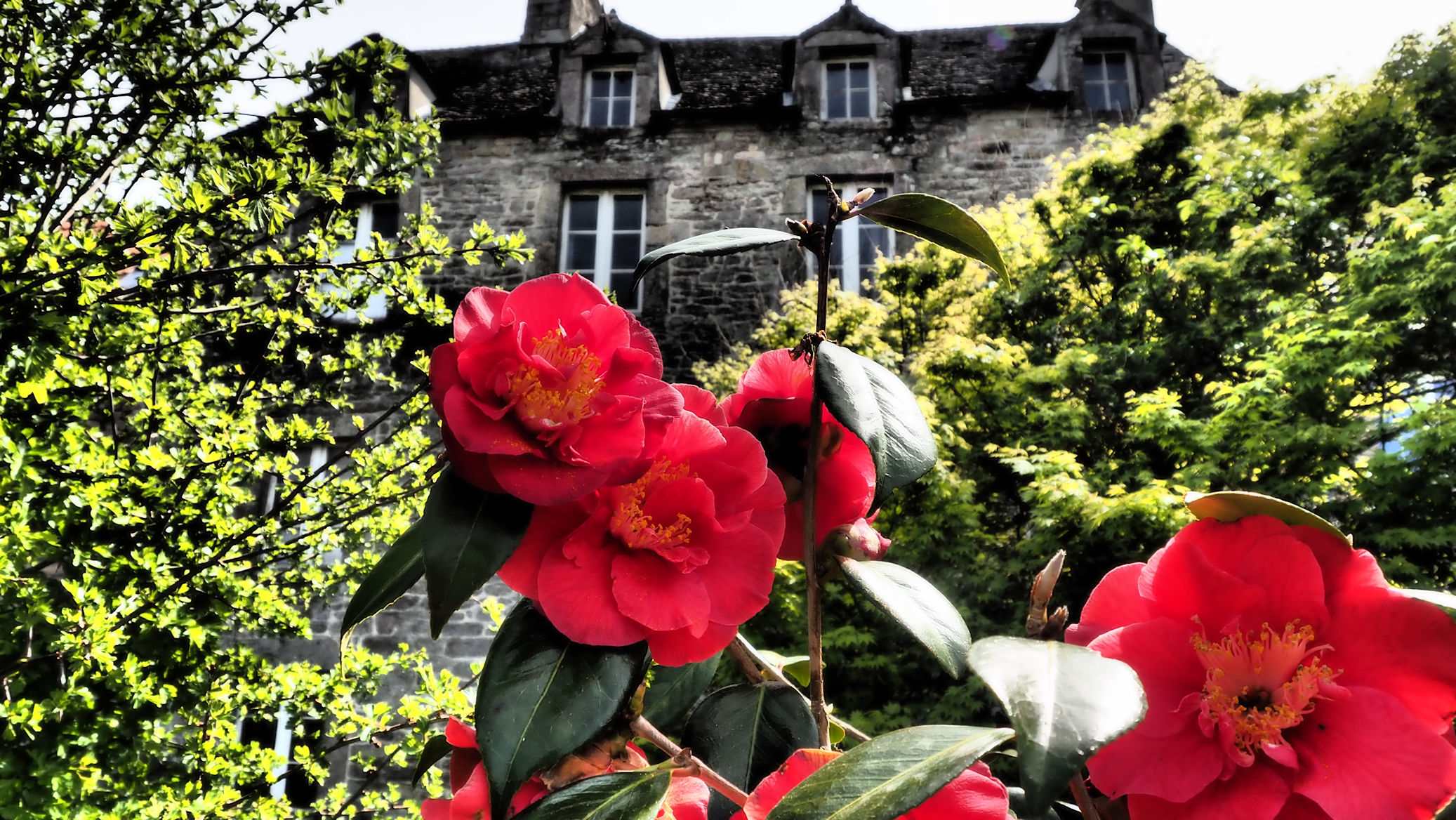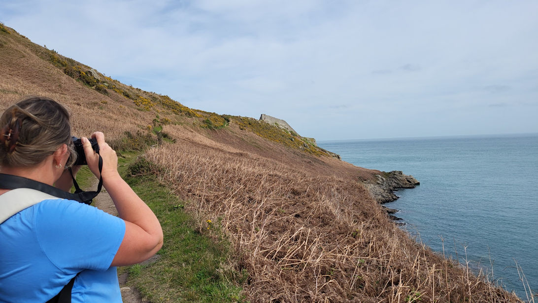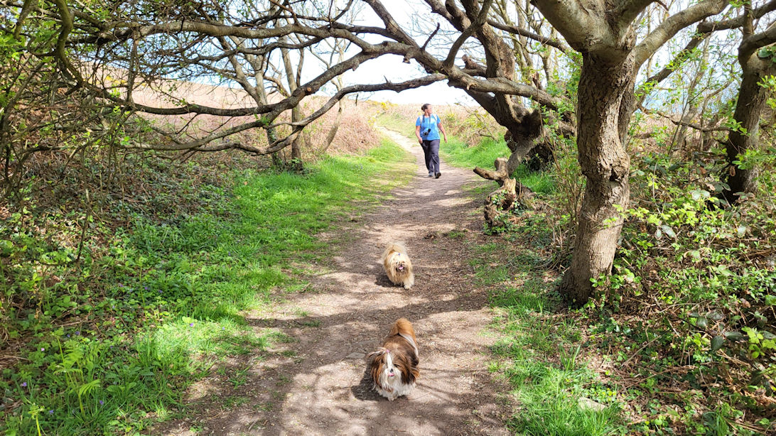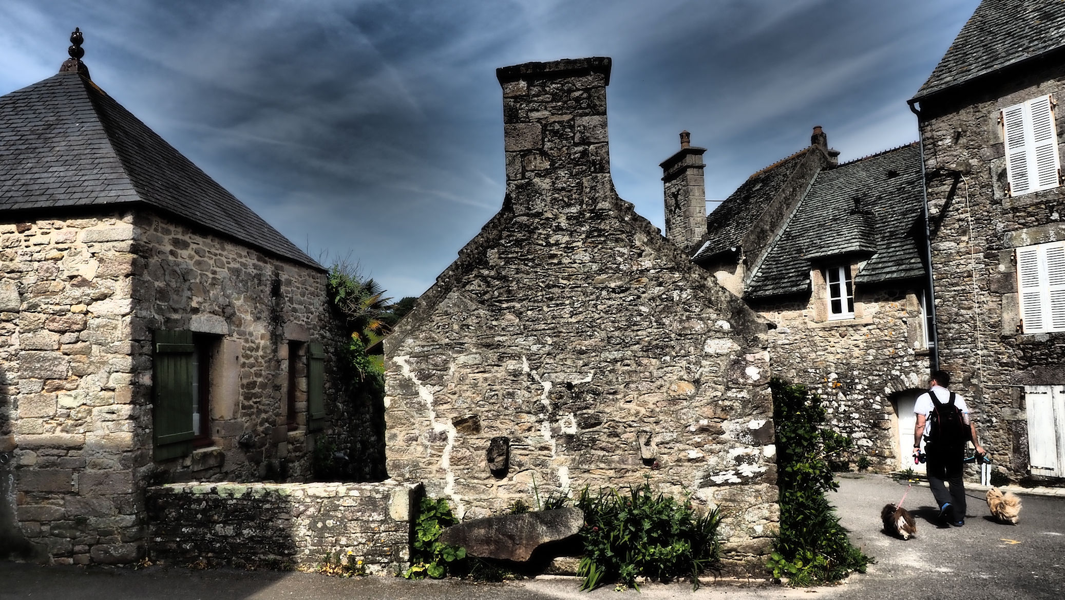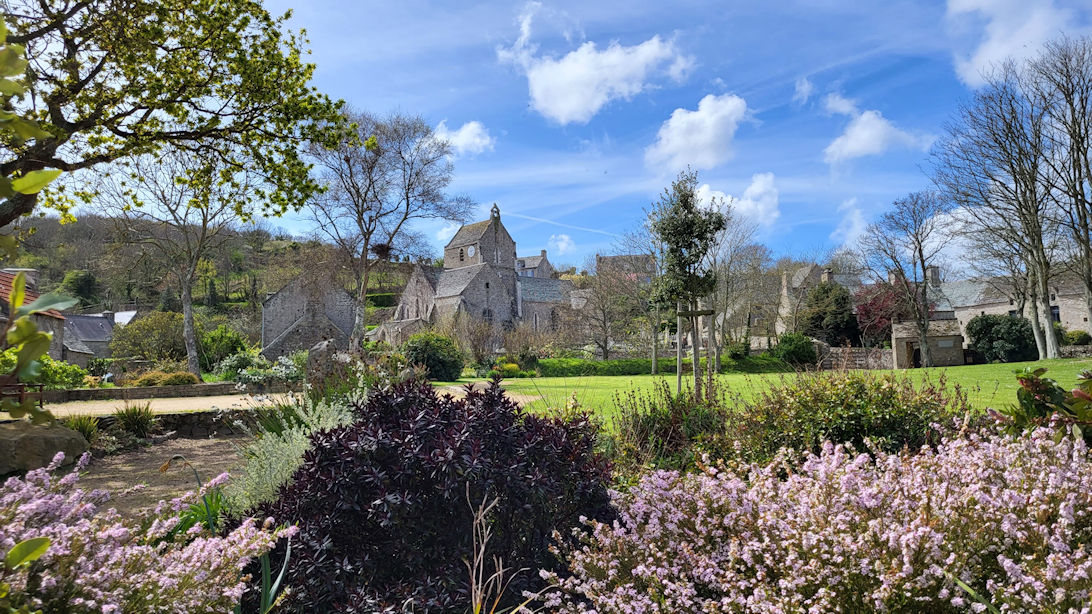 Nach guten 4 Kilometer verlassen wir den Küstenweg. Auf engen Pfaden durch dicht bewachsene und blühende Wälder mit immer wieder tollen Ausblicken auf’s Meer, gelangen wir ans Manoir de Tourpp. Mittagspause! Das mitgebrachte Käsebrot schmeckt herrlich und auch die Fellnasen haben sich nach nun etwa 7 km ihre Mittagessen verdient. Nach gut einer halben Stunde Pause geht es dann den Rest des Weges abseits der Küste wieder zu unserem kleinen Camping.
