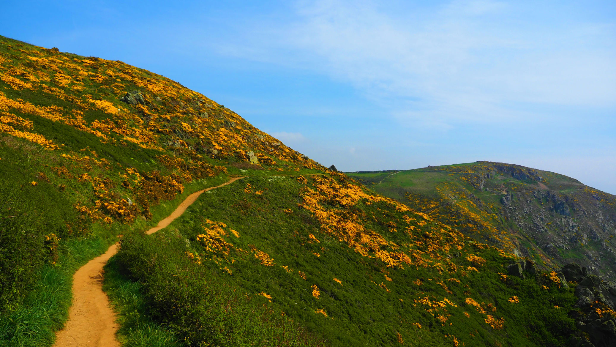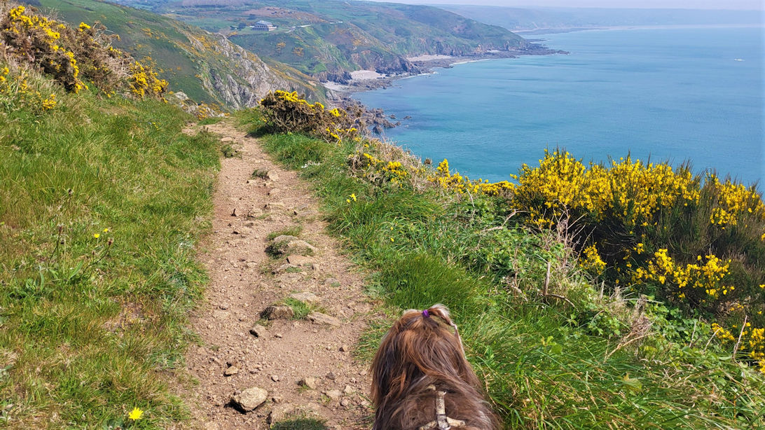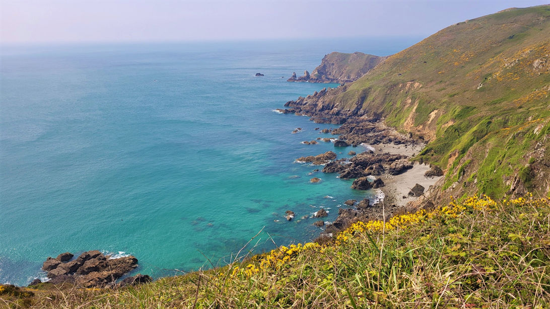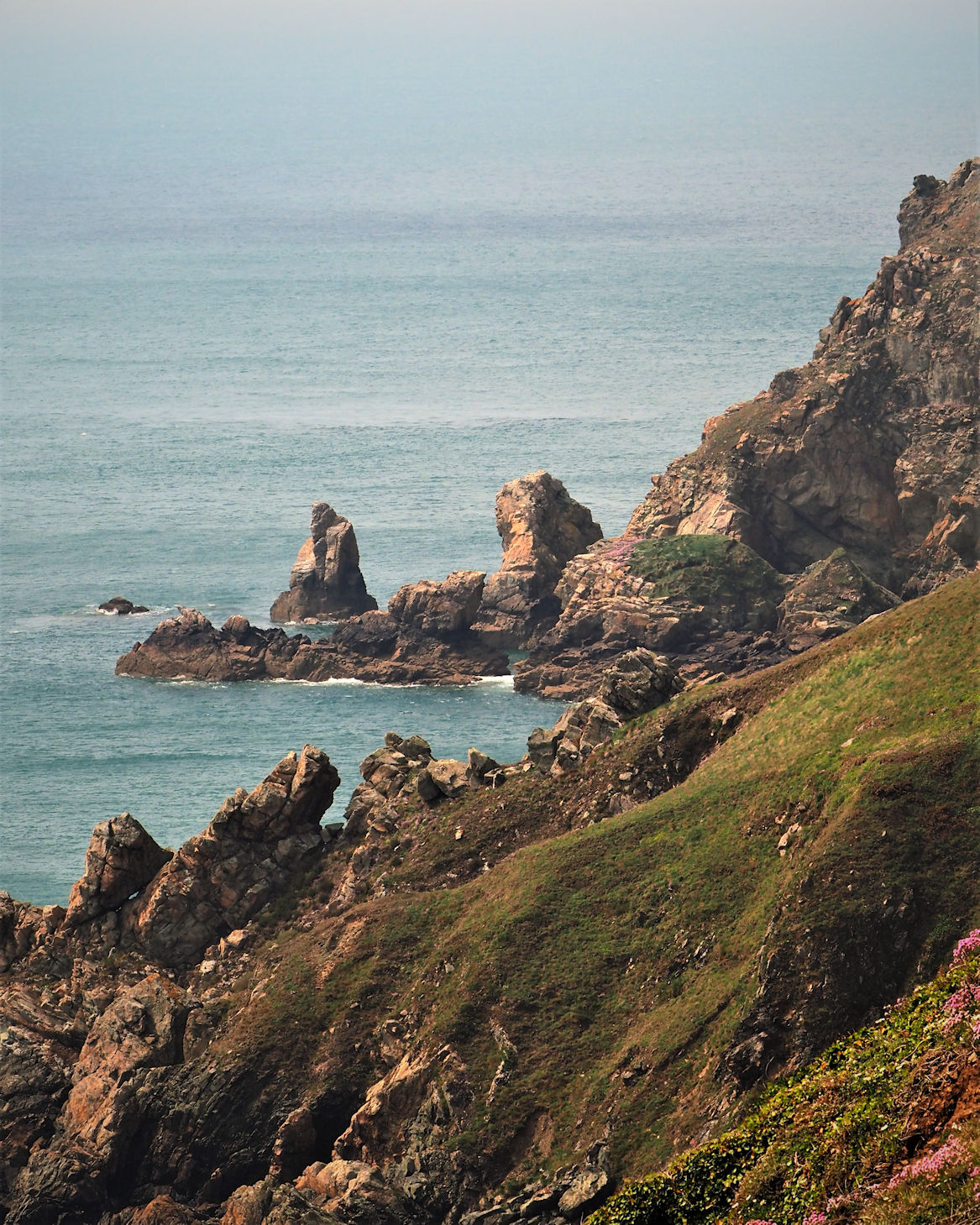 Die ein oder andere Passage ist wirklich steinig und steil und hat alpinen Charakter. Aber bei diesen Ausblick über die Blütenbracht auf’s Meer, ist solches Gelände ganz einfach zu meistern. In jeder Kurve bietet sich ein neues Panorama und tatsächlich ein teilweise extremer Wechsel der Temperaturen. Von sommerlich heiß bis ich brauch unbedingt meine dicke Jacke, ist alles dabei.