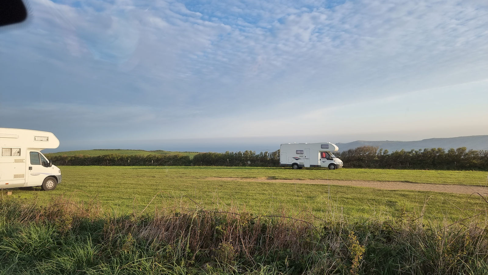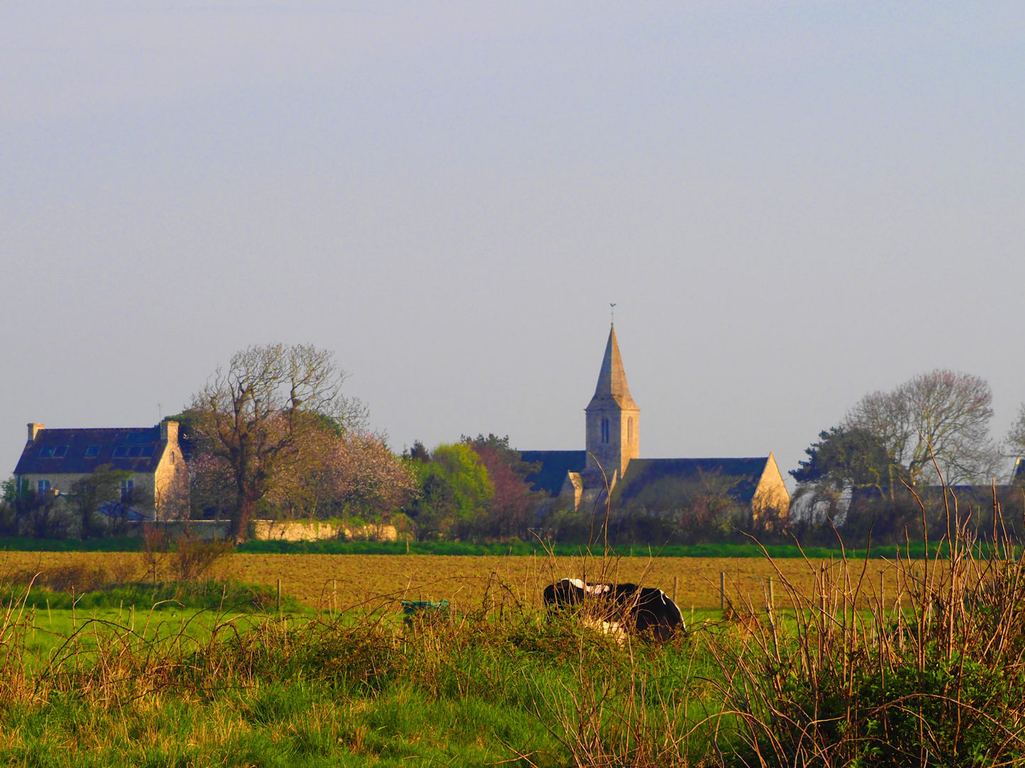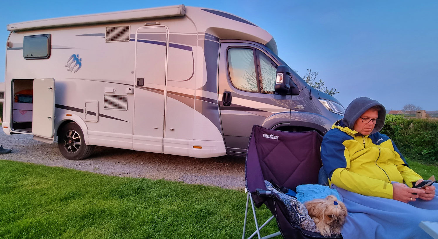 Wir stehen hier nun auf einem tollen Platz mit Rasenfläche und Ausblick auf Kuhweiden und die typische Landschaft der Normandie. Allie und Amadeo genießen das Gras und spielen. Schnell ist der Grill aufgebaut und es folgt ein entspanntes Mittagessen, das einen Ausruhnachmittag einläutet.
