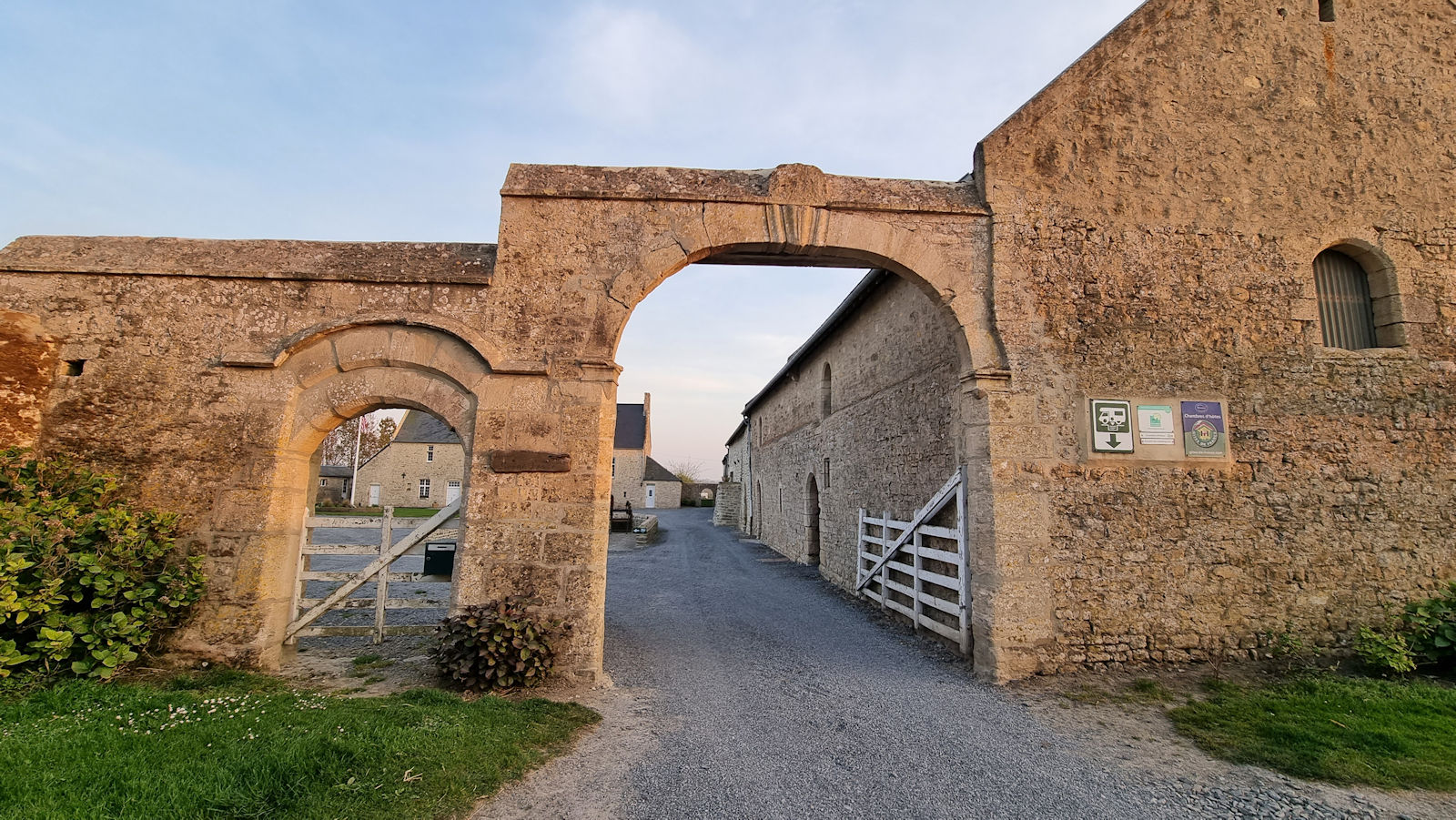 Unsere Strecke führt uns über St. Mere Eglise, wo wir eigentlich frühstücken wollen, aber wegen des Camperandrangs direkt weiterfahren, zu einem kleinen Picknickplatz in der Nähe von Insigny. Wir genießen unseren Kaffee, planen unseren Einkauf, denn unser Kühlschrank ist leer, erledigen diesen in Grand Camp Maisy und stehen kurze Zeit später mitten auf dem Hof “ Le Rouge Fossé“ um nach einem Stellplatz zu fragen. Aber jetzt um kurz nach 12 ist hier niemand. So läuft Ulli in Richtung des hinter dem Haus liegenden Platzes und fragt bei einem der Camper kurz nach, wie die Anmeldung funktioniert. Es gibt keine. Einfach hinstellen und am nächsten Morgen kommt jemand zum Kassieren.