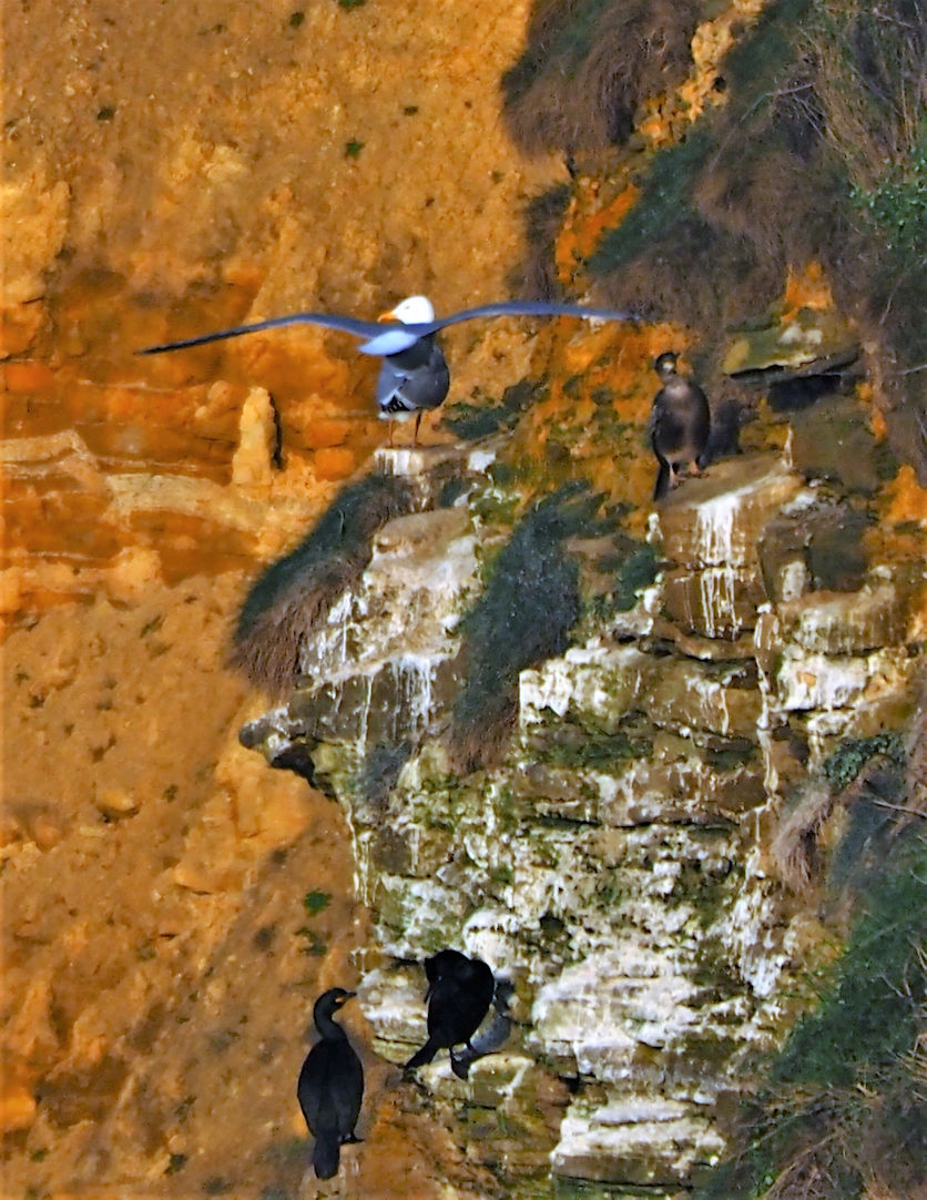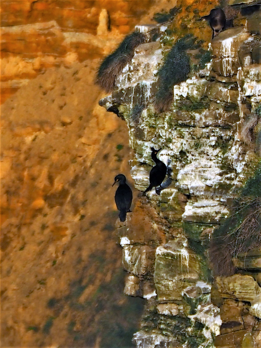 Das Licht ist wunderschön und wir versuchen ein paar Aufnahmen der in den Klippen brütenden Seevögel zu machen.