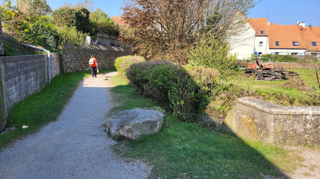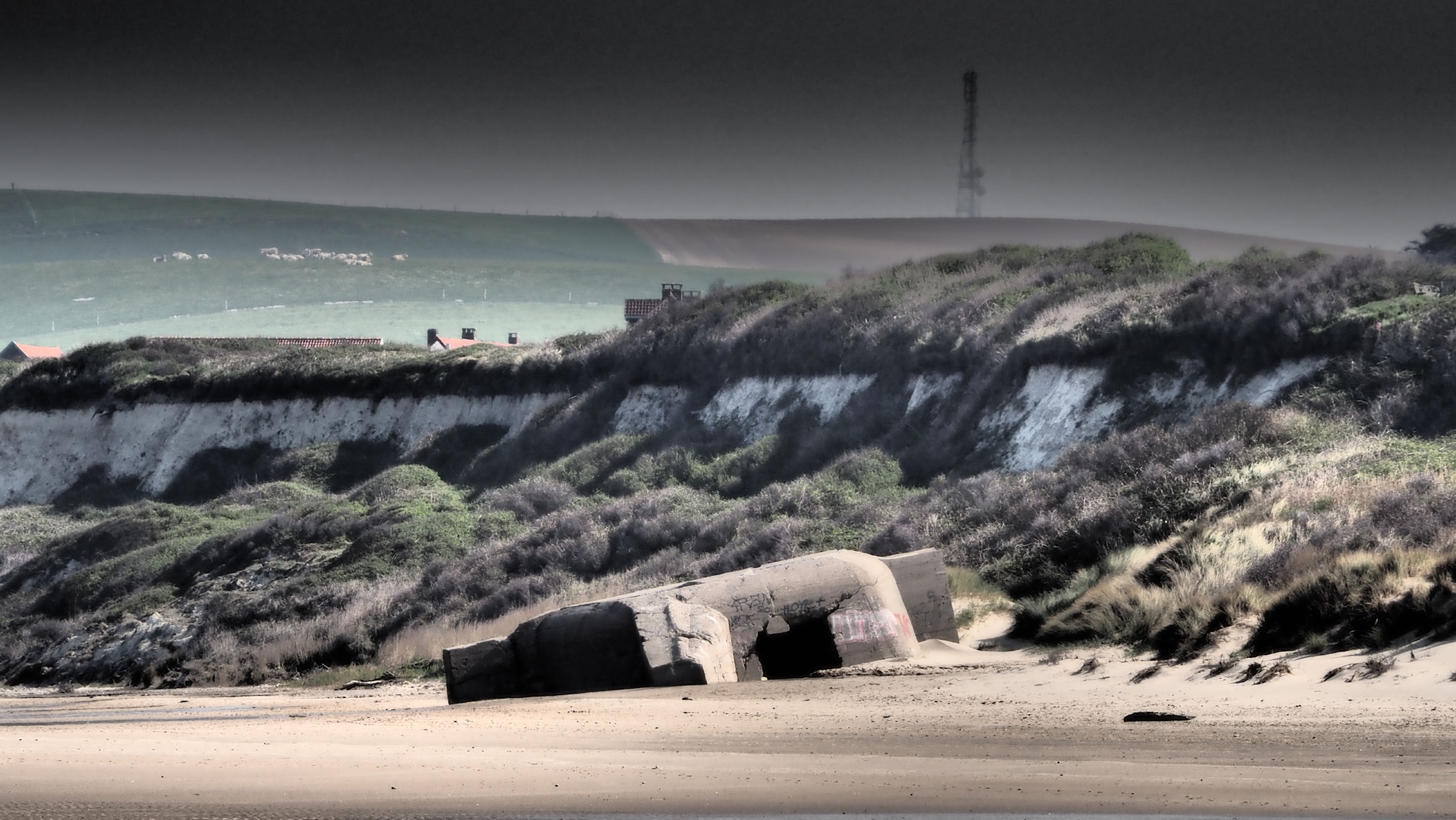 Nach etwa 2,5 km Weg muss man zum Strand runter. Wir sind dann wieder hoch in die Siedlung abgebogen und mussten deshalb lange an der Straße bis nach Wissant laufen. Schöner ist es bestimmt, einfach am Strand zu bleiben.