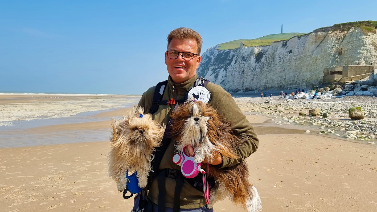 Auf manchen Fotos ist der weiße, ganz feine Sand zu sehen, wie er über den Strand fegt. Besagten Sand finden wir nach der Wanderung in ausreichender Menge im Gesicht unserer Fellnasen. Amadeos Nasenpartie ist davon regelrecht eingekrustet.