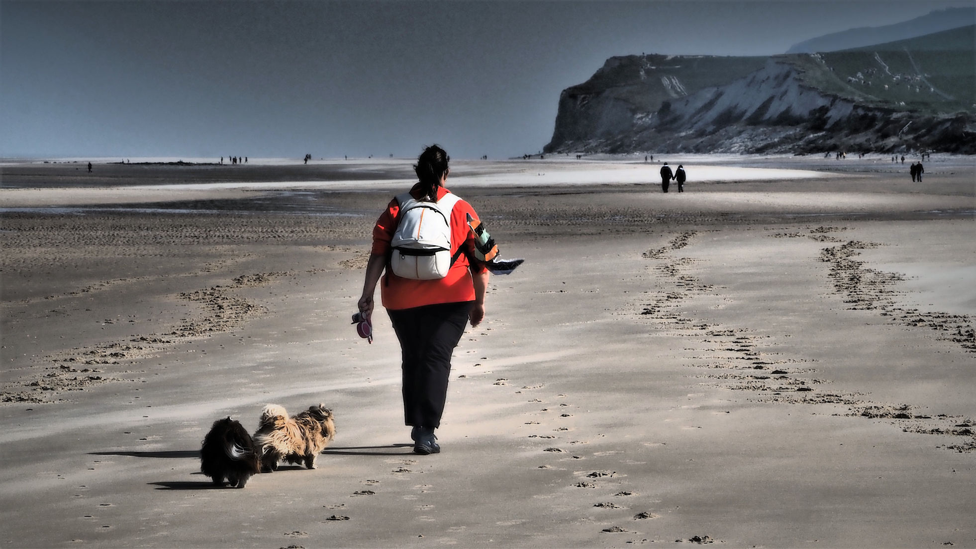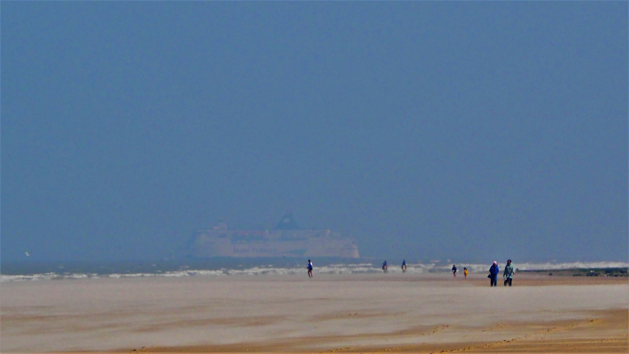 Und auf den Bildern seht Ihr, dass unser Ziel noch weit entfernt ist. Also doppelt anstrengend. Aber: der Weg ist das Ziel. Es fühlt sich zwar manchmal an, als würde man kaum vorankommen und eine Unterhaltung,wie sonst auf unseren Wanderungen, ist nicht möglich, aber es macht trotzdem Spaß. Am allermeisten aber macht Spaß, unsere beiden Wanderhunde beim Spielen am Strand zu beobachten. Fast so, als würde ihnen der Gegenwind und die bereits zurückgelegte Strecke nichts ausmachen.