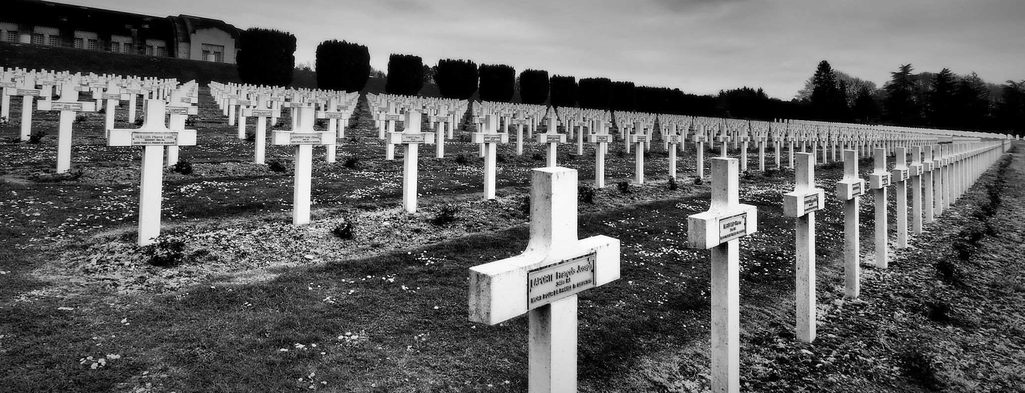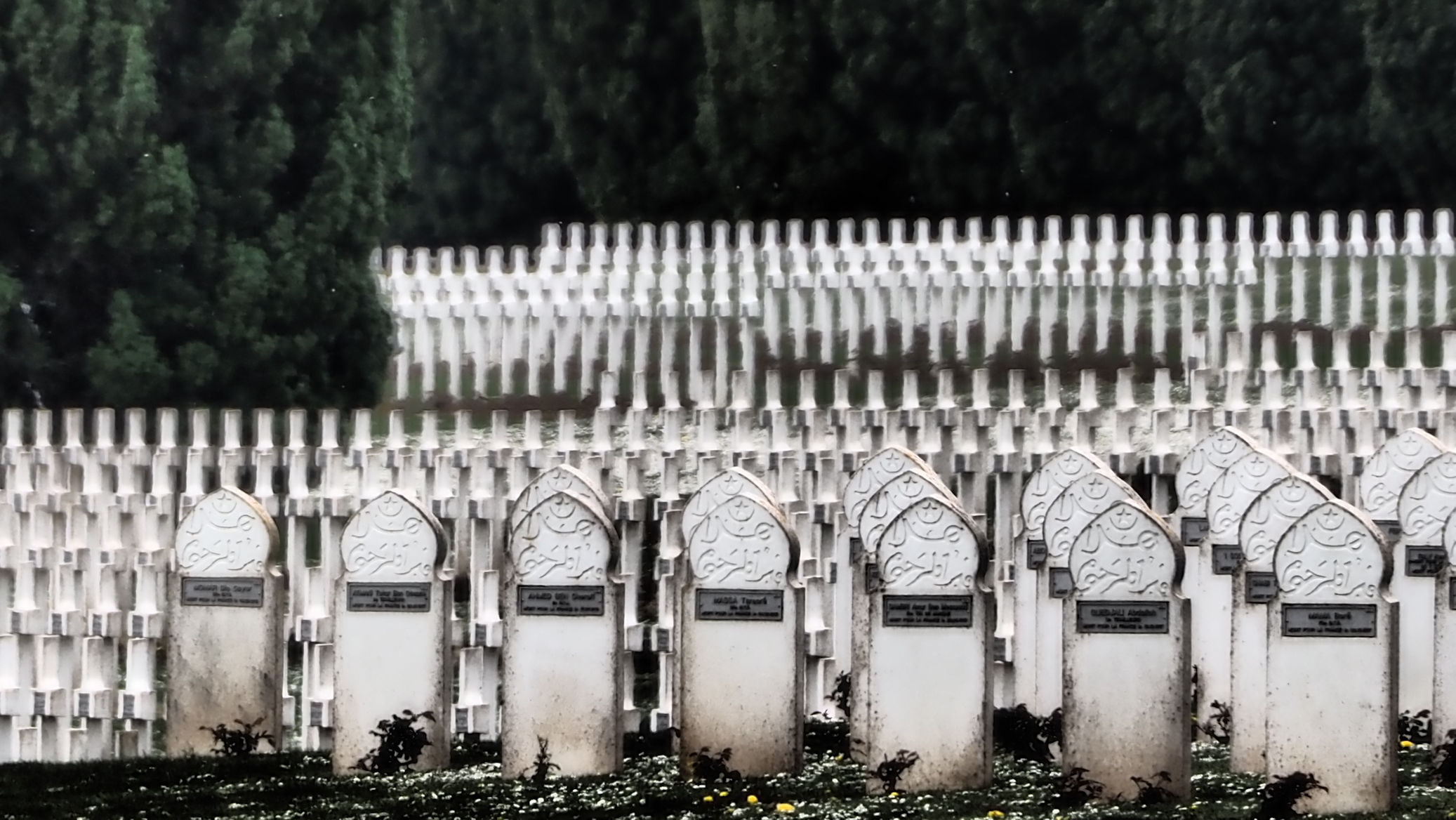 Es sind wenige Besucher am Monument. Und der wolkenverhangene Himmel und der Nieselregen unterstützen die Stimmung, die dieser Ort ausstrahlt. 15.000 Soldaten liegen hier an diesem Ort begraben. Jedes Grab hat einen eigenen Rosenstock. Vielleicht wird ja die Rosenblüte die traurige Stimmung, die hier herrscht, etwas auflockern. Auch dieser Ort stimmt uns sehr nachdenklich und traurig.