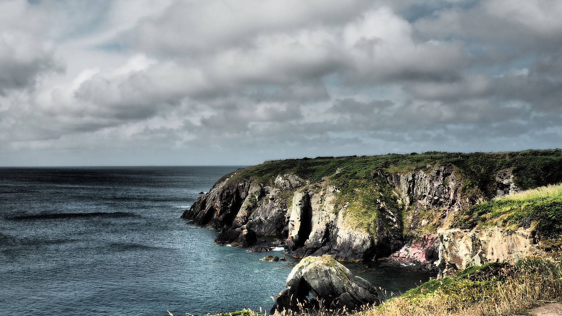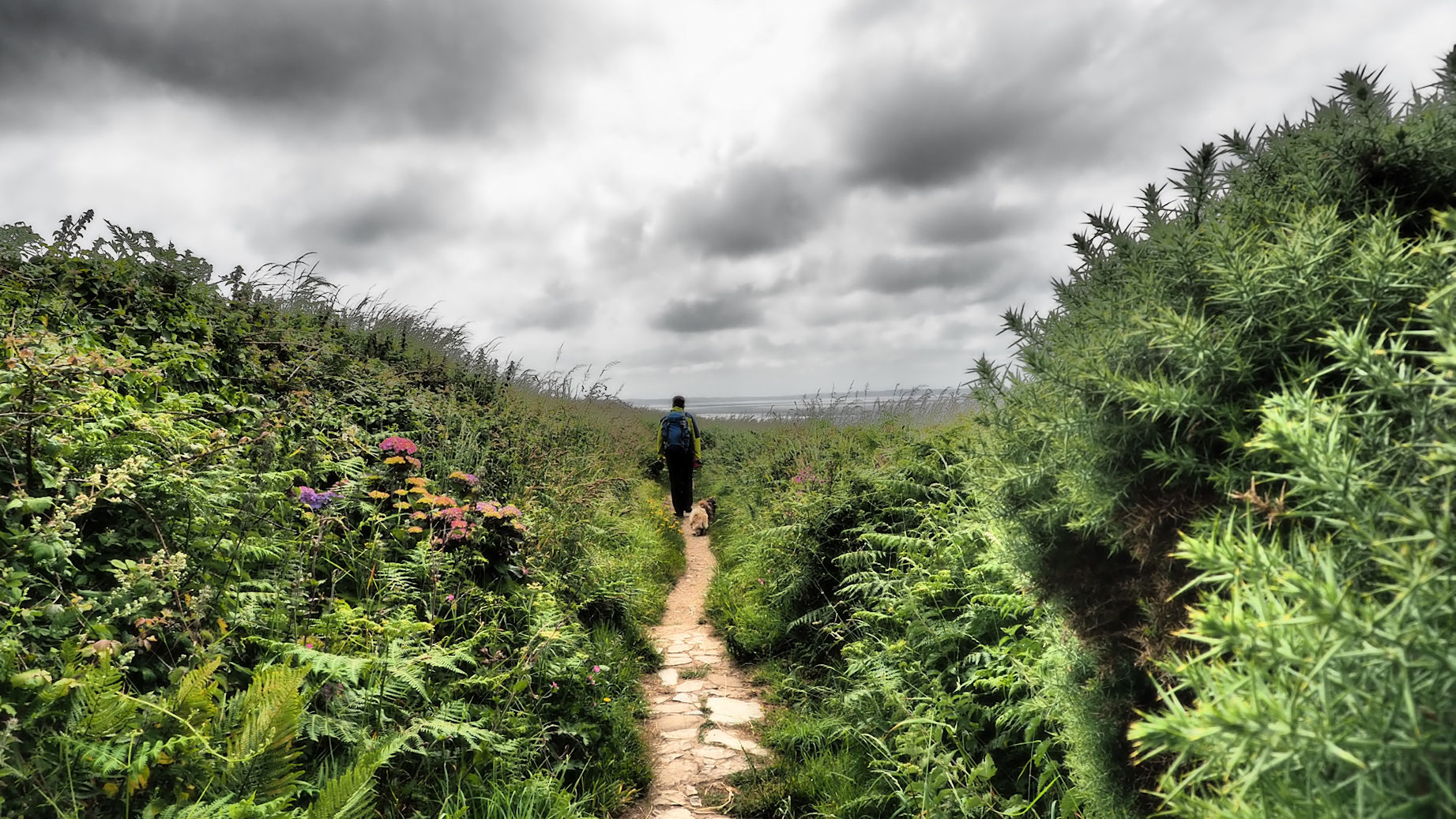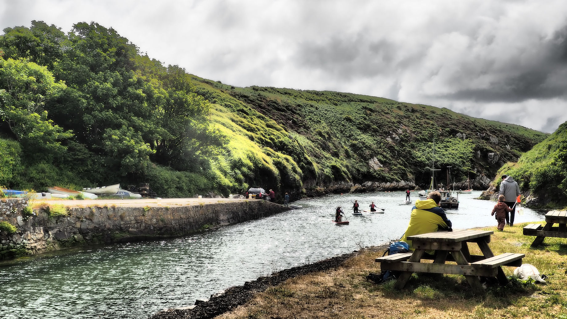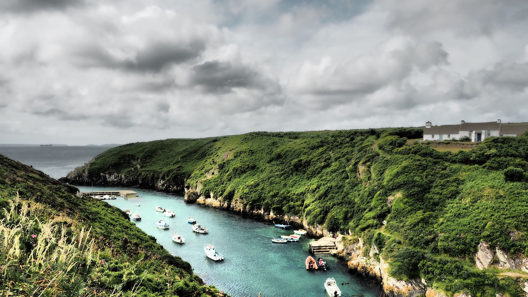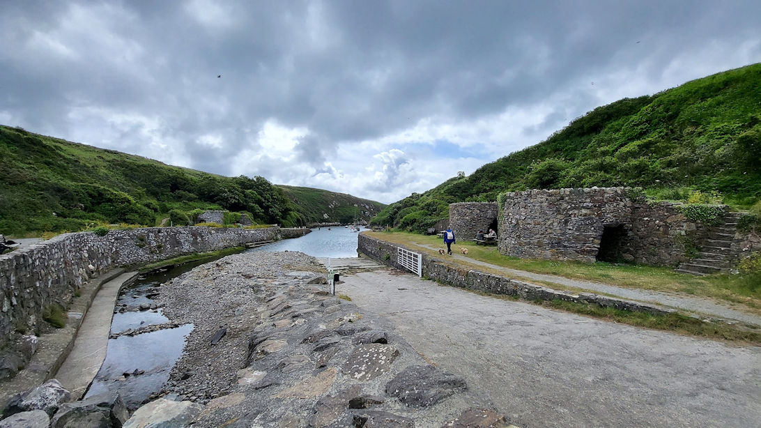 Schon die Ankunft an dem fjordähnlichen Einschnitt in Porthclais ist wunderschön. Am kleinen Kiosk stärken sich schon ein paar Wanderer und viele Familien nutzen den Tag zum Ausflug. Schließlich ist hier in Wales heute Vatertag. Wir machen eine kurze Pause, genießen die Szenerie und starten dann entlang des „Fjordes“, der an eine Rosamunde Pilcher Kulisse erinnert. Der Pfad ist steinig und steigt ein wenig an. Jeder Blick auf’s Meer bietet wundervolle Ausblicke. Ein Weg, an dem Innehalten unheimlich wichtig ist. Wie sollte man auch sonst diese schönen Eindrücke verarbeiten?