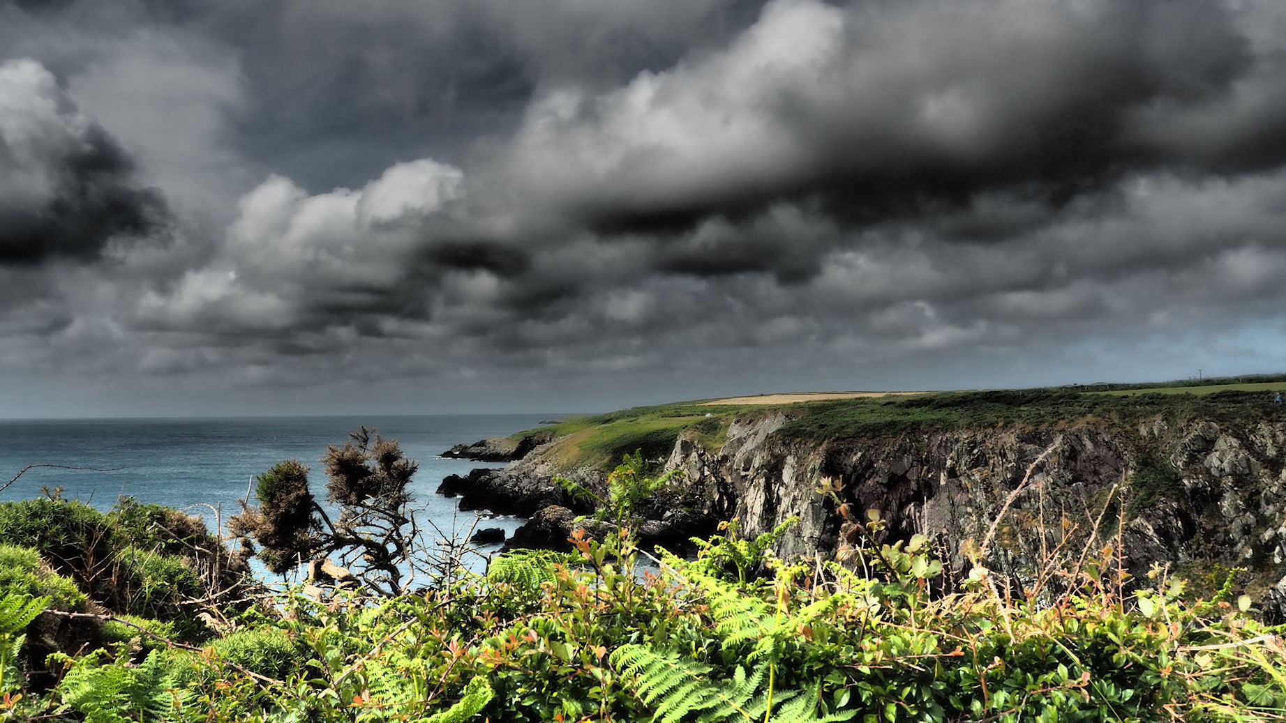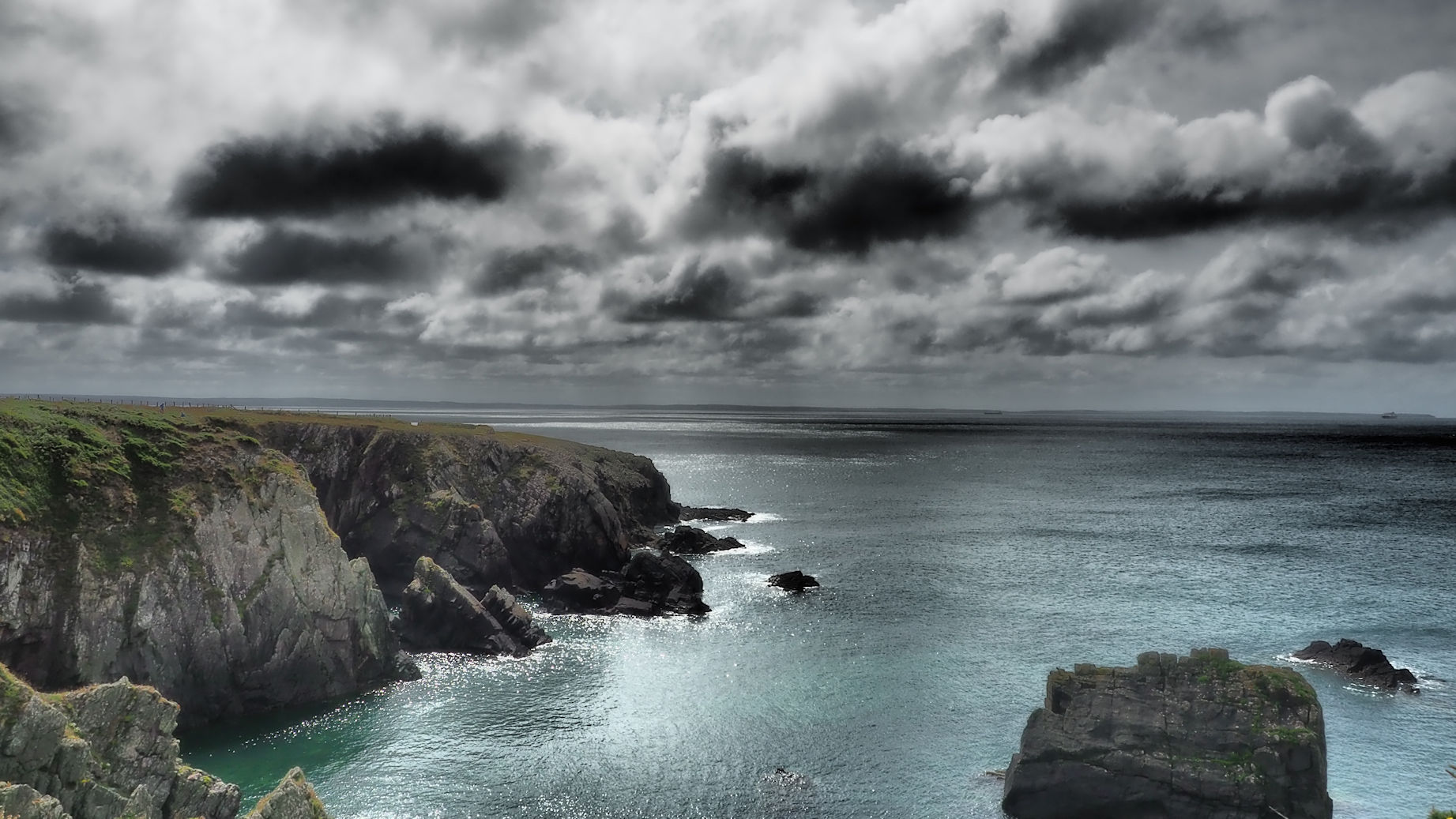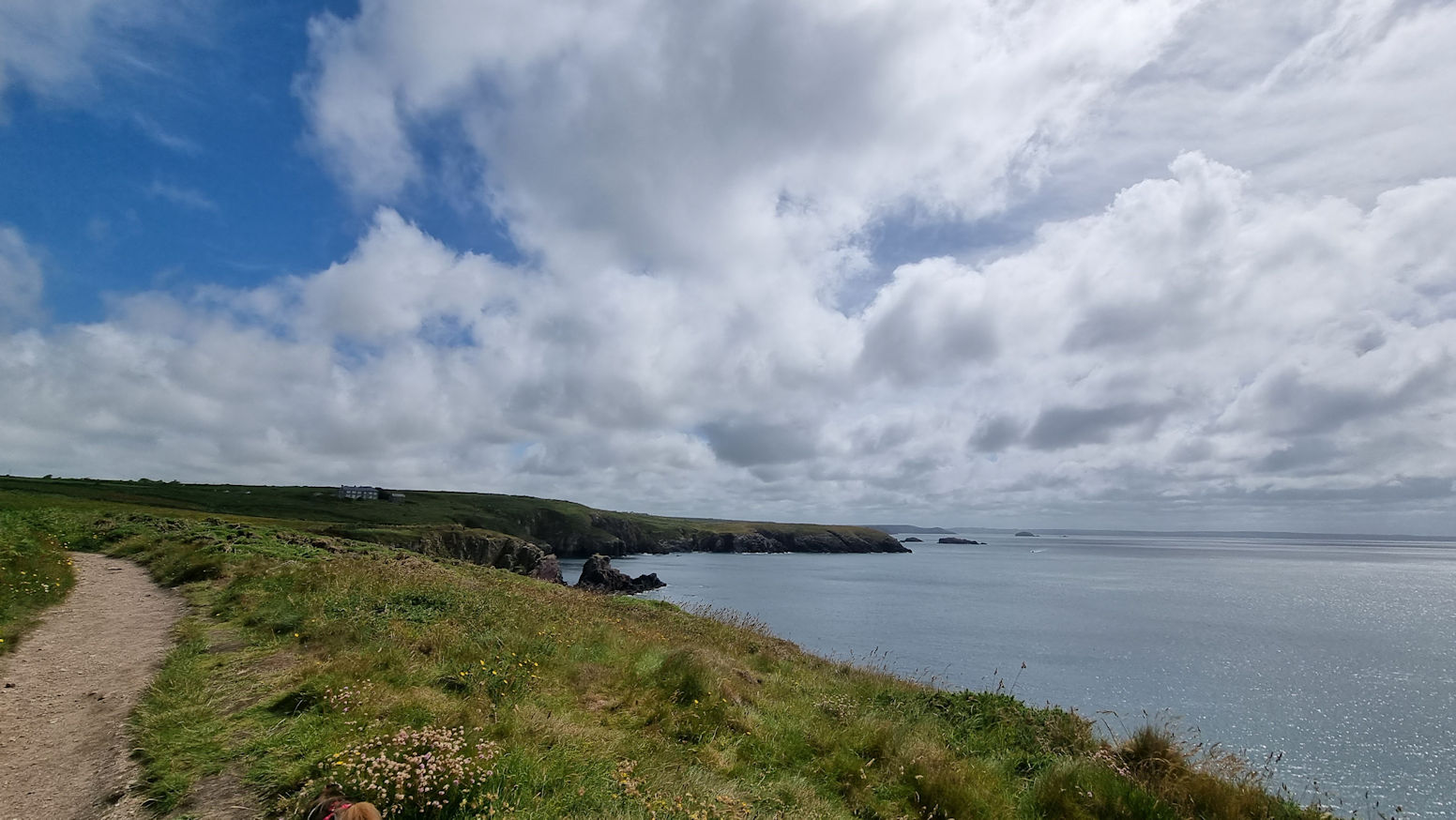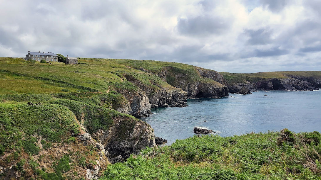 Der Pfad gleicht einem alpinen Pfad und führt oberhalb des kristallklaren Wassers dieser Küste entlang. Wir halten Ausschau auf’s Wasser, sehen aber weder Delfine, noch Seehunde und auch kaum Seevögel. Diese scheinen sich wirklich auf den „Vogelinseln“ Ramsey Island und Skomer Island zu tummeln.