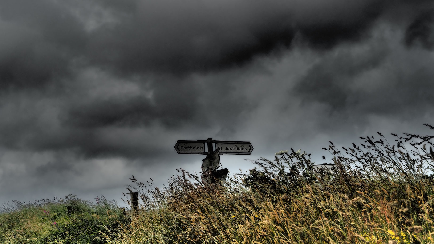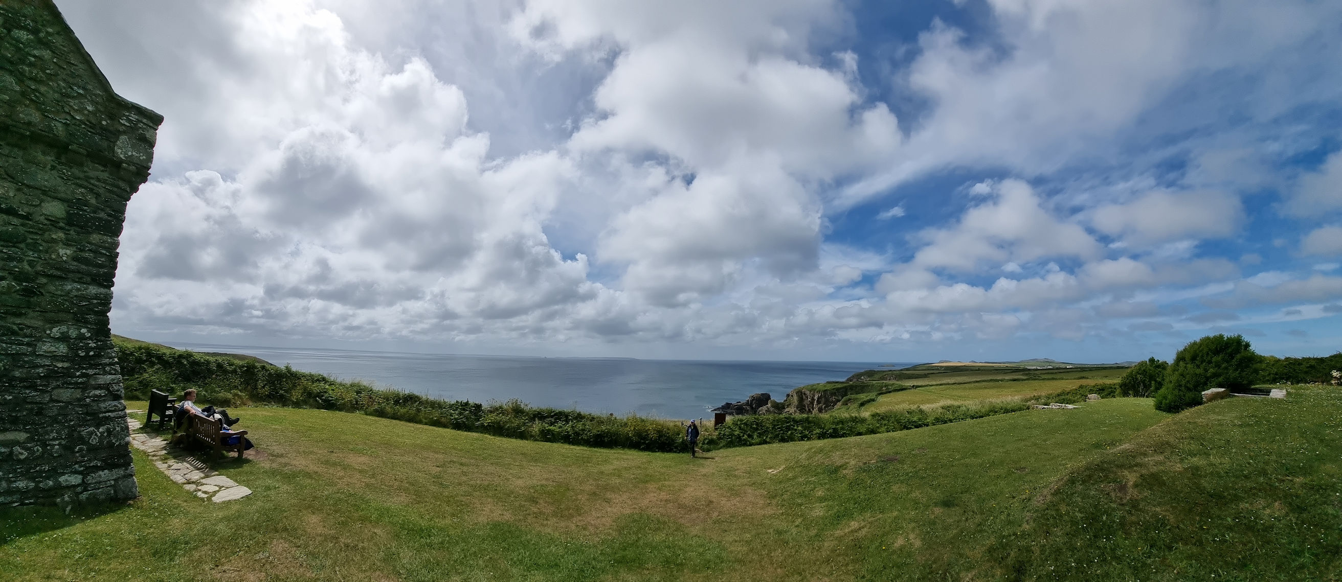 Das macht den Morgen und das Frühstück sehr entspannt. Auch der blaue Himmel sieht sehr vielversprechend aus. Ein kurzer Blick auf die Google-Maps Karte, die sich in Superzeitlupe aufbaut, und unsere Tagesplanung steht fest. Wir wollen eine kurze Runde über Porthclais ans Meer, weiter über den bekannten und angeblich einem der 10-schönsten Küstenpfade der Welt, den Pembrokeshire-Coastal Path, über Non’s Chapel and Well zurück nach St. Davids gehen. Die genaue Route findet Ihr hier