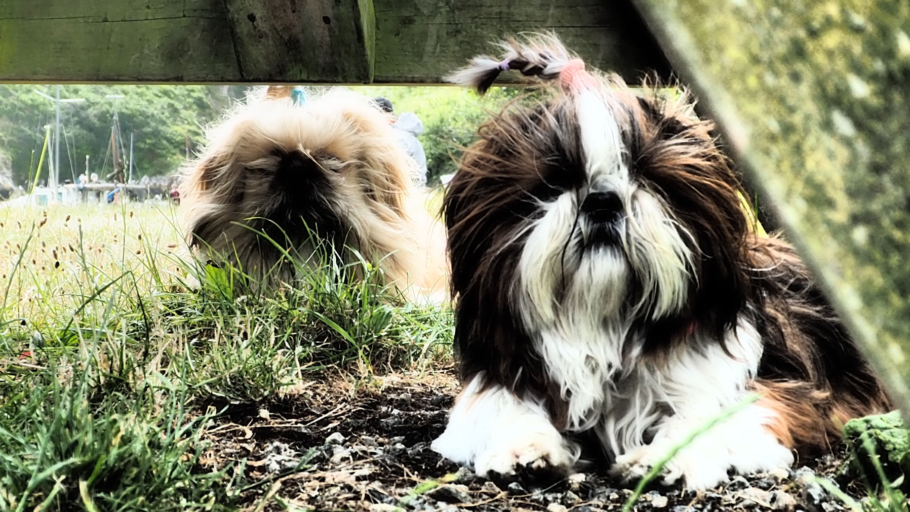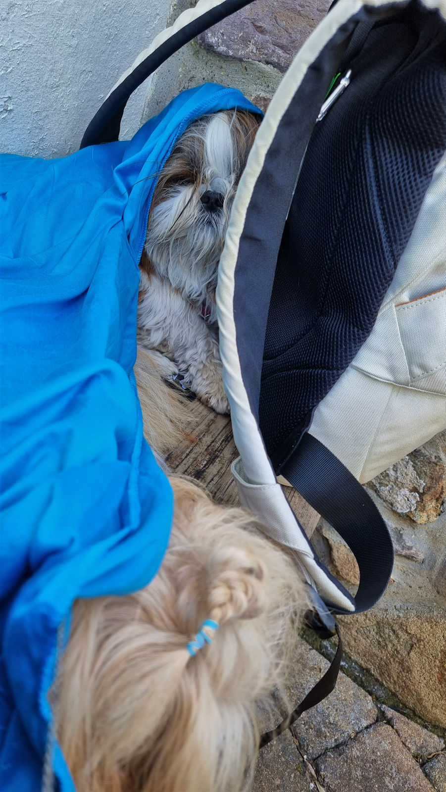 Kurze Zeit später sitzen wir in der Sonne vor der kleinen Kapelle und genießen den Ausblick. Hier, so windgeschützt, ist es wunderbar warm. Unsere Fellnasen genießen die Pause ebenfalls.