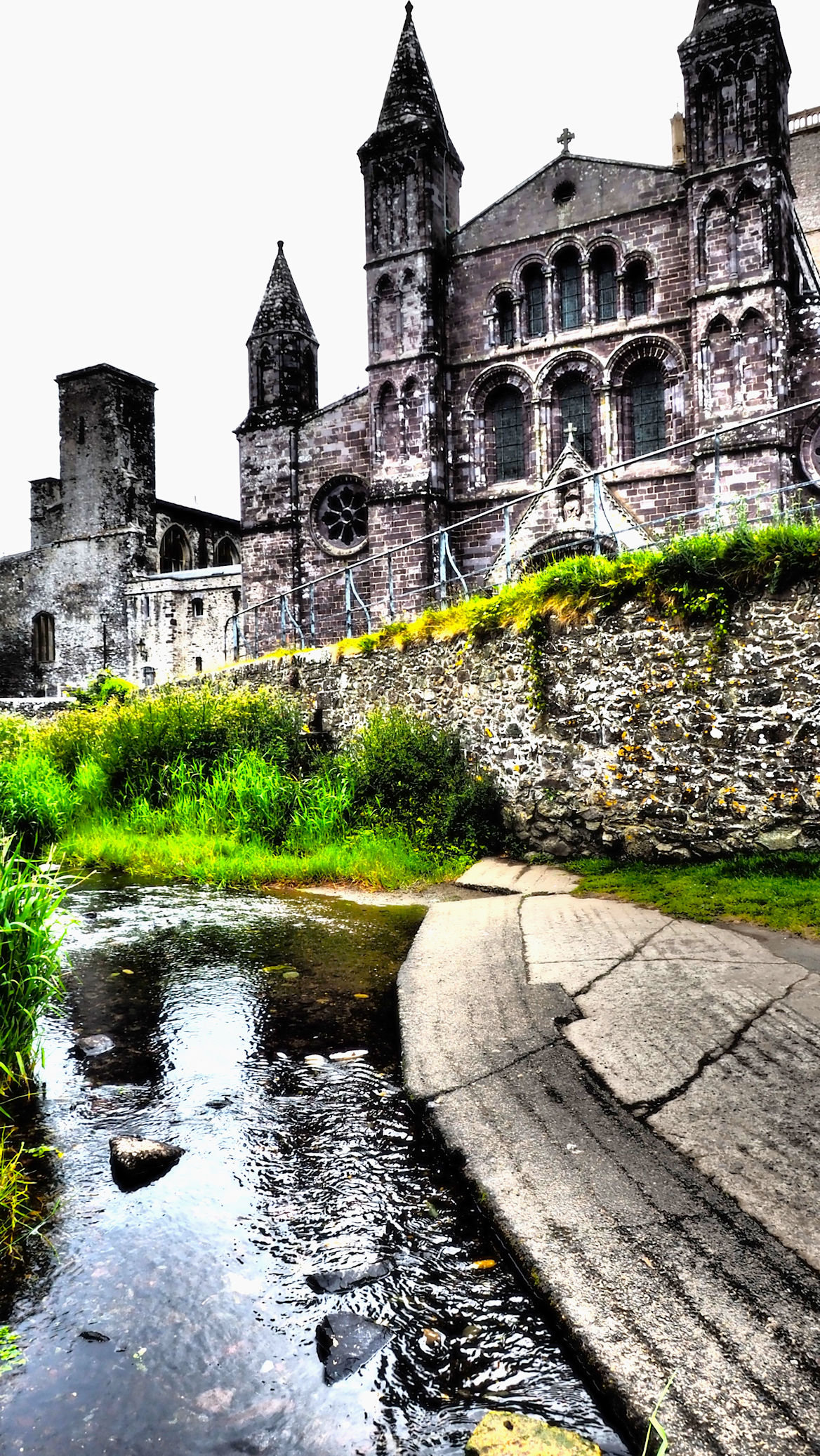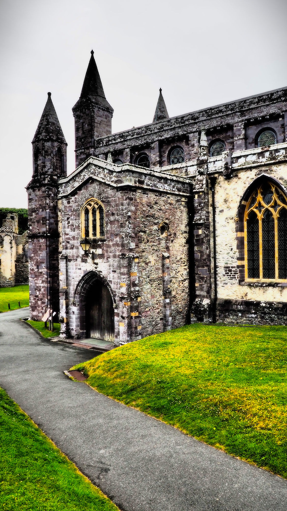 Die letzten 20 km der insgesamt 300 km langen Strecke führen an der Küste entlang. Besonders im Ort Solfach ist die Straße richtig eng und unangenehm steil. Aber es herrscht wenig Verkehr und ist so ganz gut machbar. Und dann erreichen wir St. Davids.