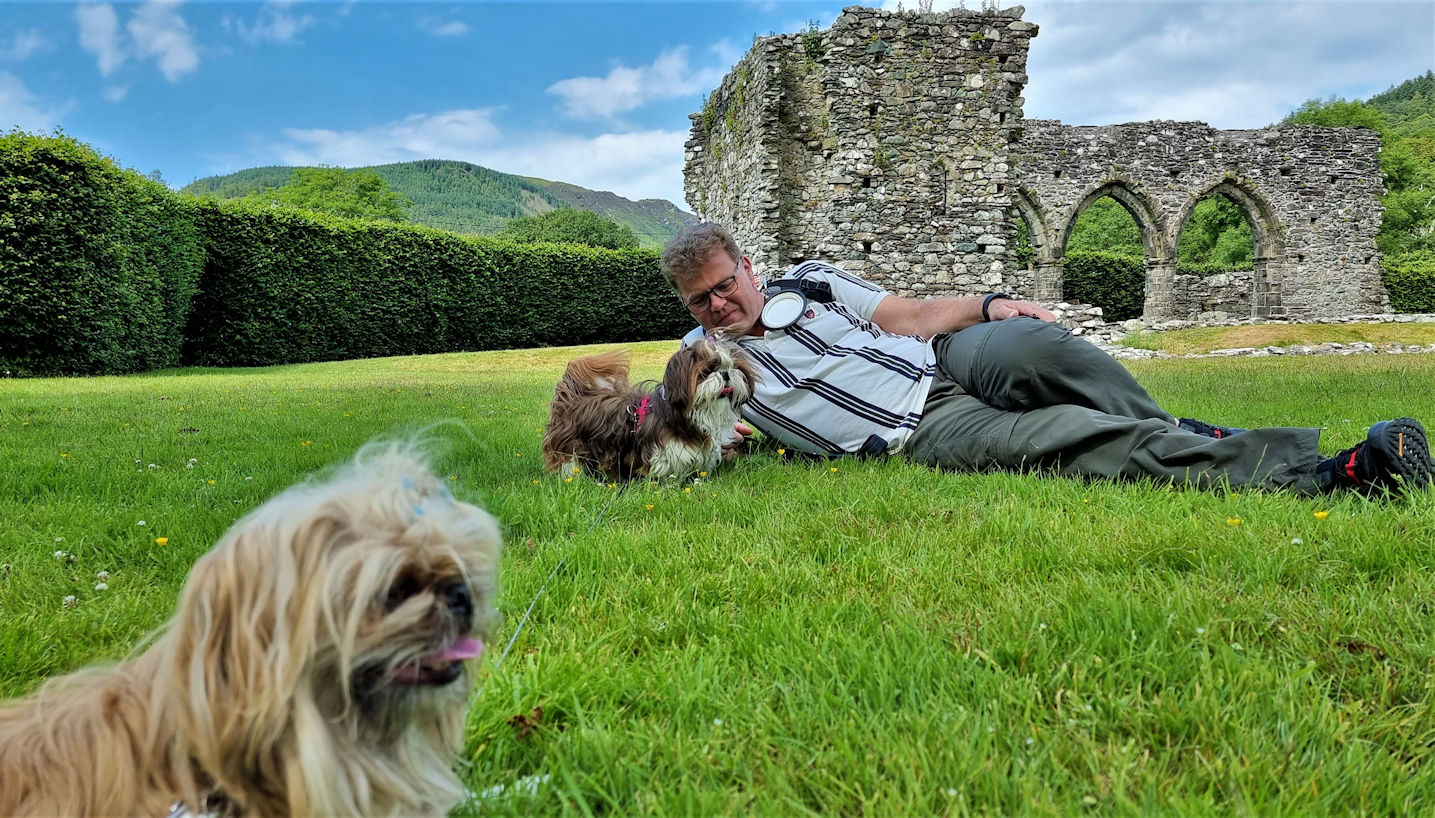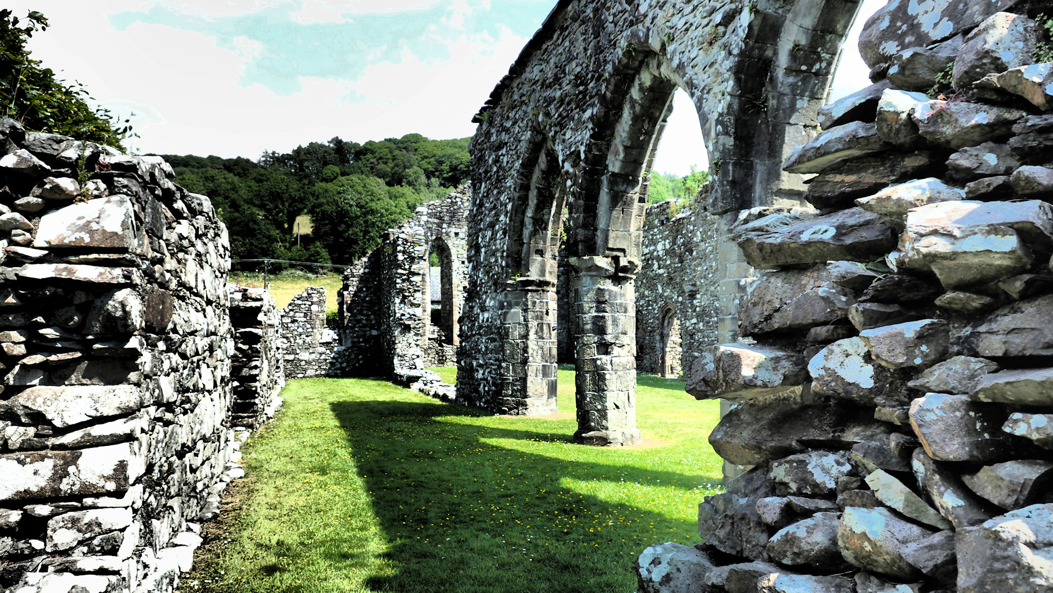 Den nächsten Stopp machen wir an Cymer Abbey. Eine ehemalige Zisterzienser Abtei idyllisch am Fluss gelegen. Vom alten Gemäuer ist aber nur noch ganz wenig erhalten. Und jetzt wo die Sonne draußen ist, ist es hier fast unerträglich heiß und schwül. Ein paar Fotos später sind wir schon unterwegs in Richtung Anglesley. Immer mal wieder hat man das Gefühl, irgendwo in den Alpen oder auch manchmal im südlichen Teil Siziliens unterwegs zu sein. Es gibt unendlich viele Schafe und die Landschaft ist durchzogen von Steinmauern. Auch eine der für Wales bekannten Dampfloks sehen wir, aber die Zeit im Vorbeifahren reicht nur für ein Foto der historischen Wagons.