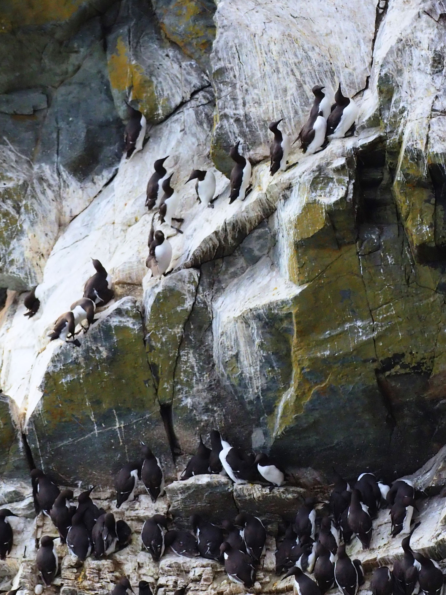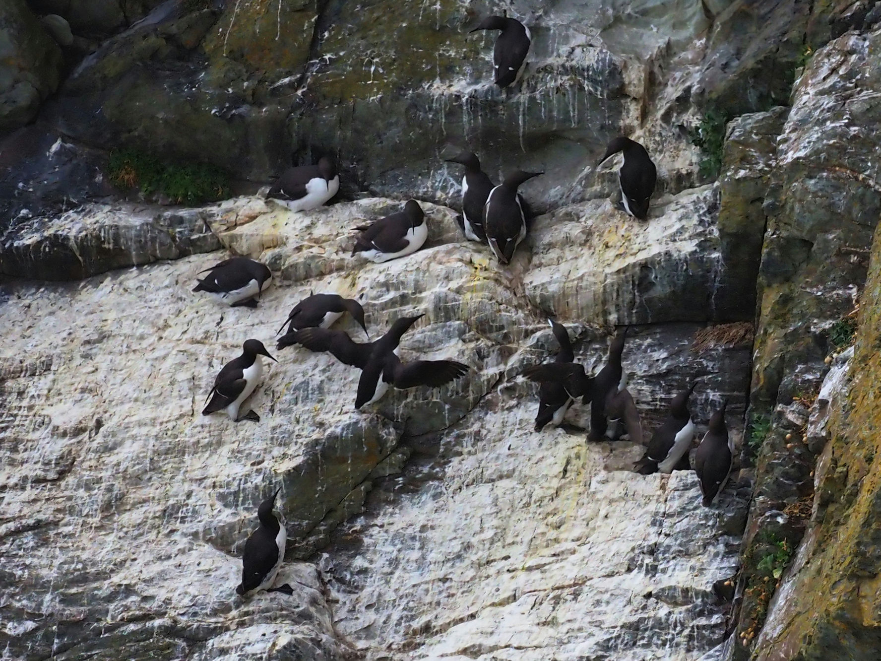 Etwa um 19 Uhr beginnen wir unsere kleine Wanderung zu unserem eigentlichen Ziel: Es geht nach South Stack. Dieser Ort ist bekannt für seinen Leuchtturm und die große Trottellummenkolonie. Natürlich gibt es auch noch andere Seevögel, ja sogar 3 Puffins entdecken wir im Getümmel. Das beeindruckendste an diesem Ort ist die Geräuschkulisse. Begibt man sich jedoch über die Felsen, hört man plötzlich nichts mehr vom Vogelstimmengewirr.