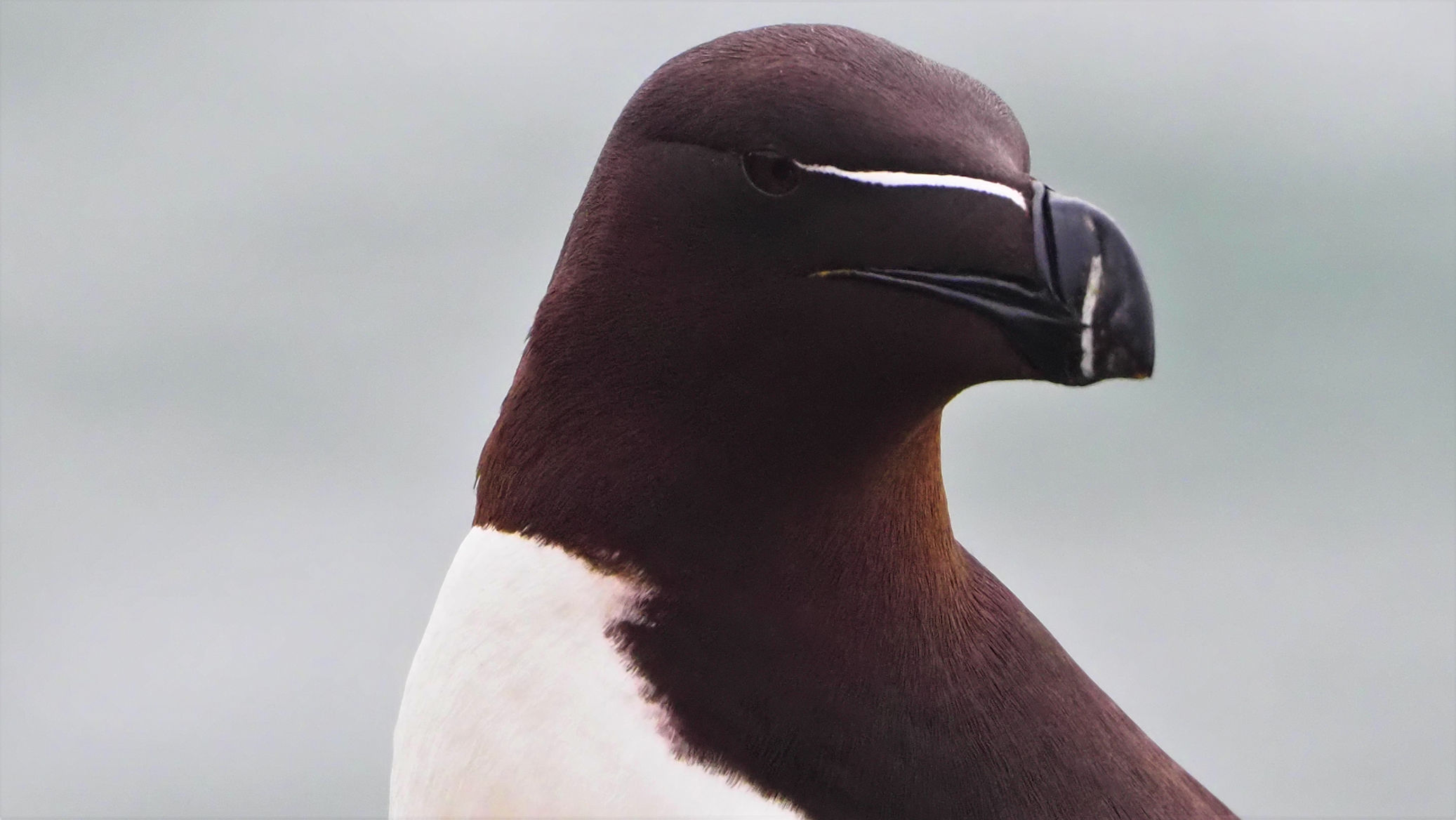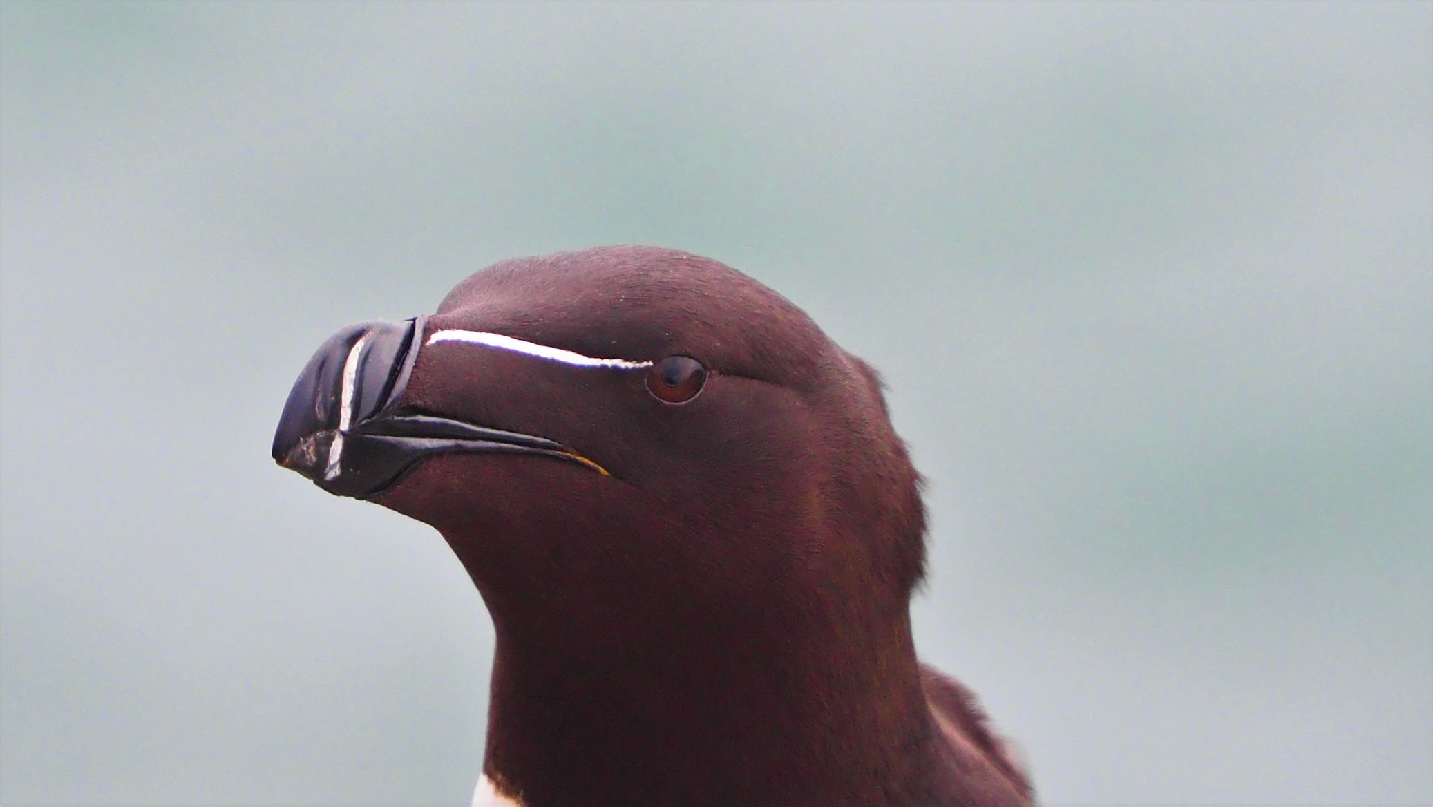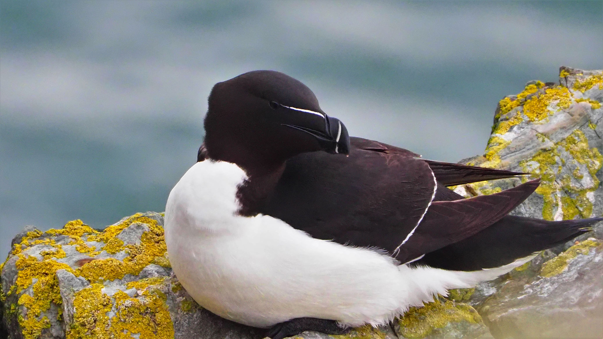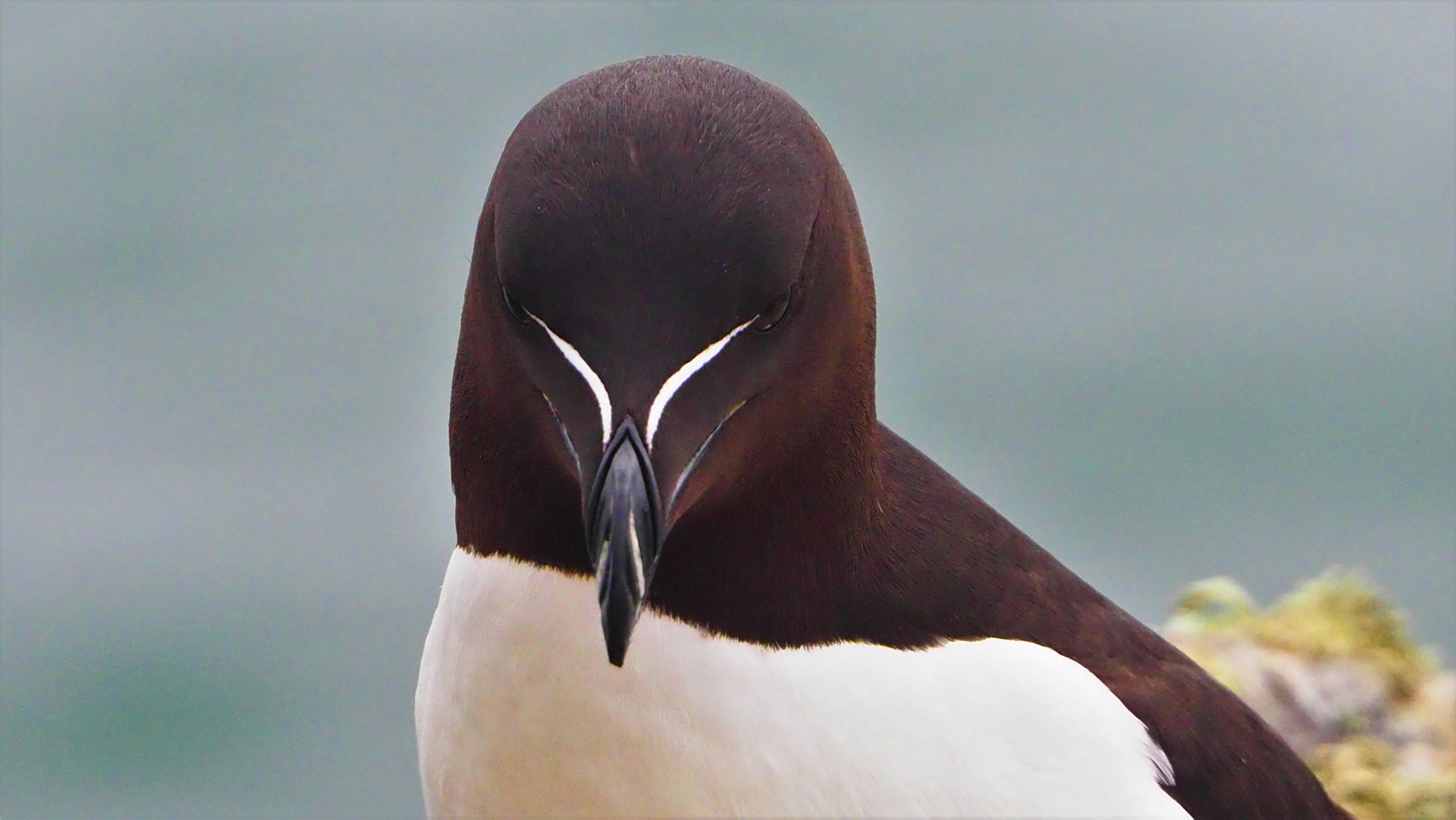Die Razorbills, die bereits im Regen direkt in unserer Nähe Platz genommen hatten, bleiben und modeln für uns. Es macht viel Spaß, diese Vögel mit ihren interessanten Schnäbeln zu fotografieren.