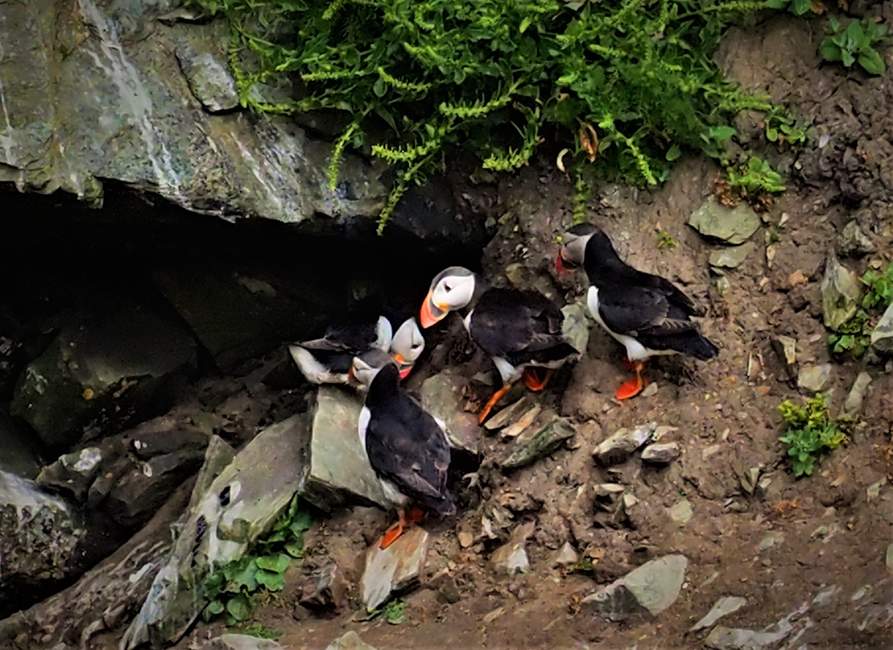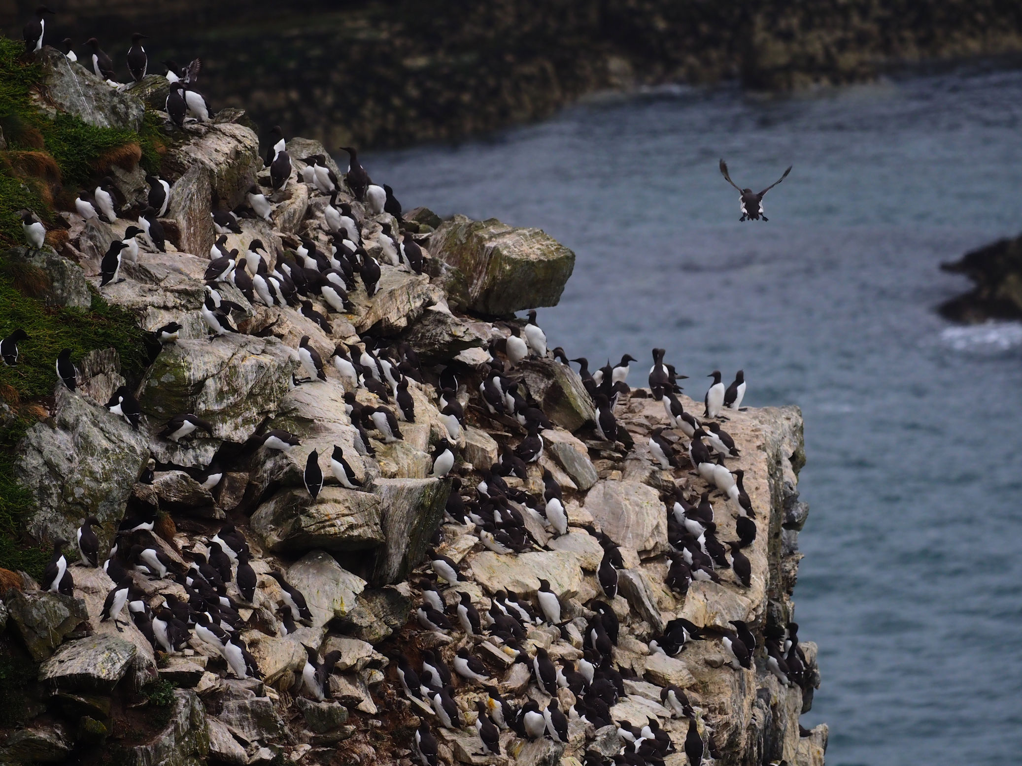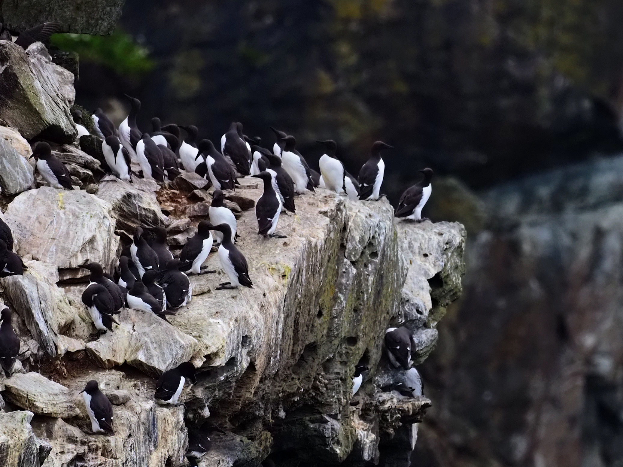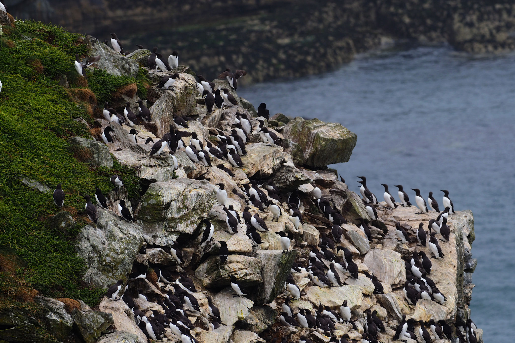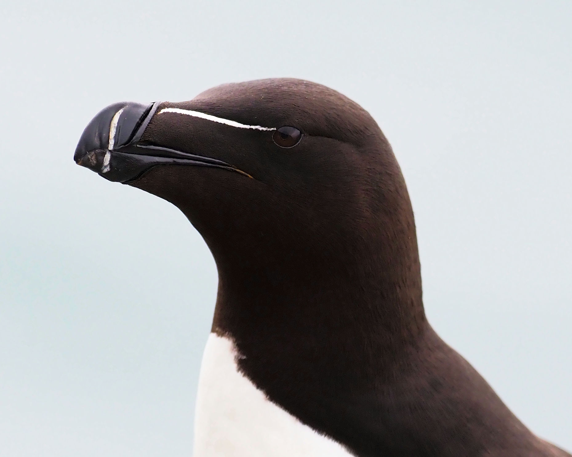 Die Razorbills, die bereits im Regen direkt in unserer Nähe Platz genommen hatten, bleiben und modeln für uns. Es macht viel Spaß, diese Vögel mit ihren interessanten Schnäbeln zu fotografieren.