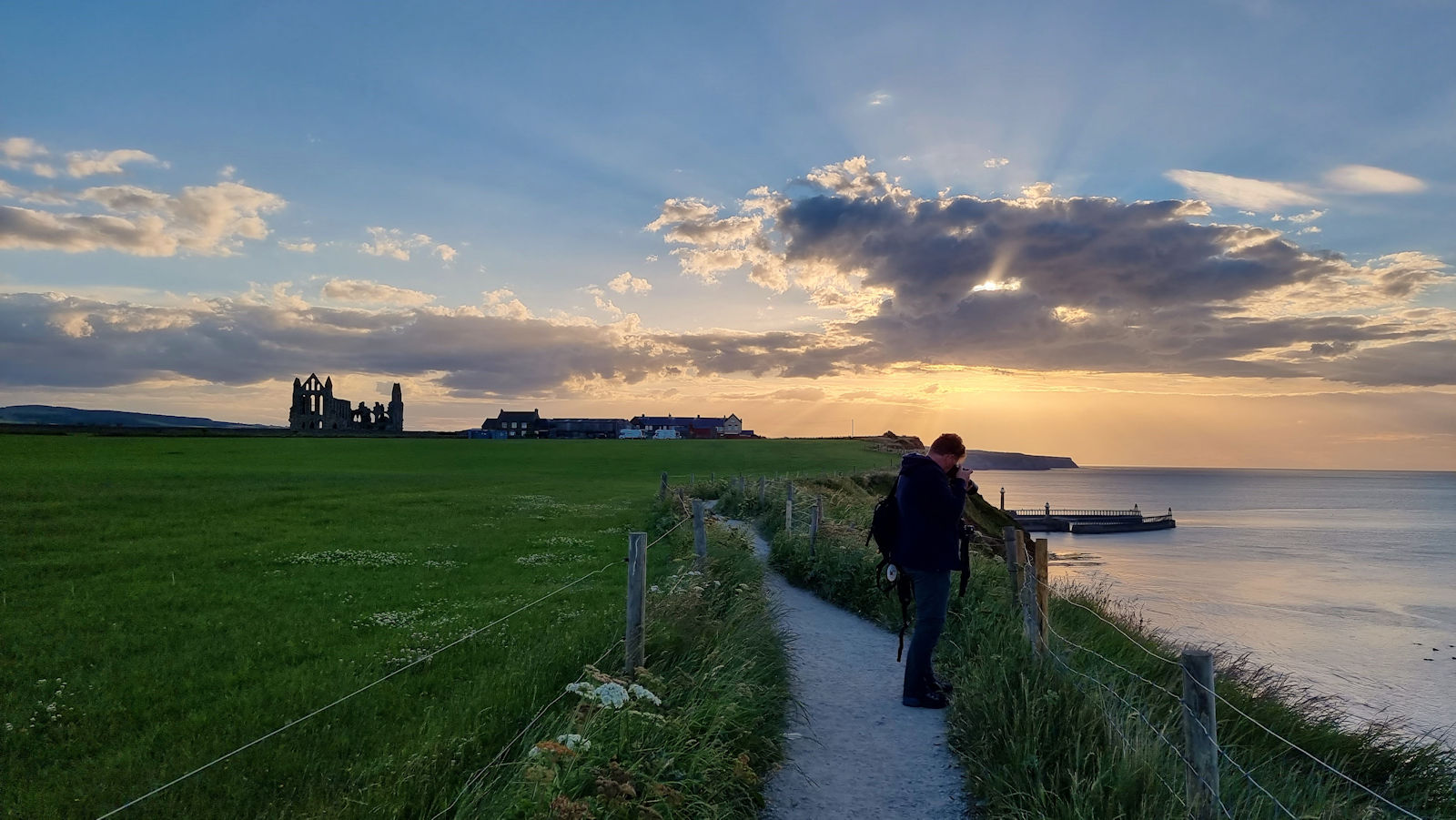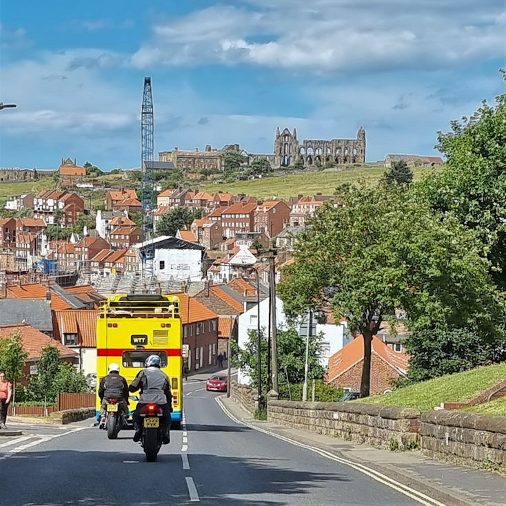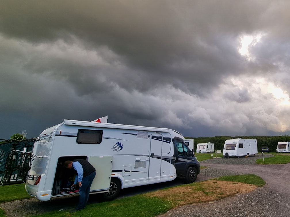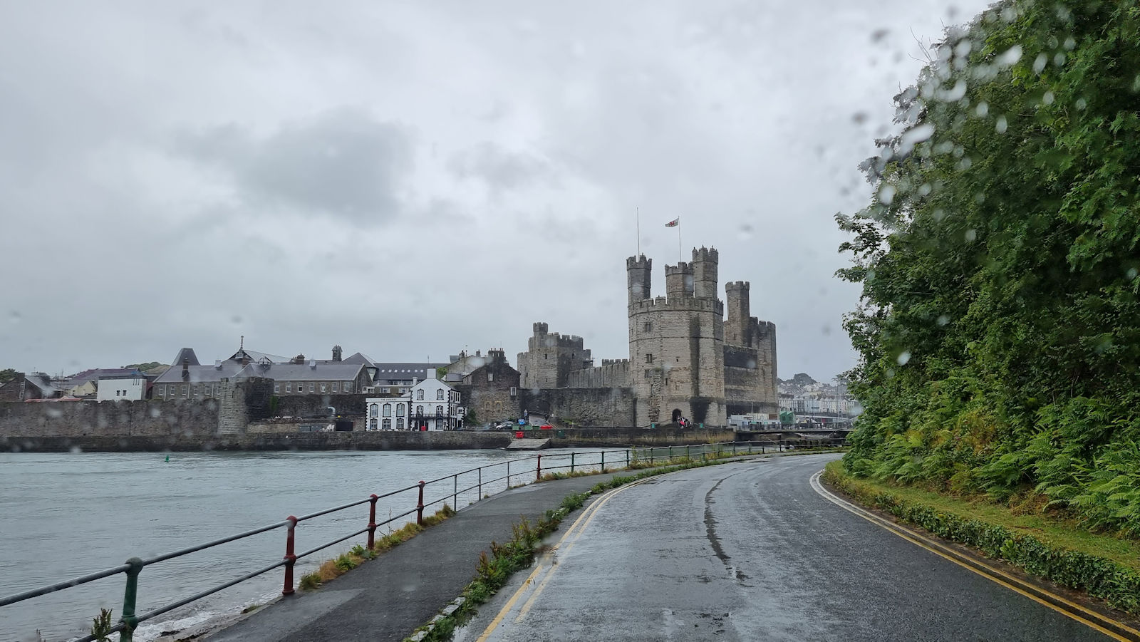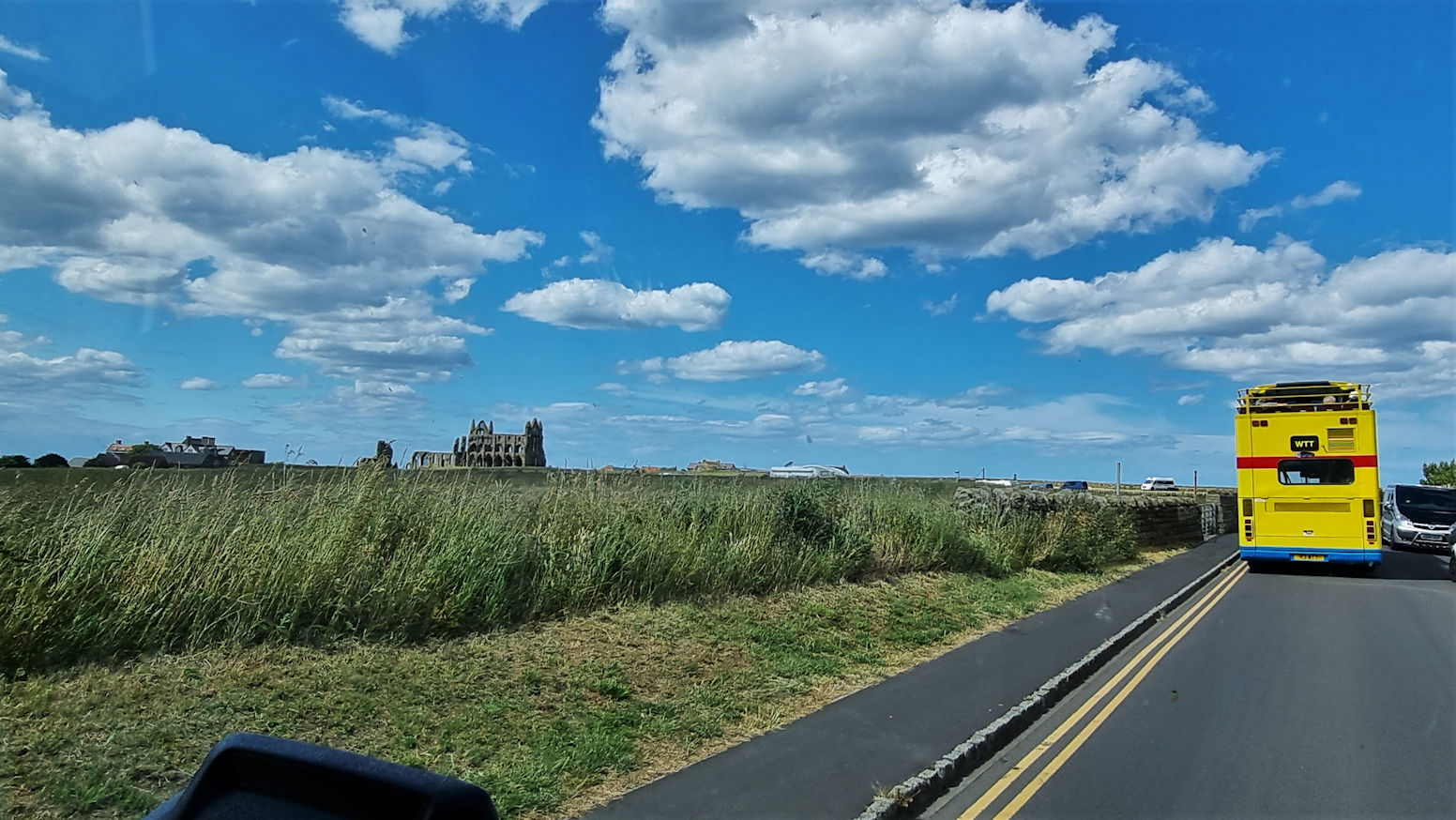 Gegen 10 Uhr fahren wir noch einmal, dieses Mal bei starkem Regen, an der traumhaft schönen Burg bon Caernafon vorbei und dann geht es via Conwy, aus Wales heraus, nördlich an Manchester vorbei via Leeds ins Yorkshire. In Manchester kommt übrigens die Sonne wieder zum Vorschein. Kurz vor unserem Ziel durchfahren wir die atemberaubende Landschaft des North York Moors National Park, bevor wir gegen 16 Uhr die bereits vom Nationalpark aus zu sehende Hafenstadt Whitby und unseren oberhalb liegenden Campingplatz mit Abtei-Blick erreichen. Um dort anzukommen, haben wir einige Straßen mit 20 Prozent Gefälle bzw. Steigung zu überwinden.