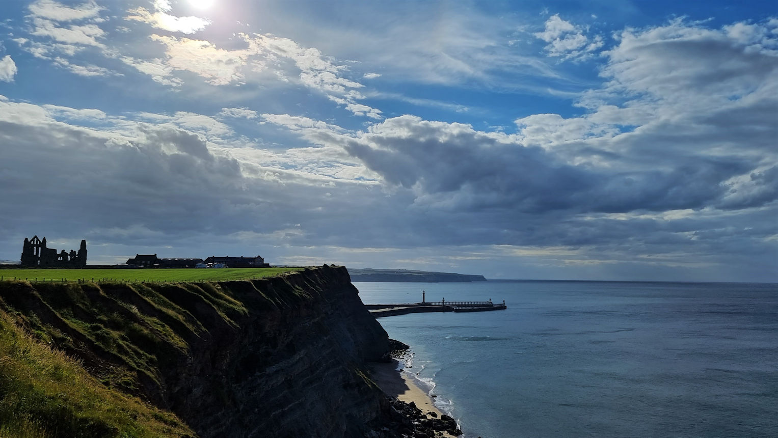 Über Whitby thront die Ruine eines ehemaligen Klosters auf einer Klippe am Meer. Diese erreichen wir nach einem gemütlichen Spaziergang über den Coastal Path. In der an der Abbey liegenden „Abbey Brewery“ gibt es windgeschützte Plätzchen in der Sonne mit Aussicht. Perfekt für uns. Und auch hier gilt: jeder Tisch mindestens ein Hund.